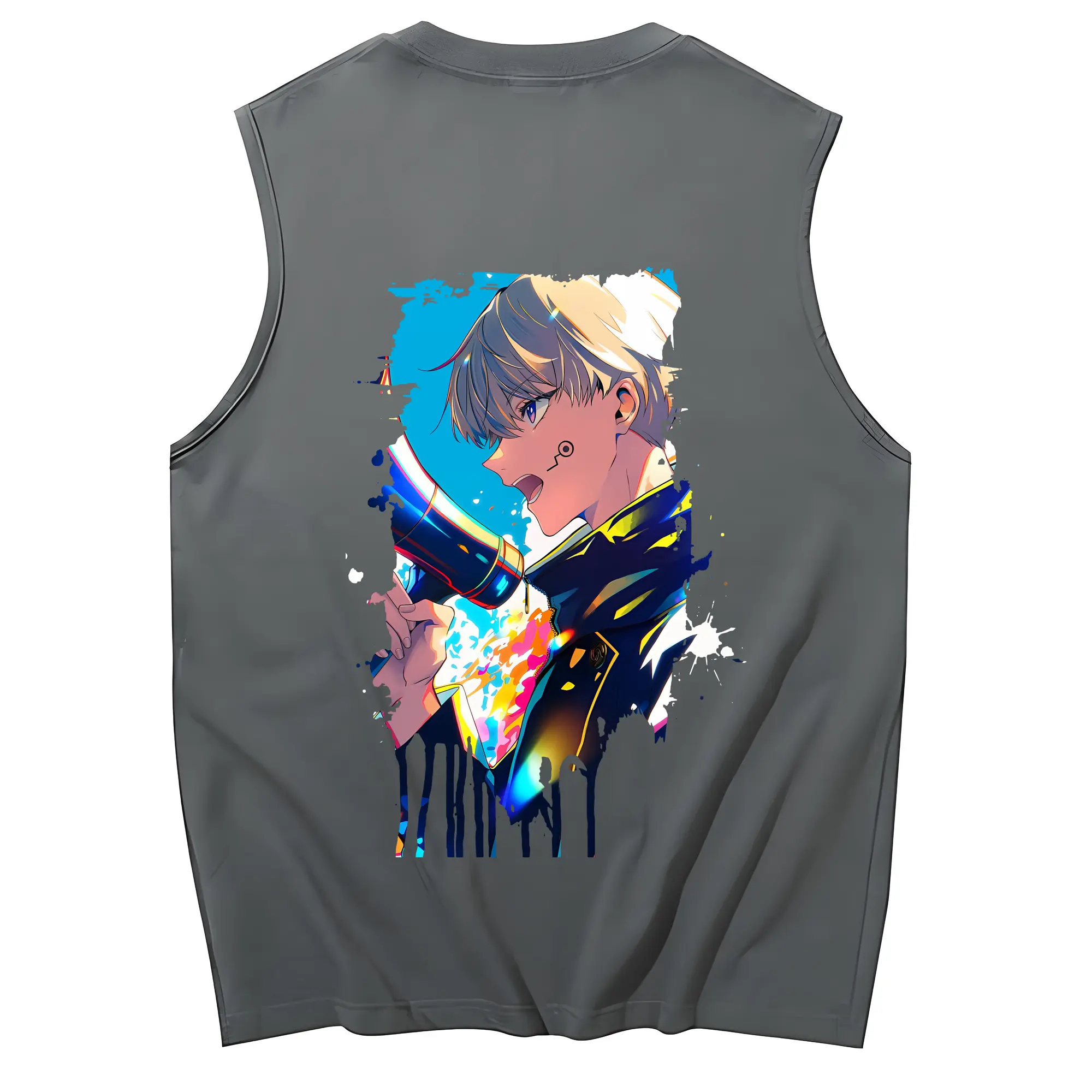 呪術廻戦 グッズ,狗巻 棘 - コットン100% タンクトップ ・ 背面プリント ・ タイトシルエット ・ 快適 通気性 ・ スポーツ カジュアル 散歩用
