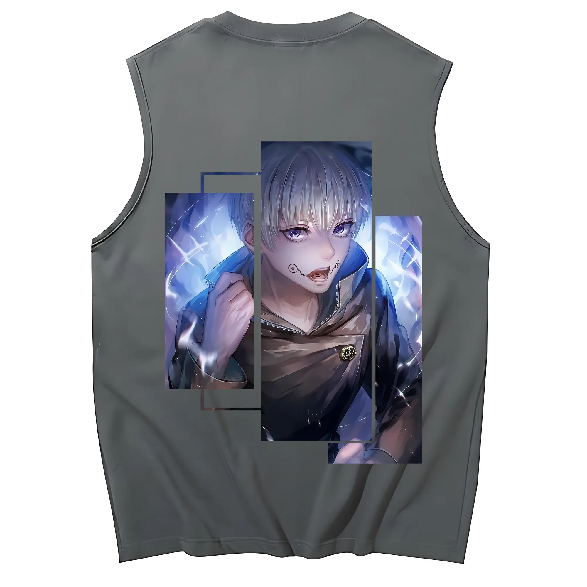 呪術廻戦 グッズ,狗巻 棘 - コットン100% タンクトップ ・ 背面プリント ・ タイトシルエット ・ 快適 通気性 ・ スポーツ カジュアル 散歩用