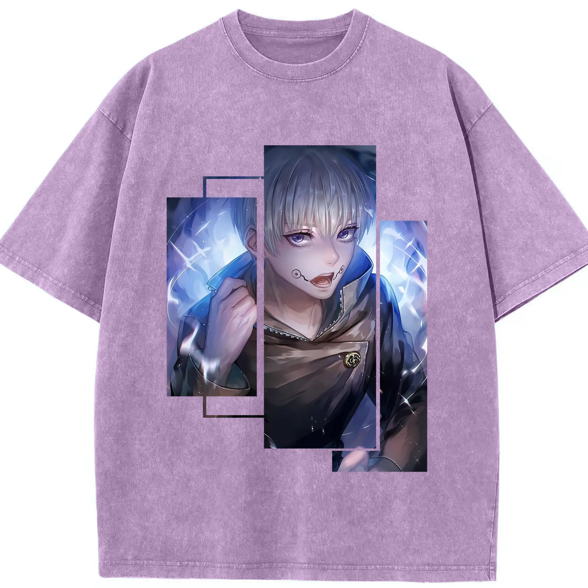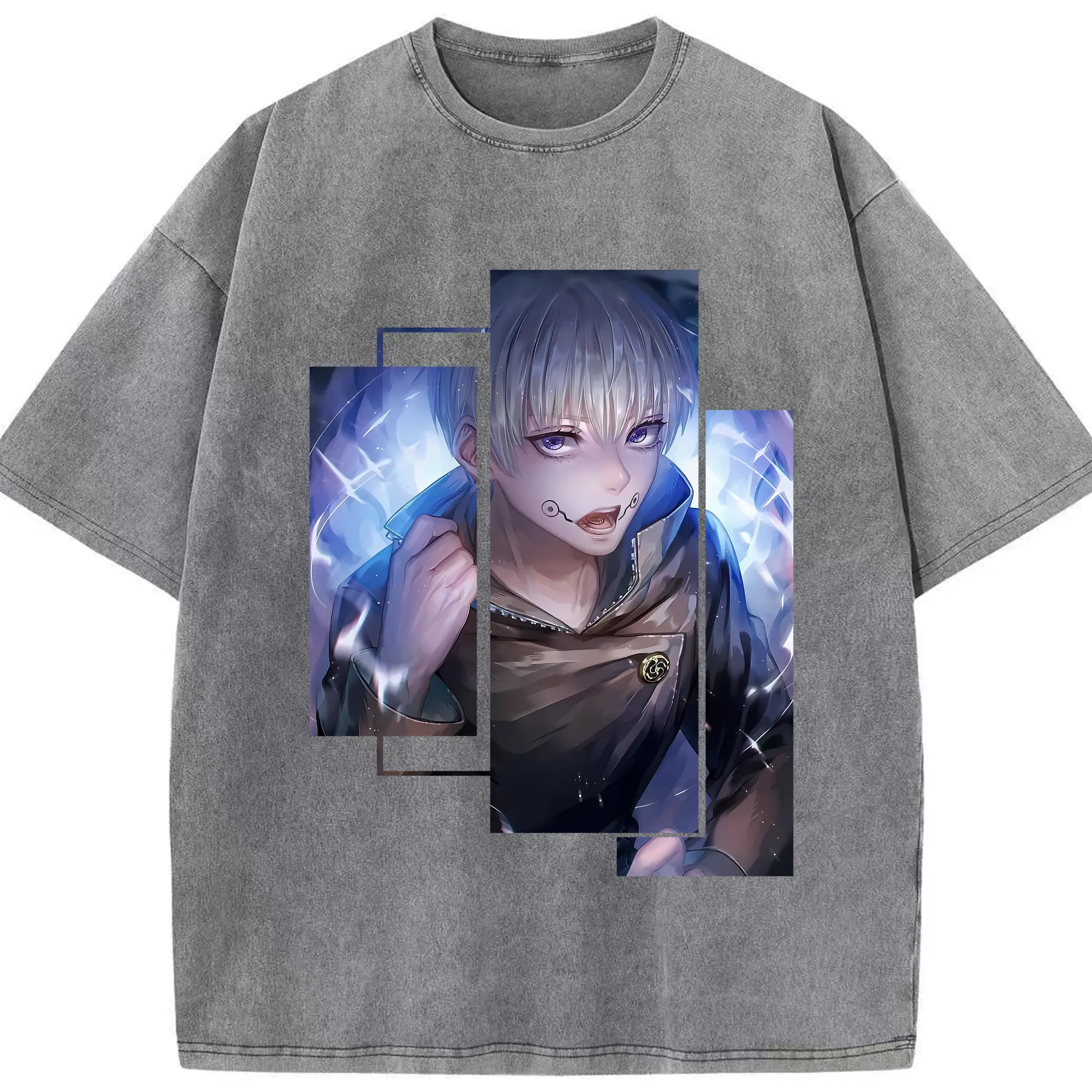 ハンター×ハンター グッズ ヒソカ=モロウ - 綿100% ヴィンテージ風 半袖Tシャツ ・ フロントプリント ・ 柔らか肌触り ・ 通気性 快適 ・ スポーツ カジュアル 外出用
