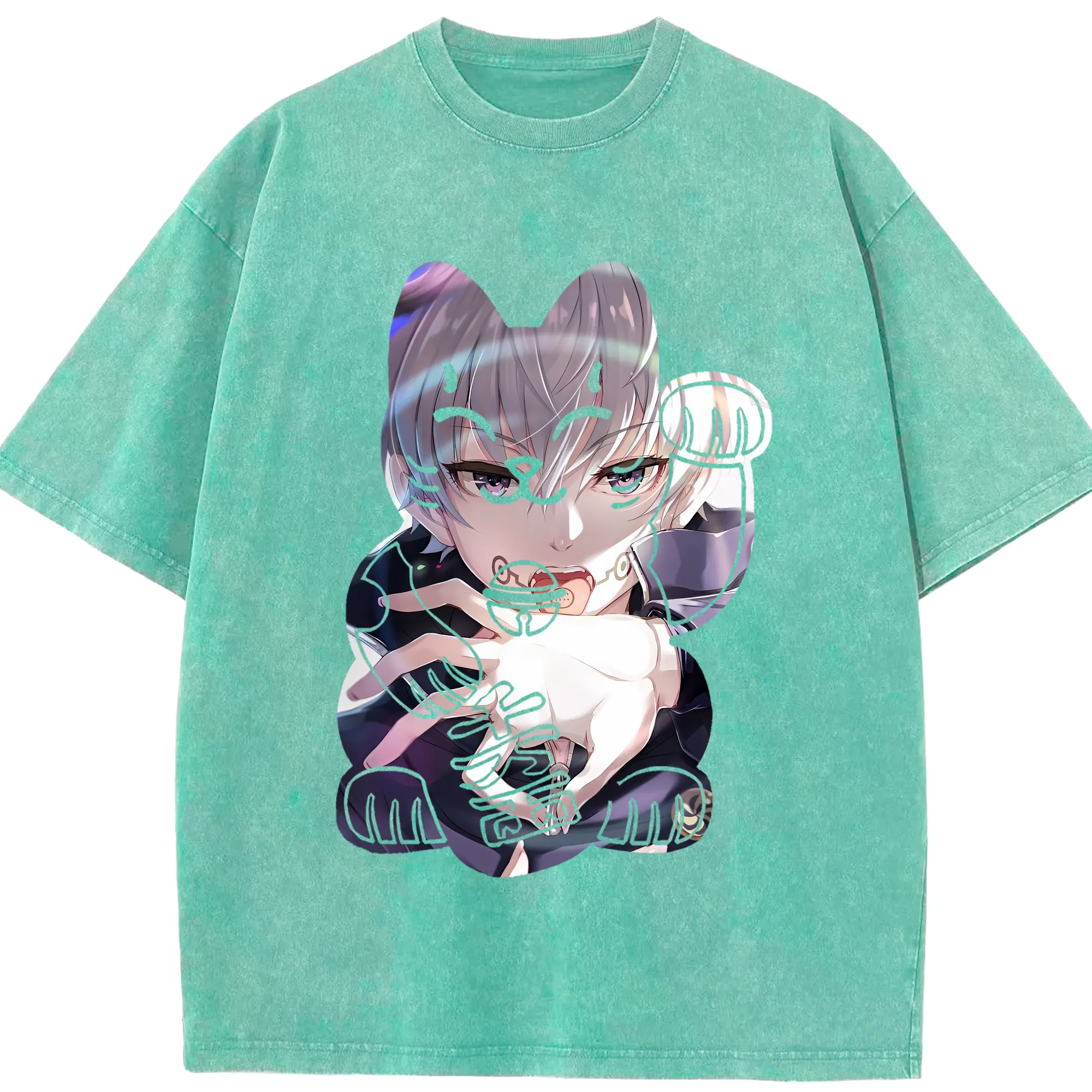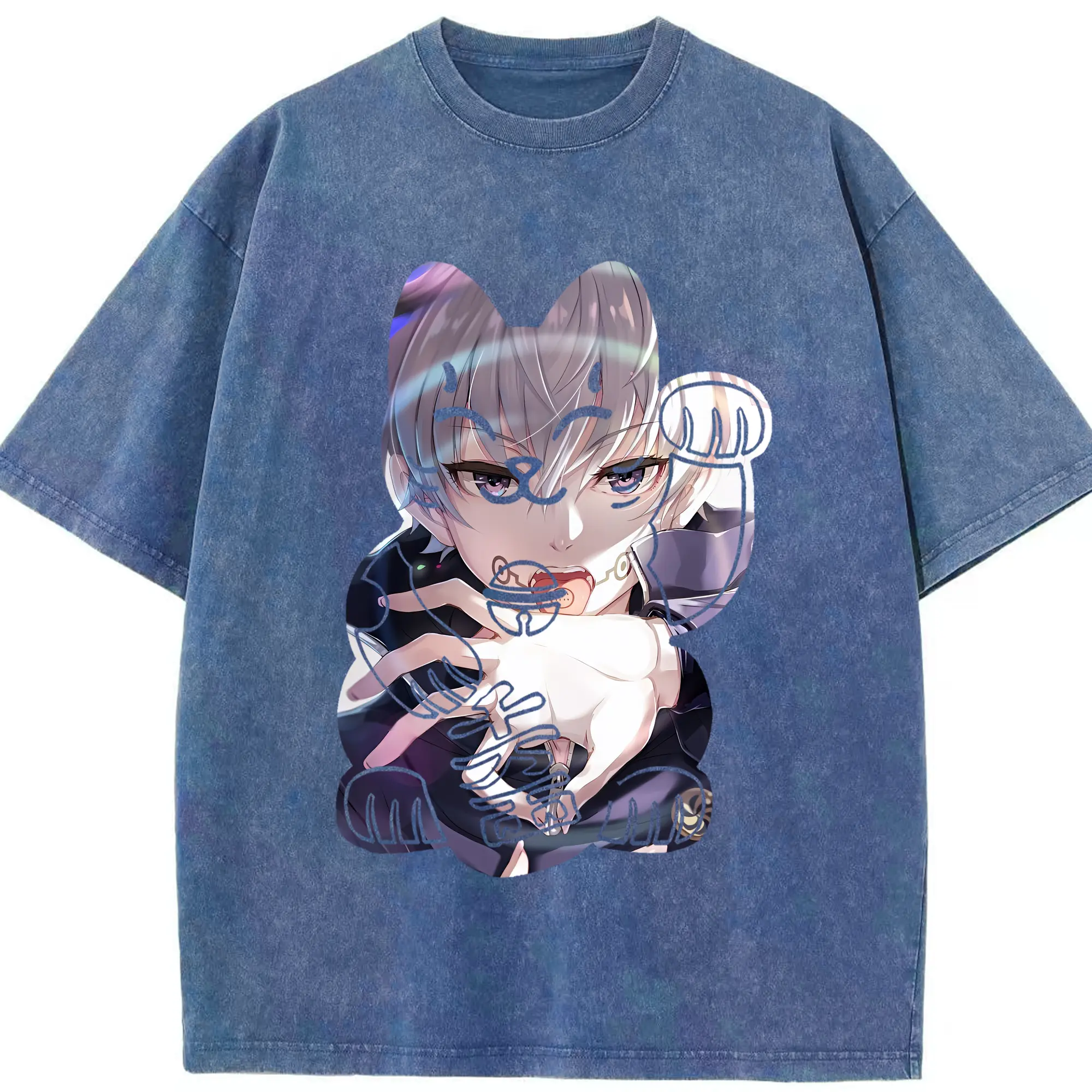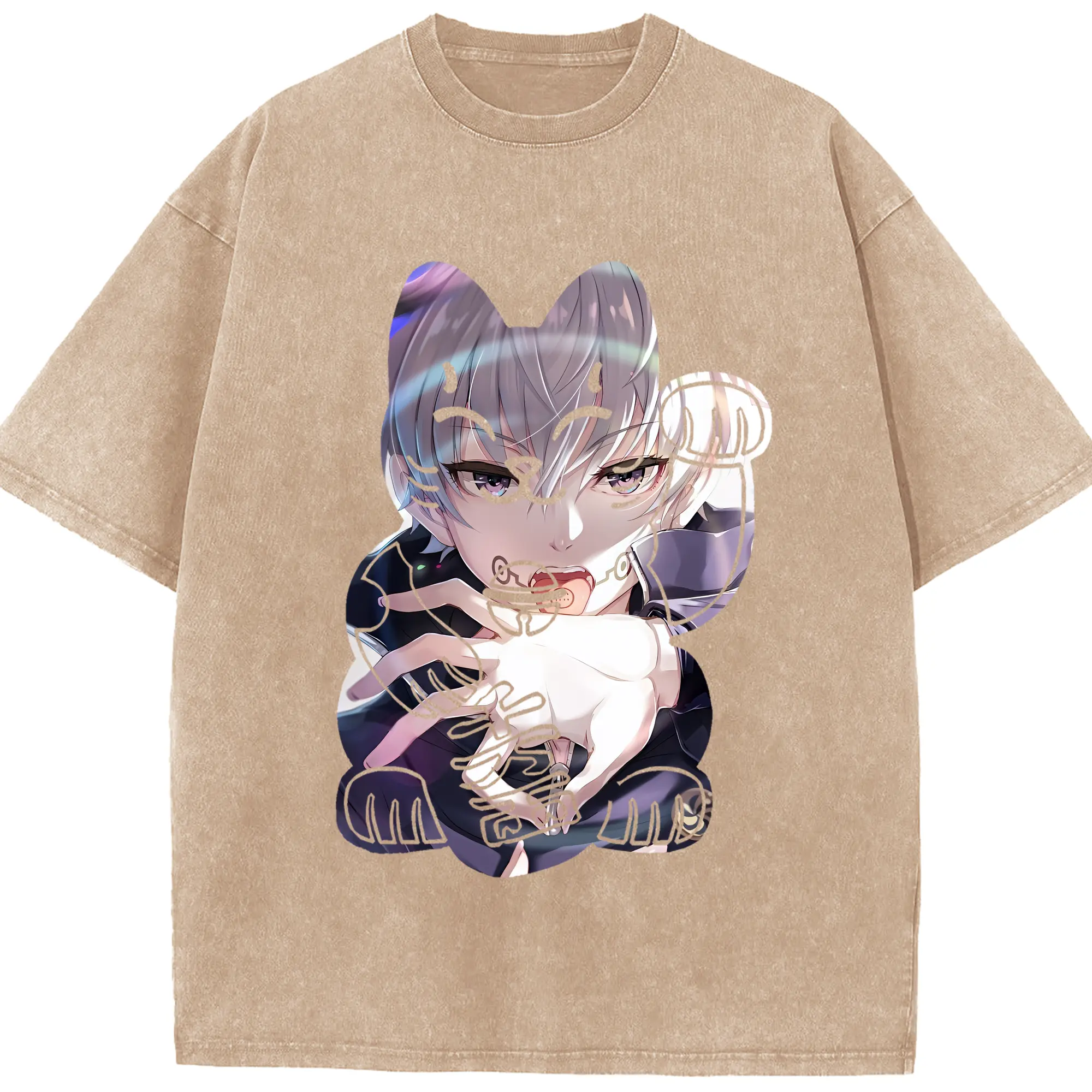 原 神 グッズ フリーナ - 綿100% ヴィンテージ風 半袖Tシャツ ・ フロントプリント ・ 柔らか肌触り ・ 通気性 快適 ・ スポーツ カジュアル 外出用