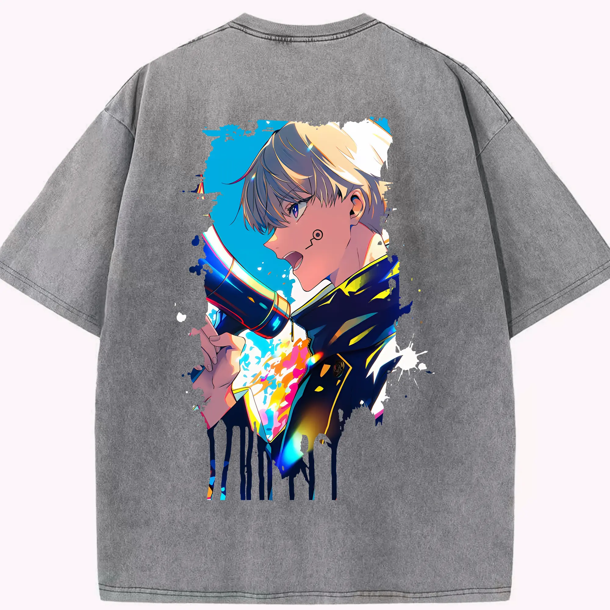 ブルーロック グッズ 千切 豹馬 - 綿100% ヴィンテージ風 半袖Tシャツ ・ 背面プリント ・ 柔らか肌触り ・ 通気性 快適 ・ スポーツ カジュアル 外出用