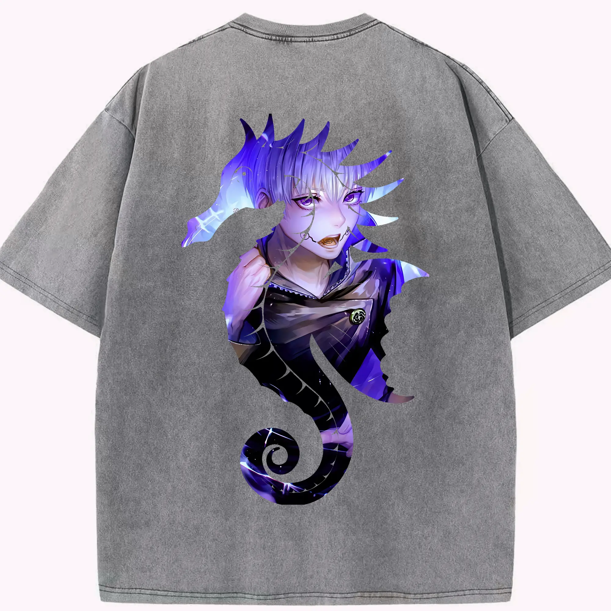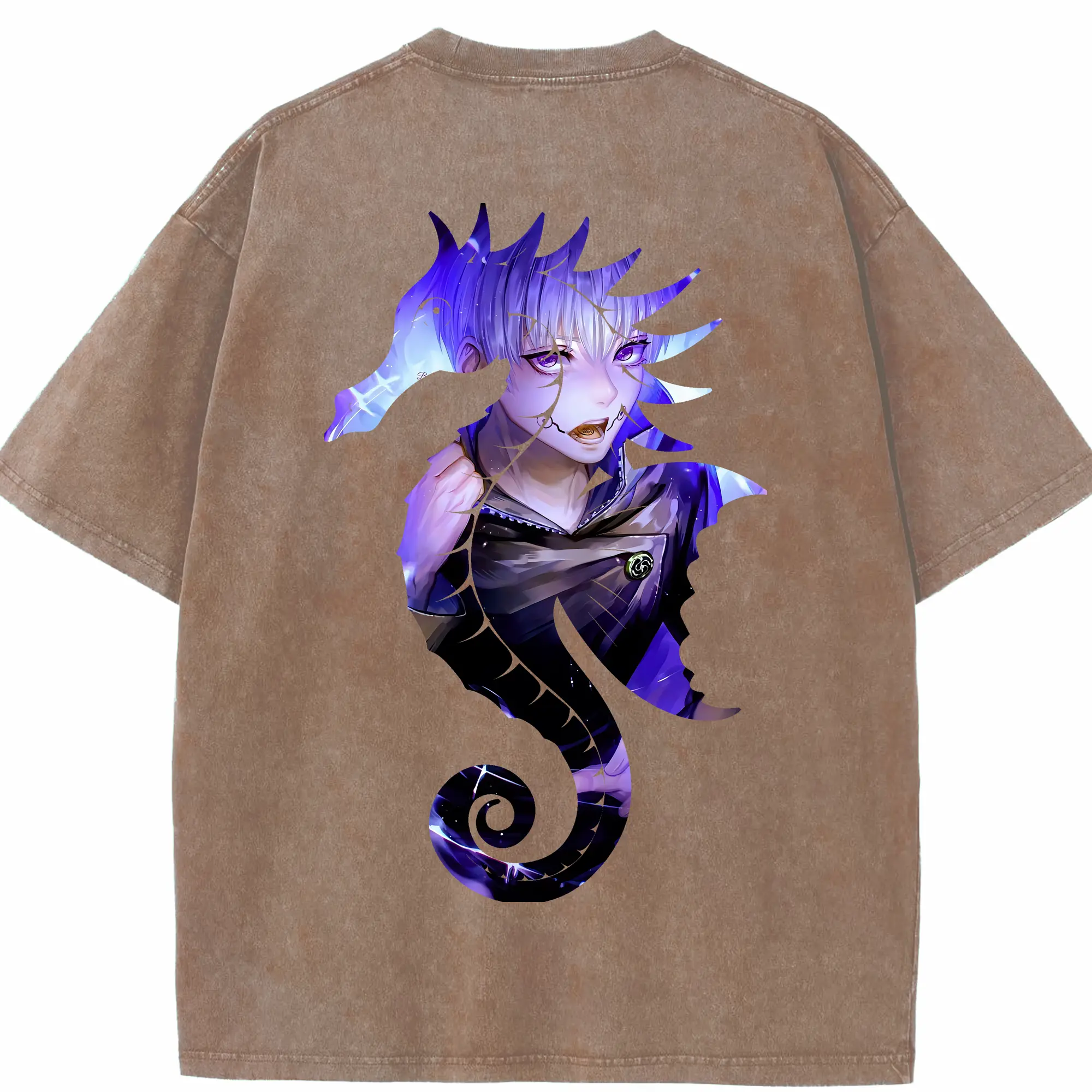 鳴潮 グッズ ショアキーパー - 綿100% ヴィンテージ風 半袖Tシャツ ・ 背面プリント ・ 柔らか肌触り ・ 通気性 快適 ・ スポーツ カジュアル 外出用