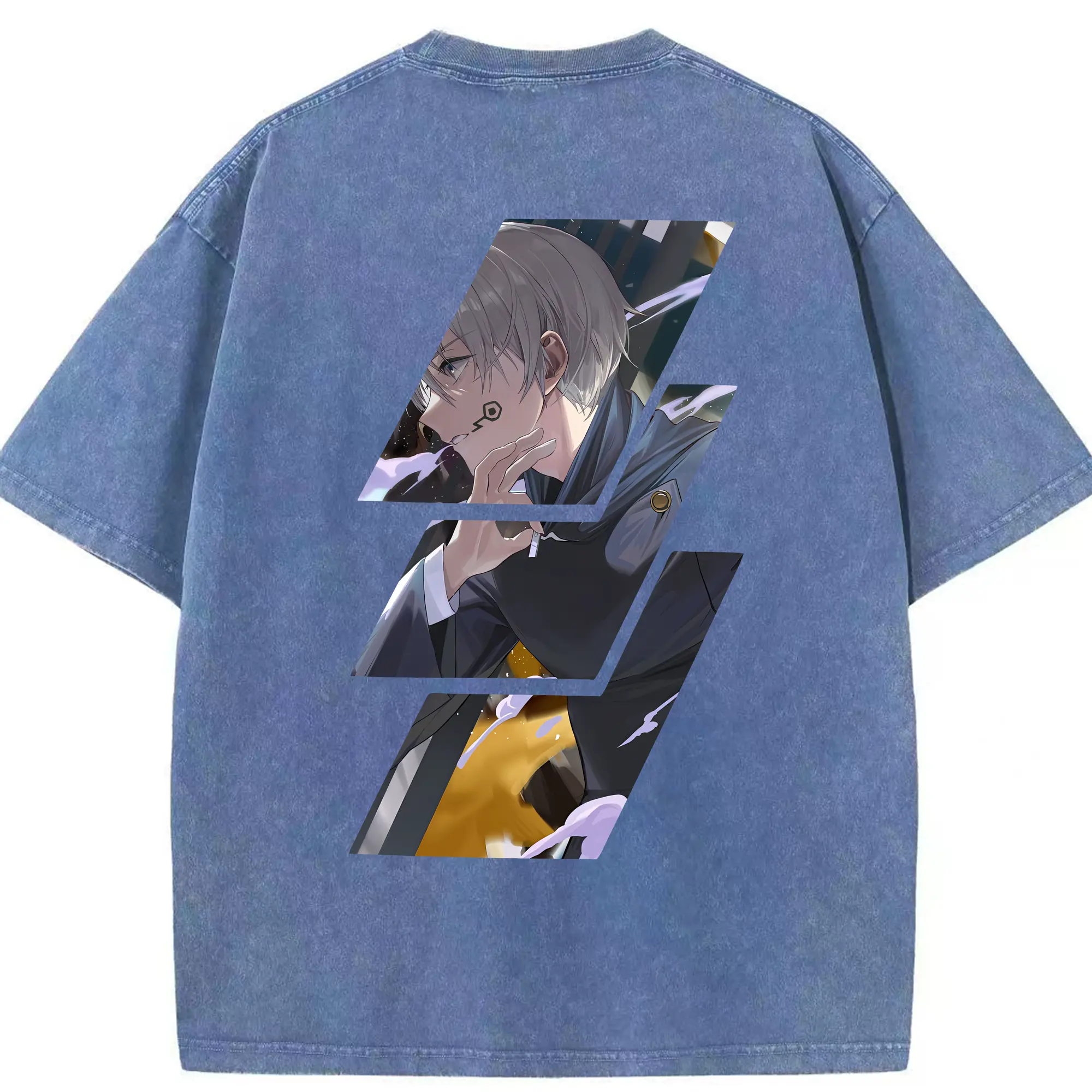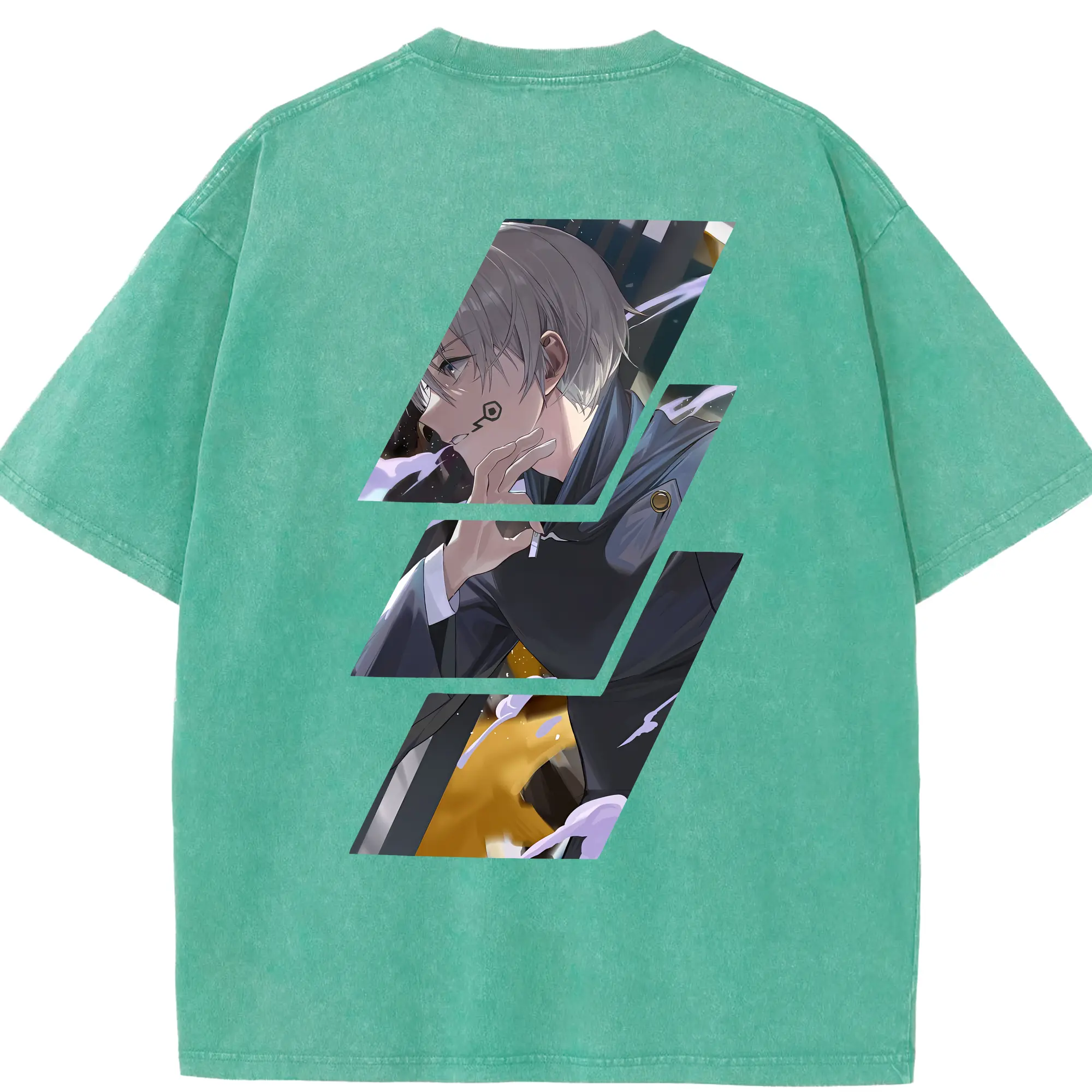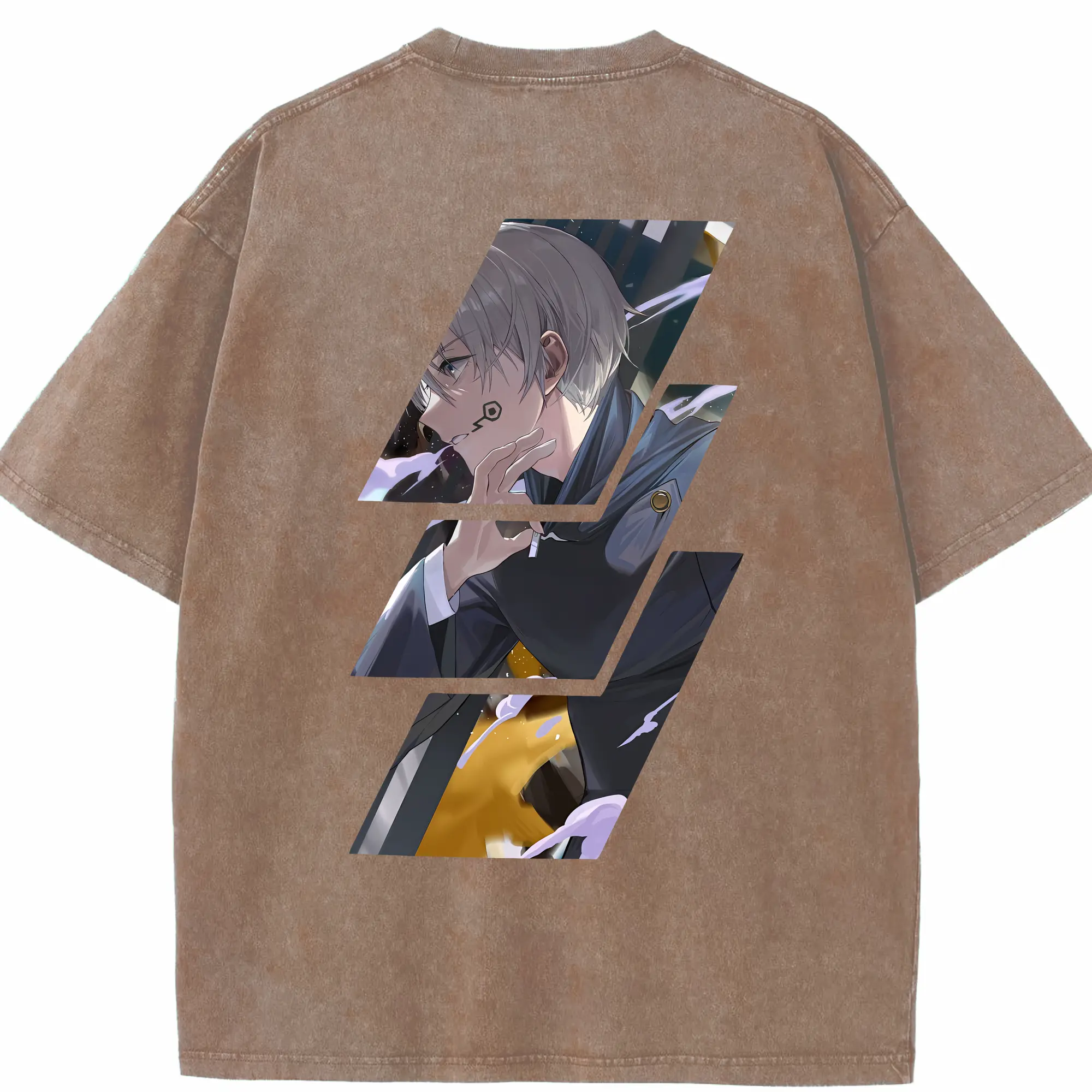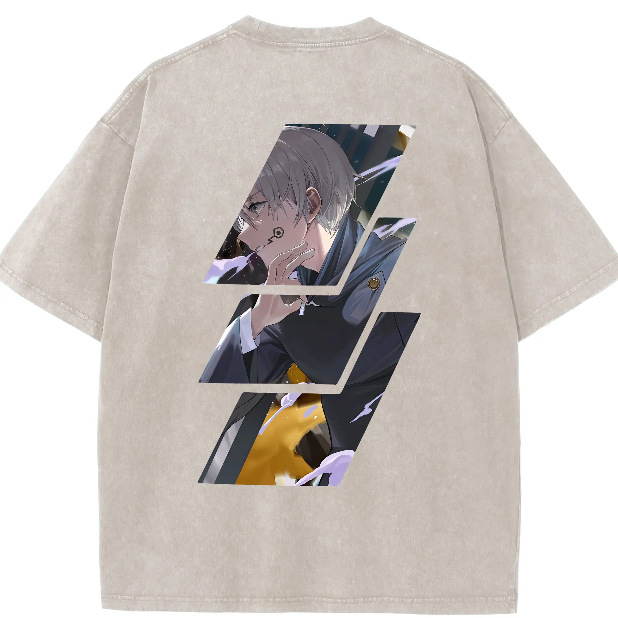 呪術廻戦 グッズ,伏黒 恵 - 綿100% ヴィンテージ風 半袖Tシャツ ・ 背面プリント ・ 柔らか肌触り ・ 通気性 快適 ・ スポーツ カジュアル 外出用