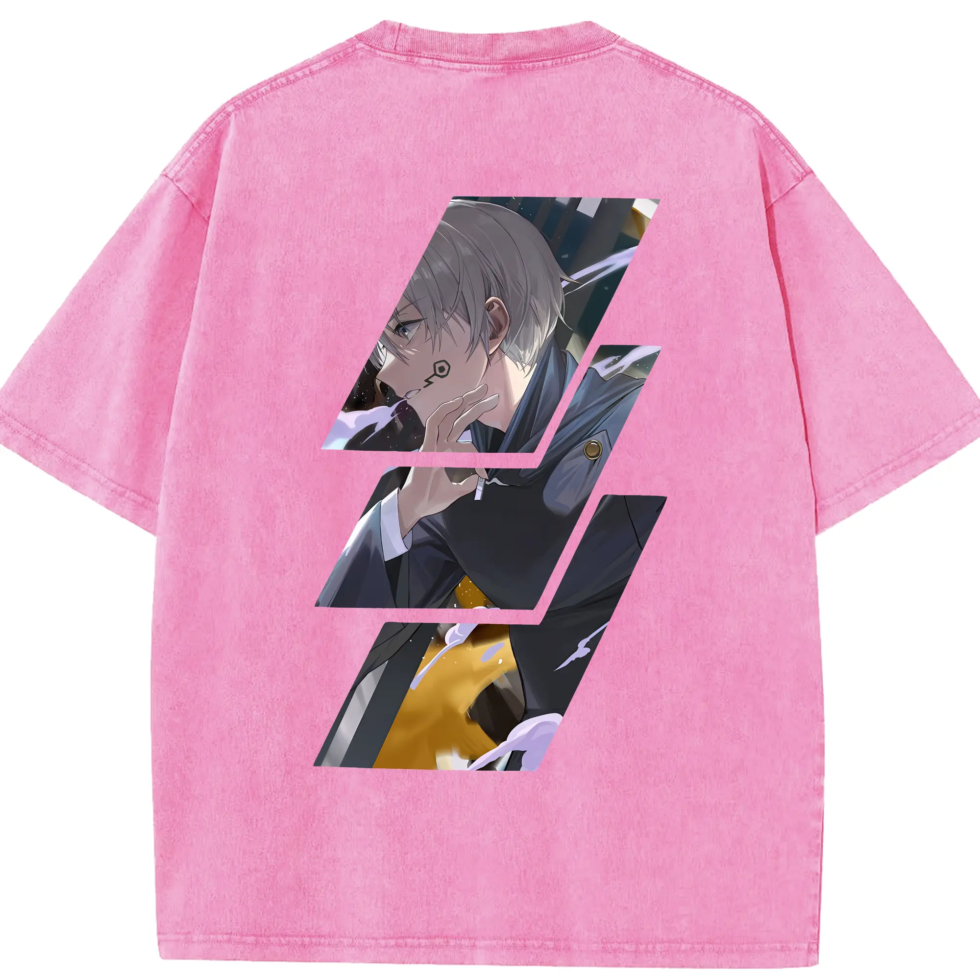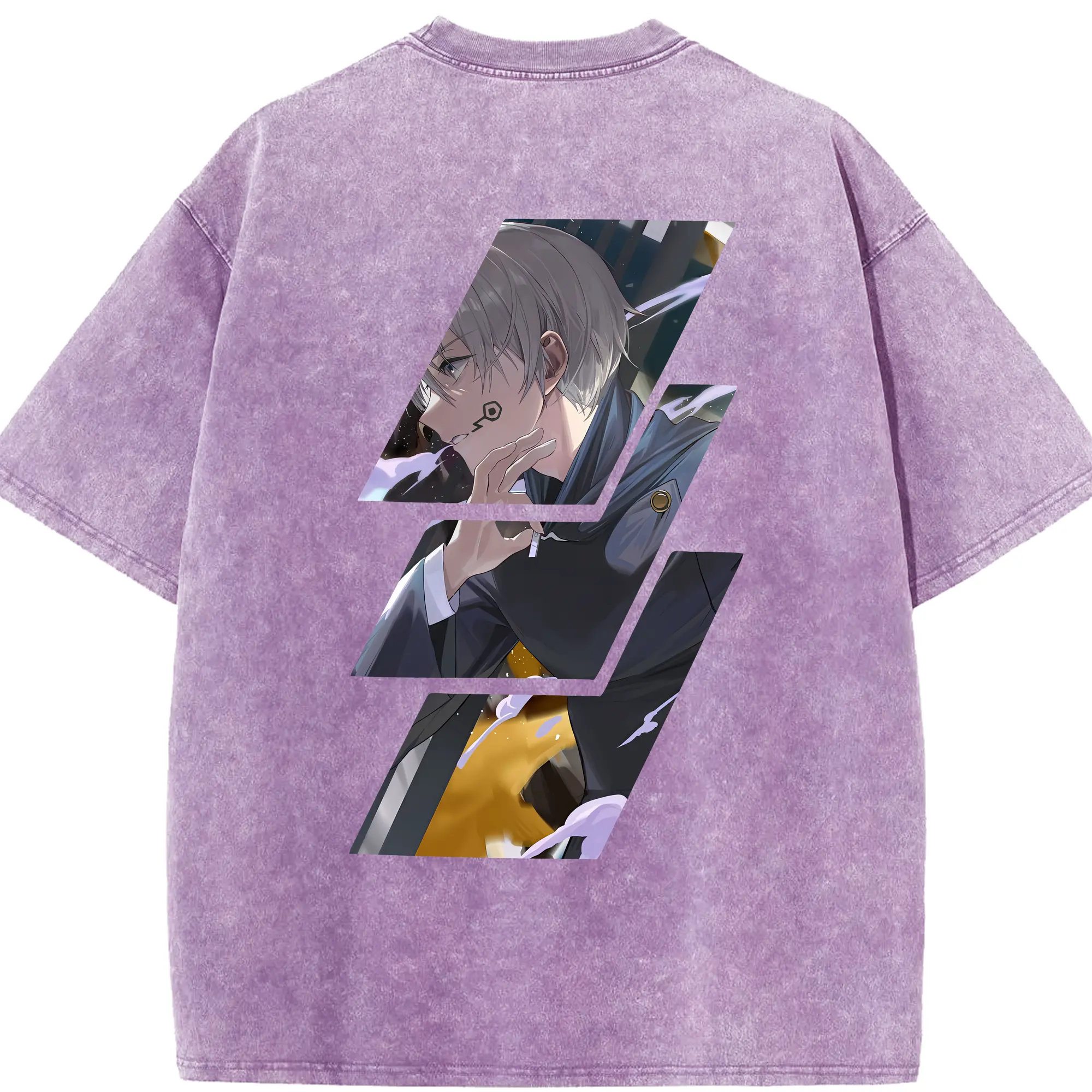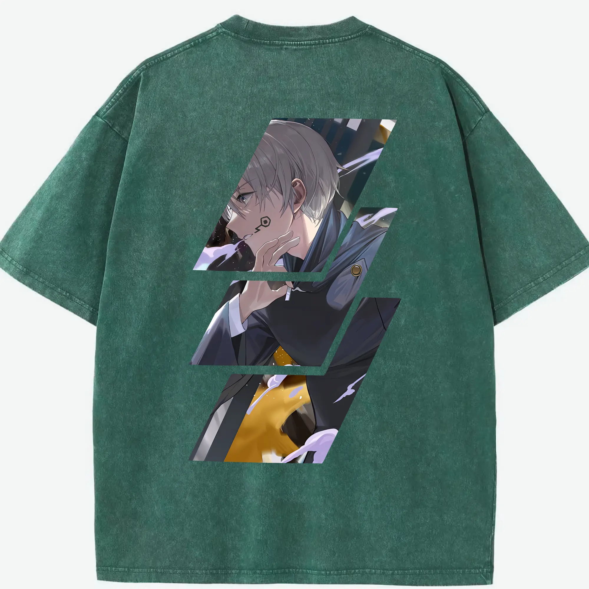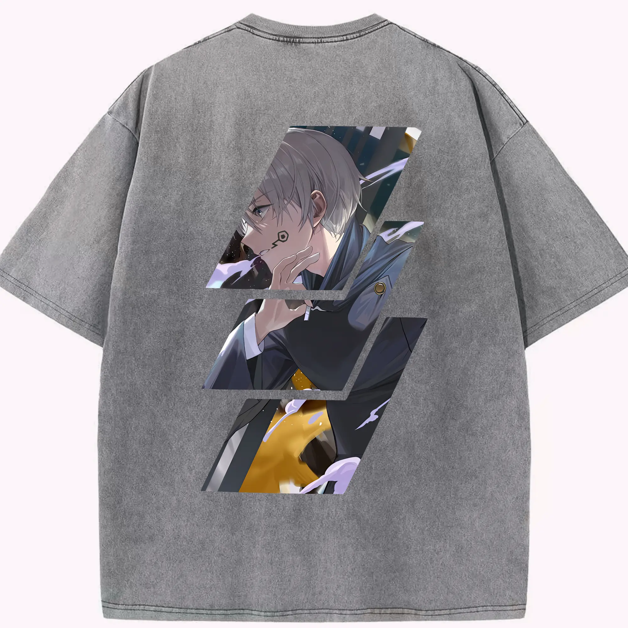 呪術廻戦 グッズ,伏黒 恵 - 綿100% ヴィンテージ風 半袖Tシャツ ・ 背面プリント ・ 柔らか肌触り ・ 通気性 快適 ・ スポーツ カジュアル 外出用