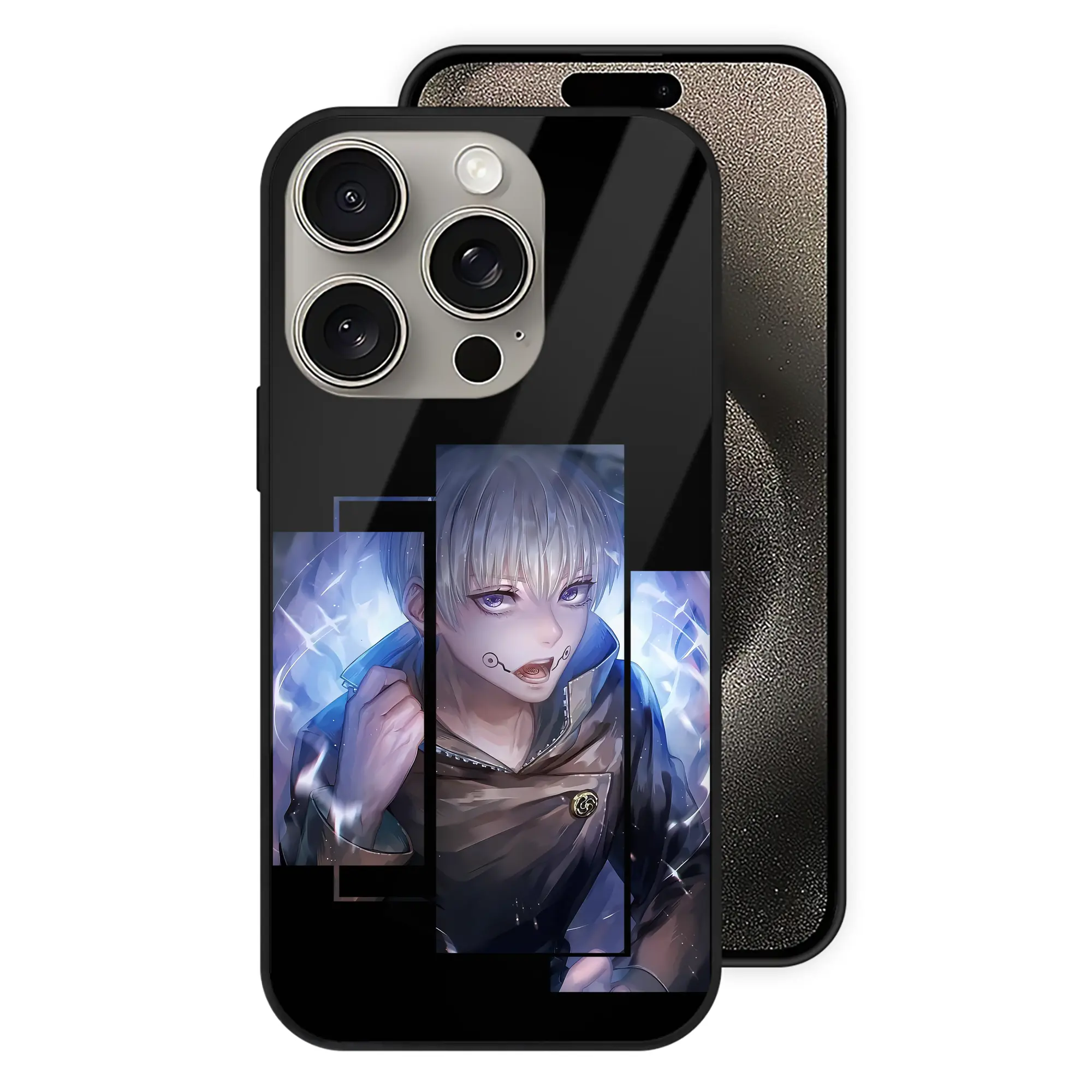 呪術廻戦 グッズ,狗巻 棘 - IPhone15Pro対応 ・ スマホケース ・ 背面ガラス ・ TPU+強化ガラス ・ 耐衝撃 ・ 黄変防止 ・ ワイヤレス充電対応 ・ 3D立体ボタン