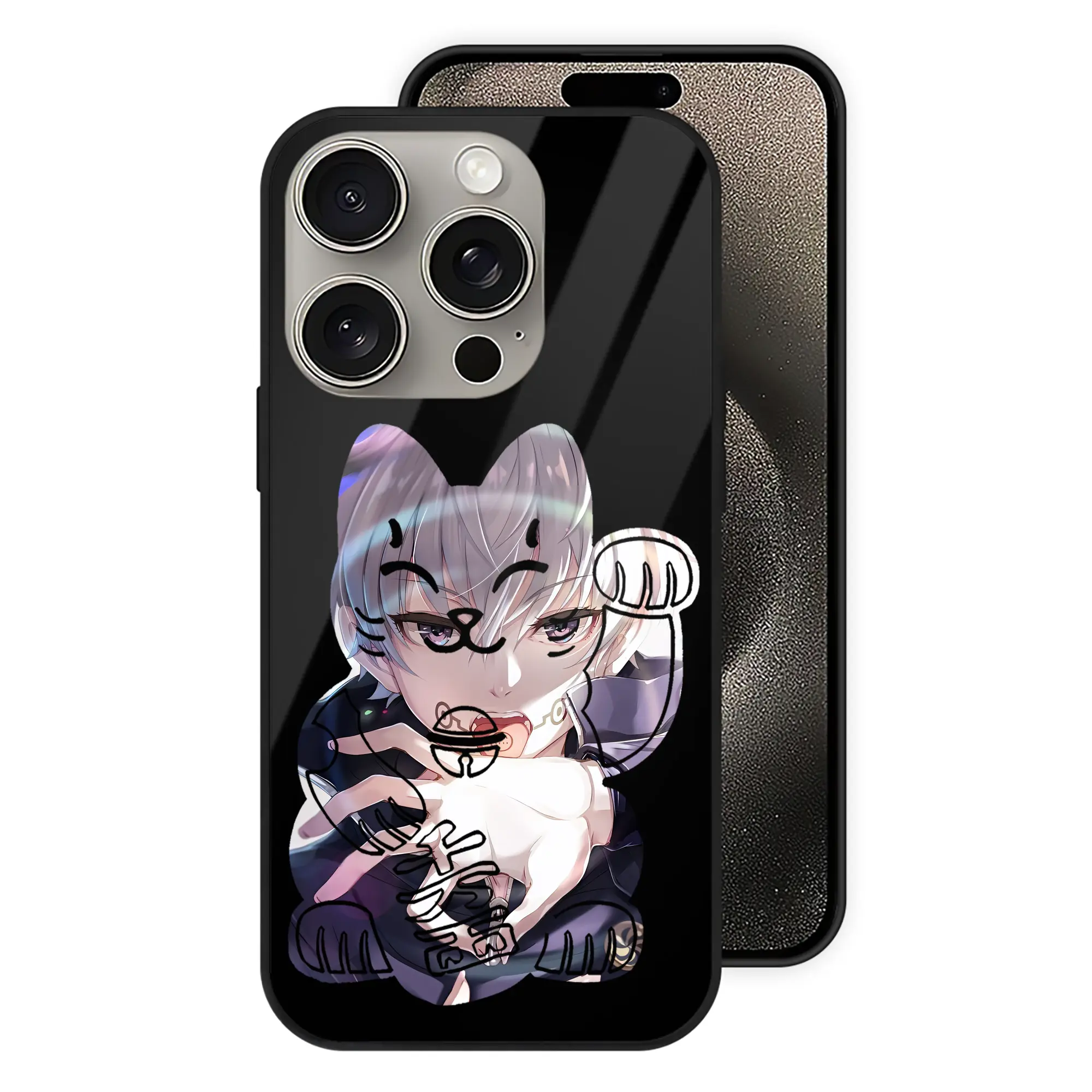 呪術廻戦 グッズ,狗巻 棘 - IPhone15Pro対応 ・ スマホケース ・ 背面ガラス ・ TPU+強化ガラス ・ 耐衝撃 ・ 黄変防止 ・ ワイヤレス充電対応 ・ 3D立体ボタン