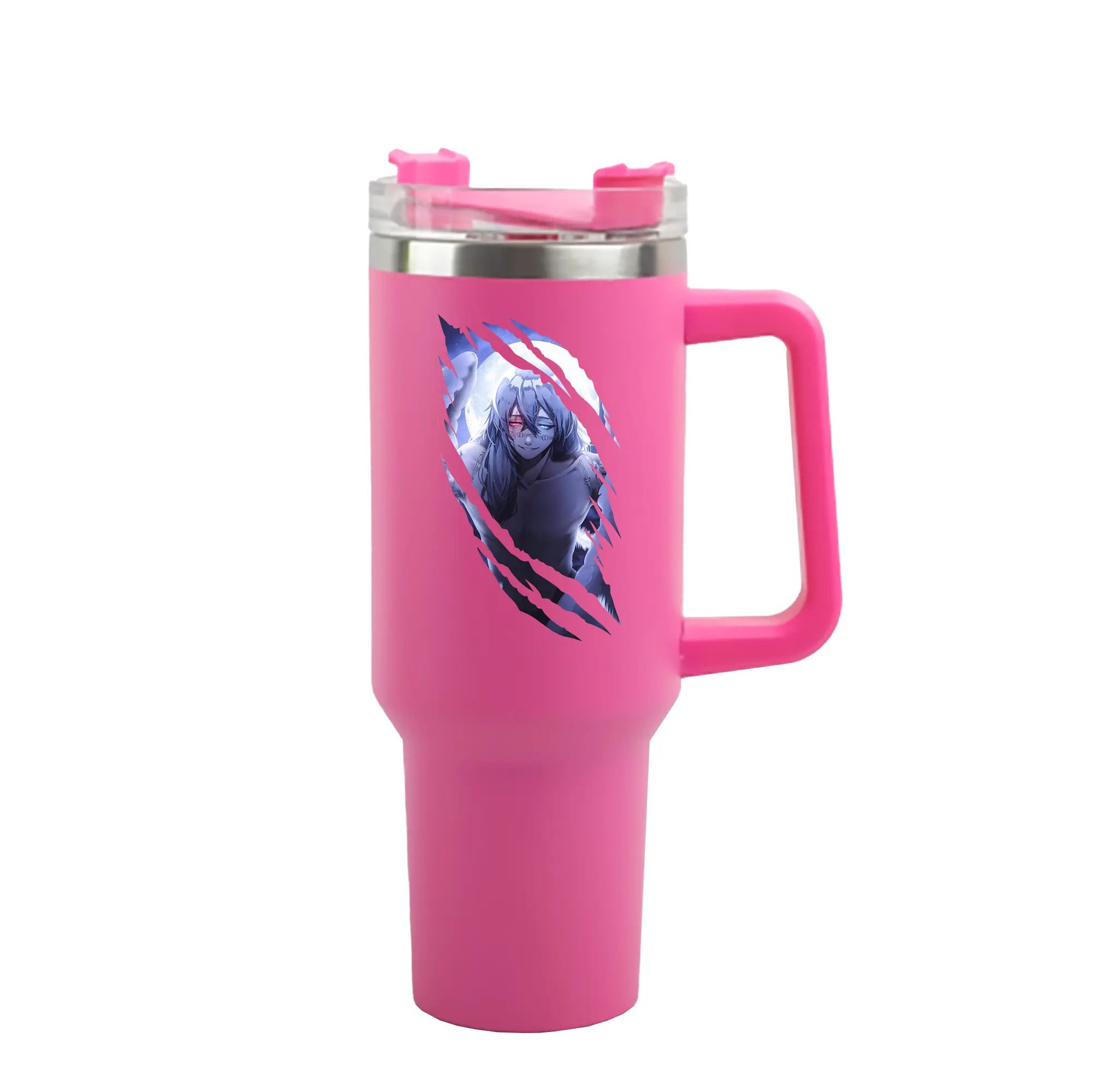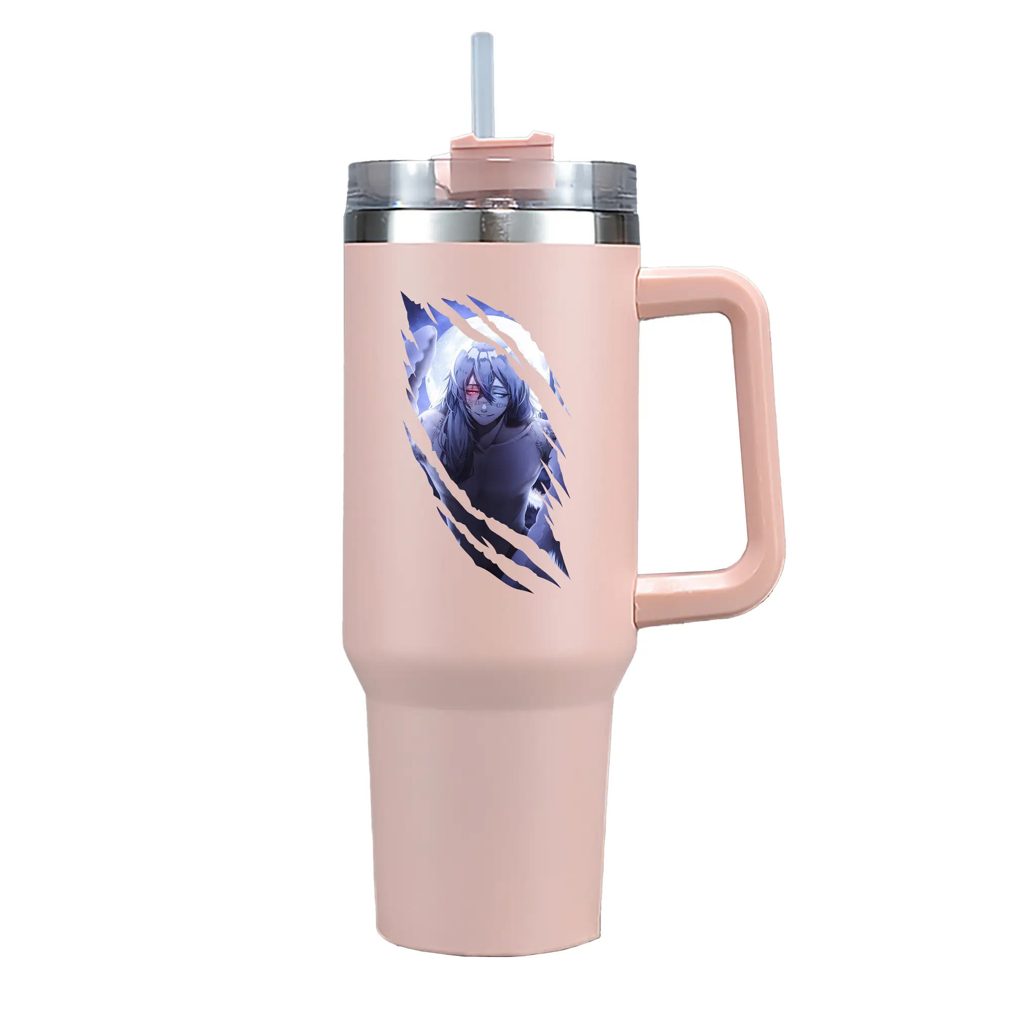 呪術廻戦 グッズ,真人 - 1200mL 車用タンブラー ・ クリスタルステッカー ・ 304ステンレス 内側 ・ 201ステンレス 外側 ・ 保温 保冷 ・ ハンドル&ストロー付き ・ 通勤 ドライブ アウトドア用