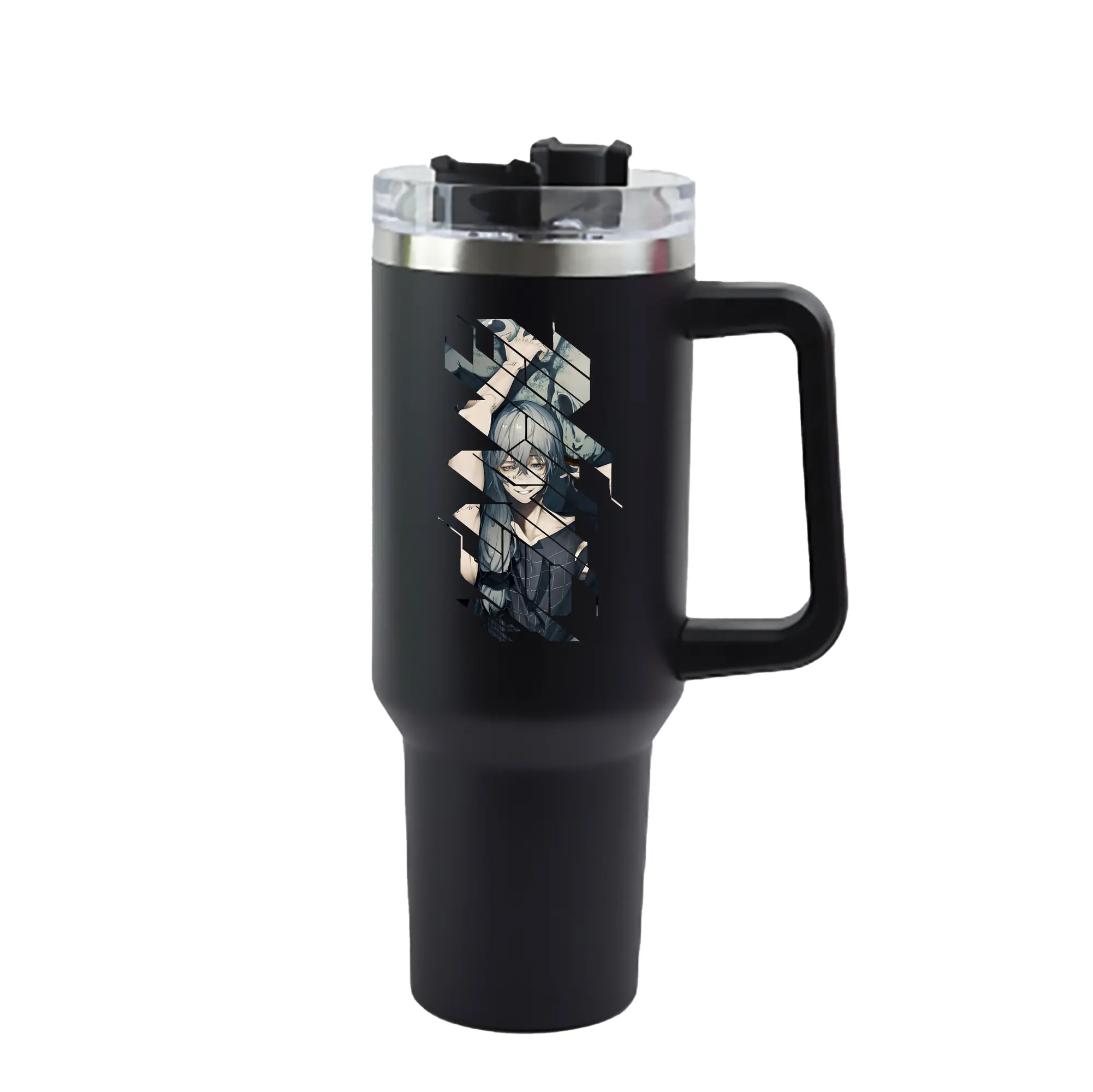 呪術廻戦 グッズ,真人 - 1200mL 車用タンブラー ・ クリスタルステッカー ・ 304ステンレス 内側 ・ 201ステンレス 外側 ・ 保温 保冷 ・ ハンドル&ストロー付き ・ 通勤 ドライブ アウトドア用