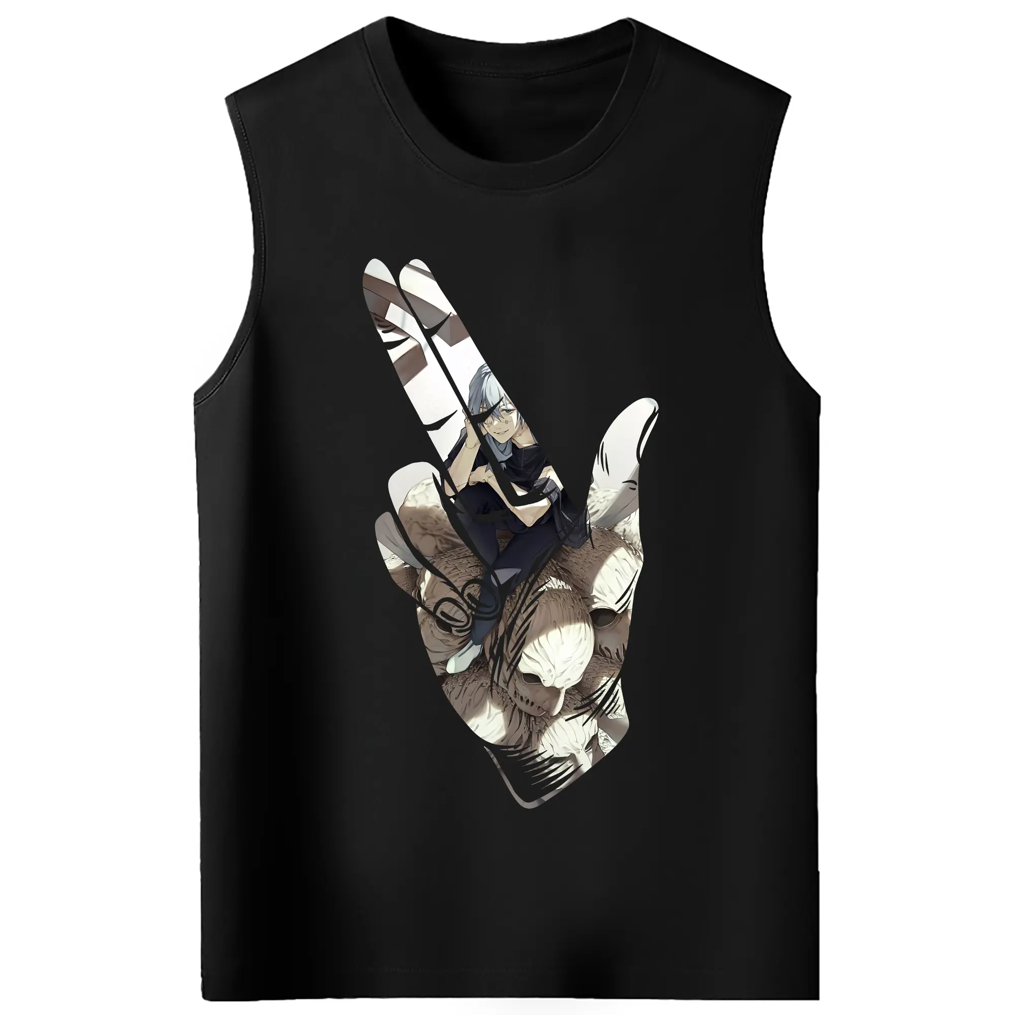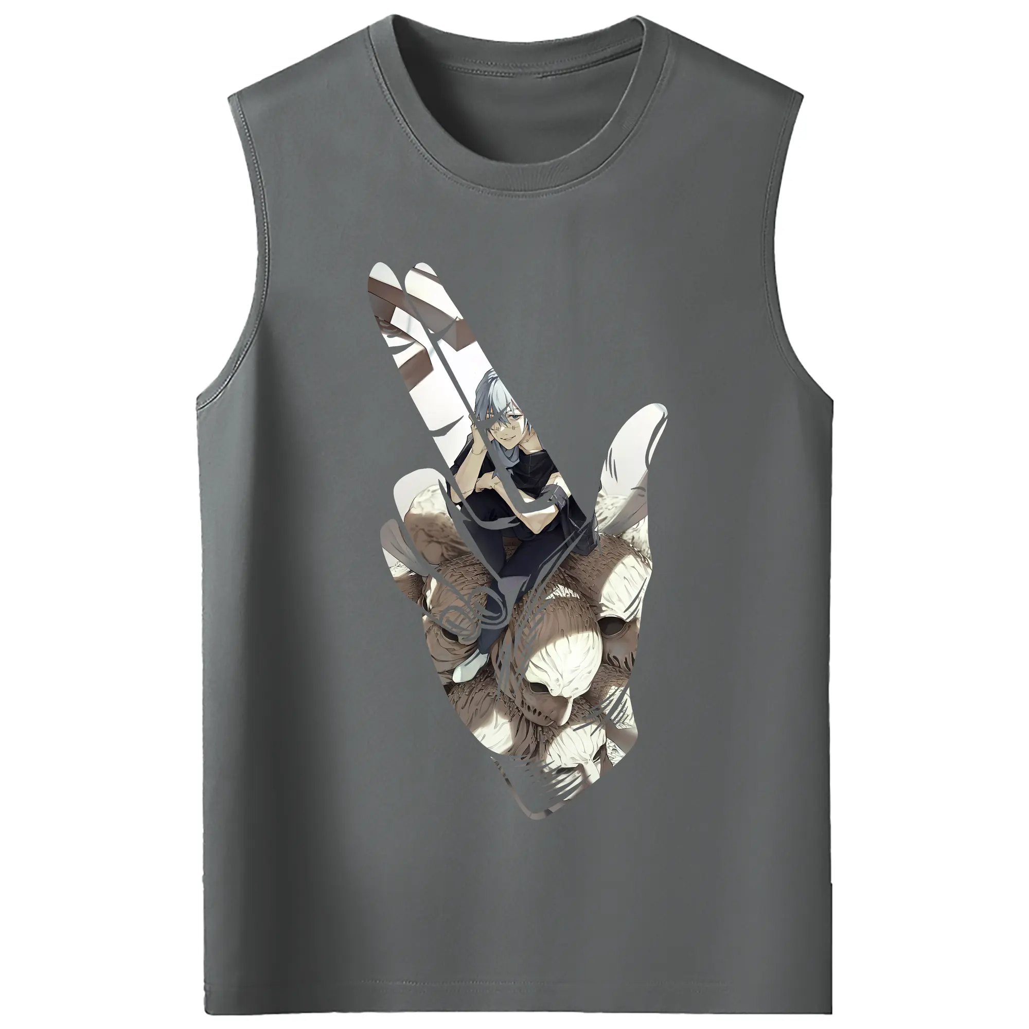 呪術廻戦 グッズ,真人 - コットン100% タンクトップ ・ フロントプリント ・ タイトフィット ・ 快適 通気性 ・ スポーツ カジュアル 散歩用