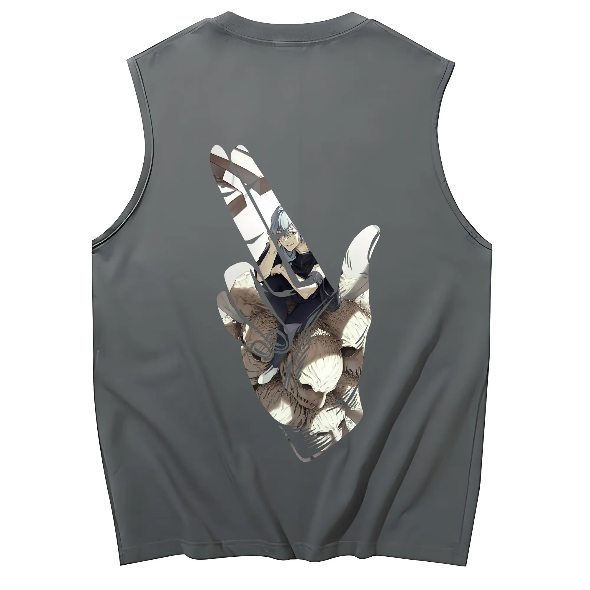 呪術廻戦 グッズ,真人 - コットン100% タンクトップ ・ 背面プリント ・ タイトシルエット ・ 快適 通気性 ・ スポーツ カジュアル 散歩用