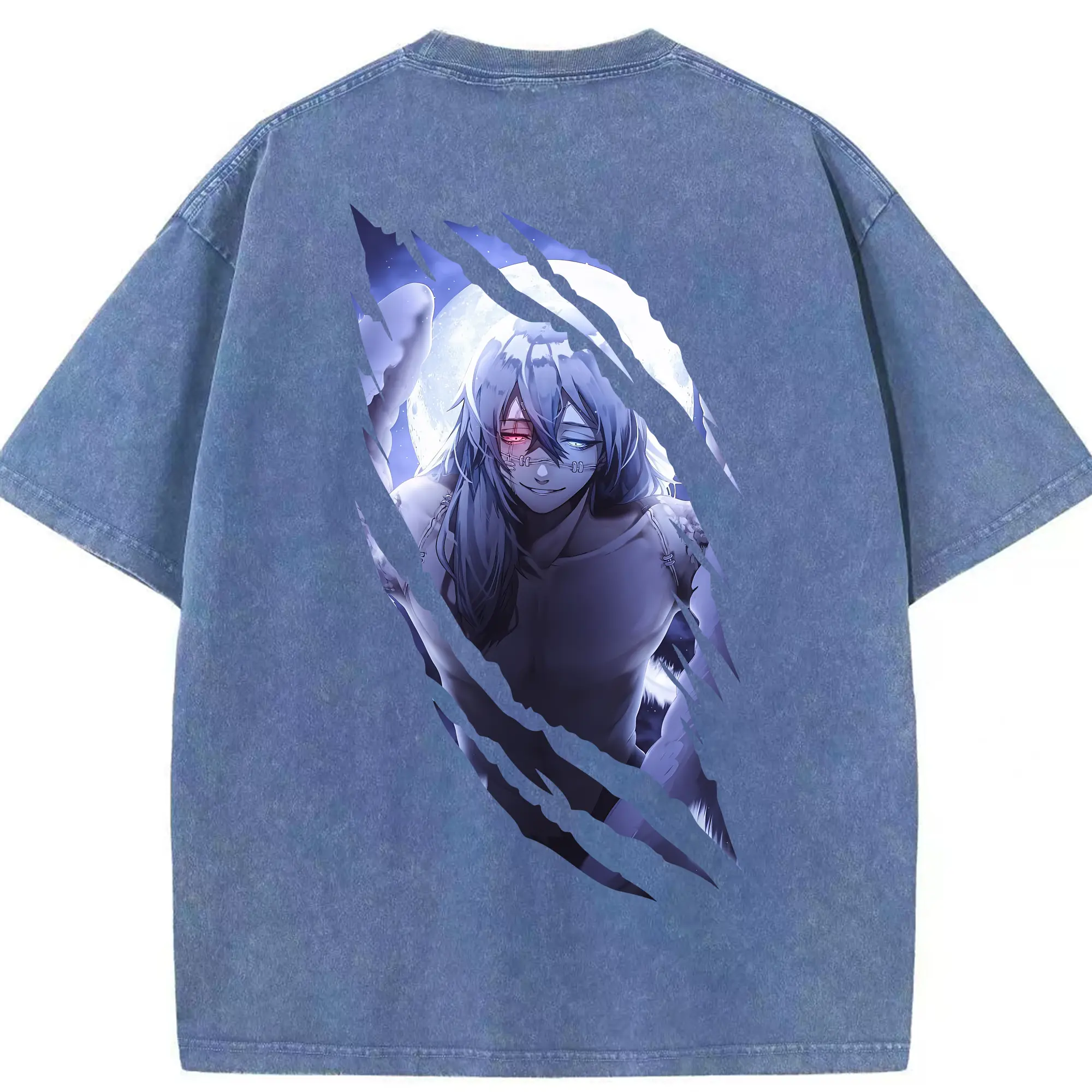 ブリーチ グッズ 黒崎 一護 - 綿100% ヴィンテージ風 半袖Tシャツ ・ 背面プリント ・ 柔らか肌触り ・ 通気性 快適 ・ スポーツ カジュアル 外出用