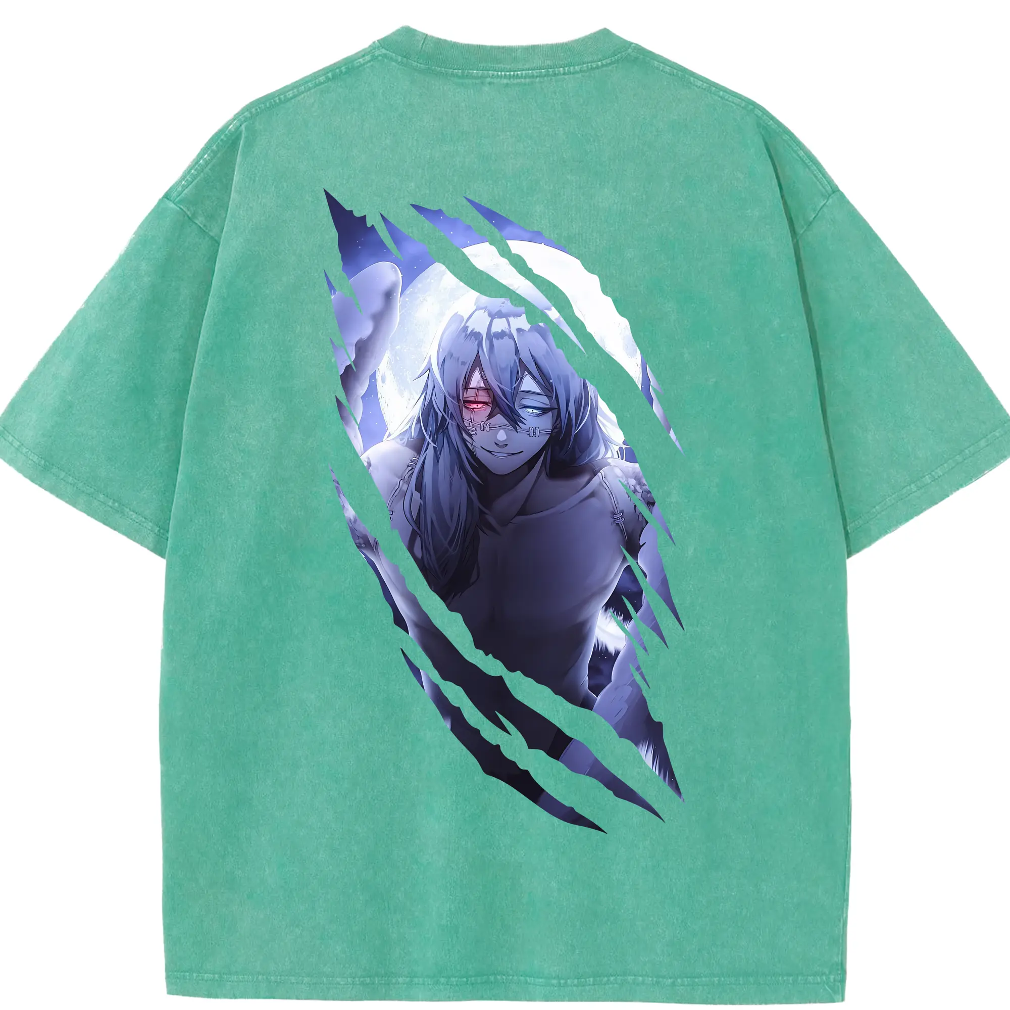 七つの大罪 グッズ メリオダス - 綿100% ヴィンテージ風 半袖Tシャツ ・ 背面プリント ・ 柔らか肌触り ・ 通気性 快適 ・ スポーツ カジュアル 外出用