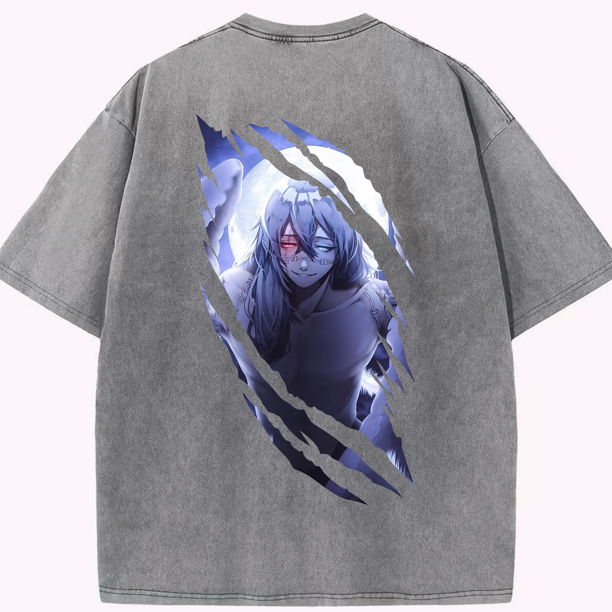 銀魂 グッズ 坂田 銀時 - 綿100% ヴィンテージ風 半袖Tシャツ ・ 背面プリント ・ 柔らか肌触り ・ 通気性 快適 ・ スポーツ カジュアル 外出用