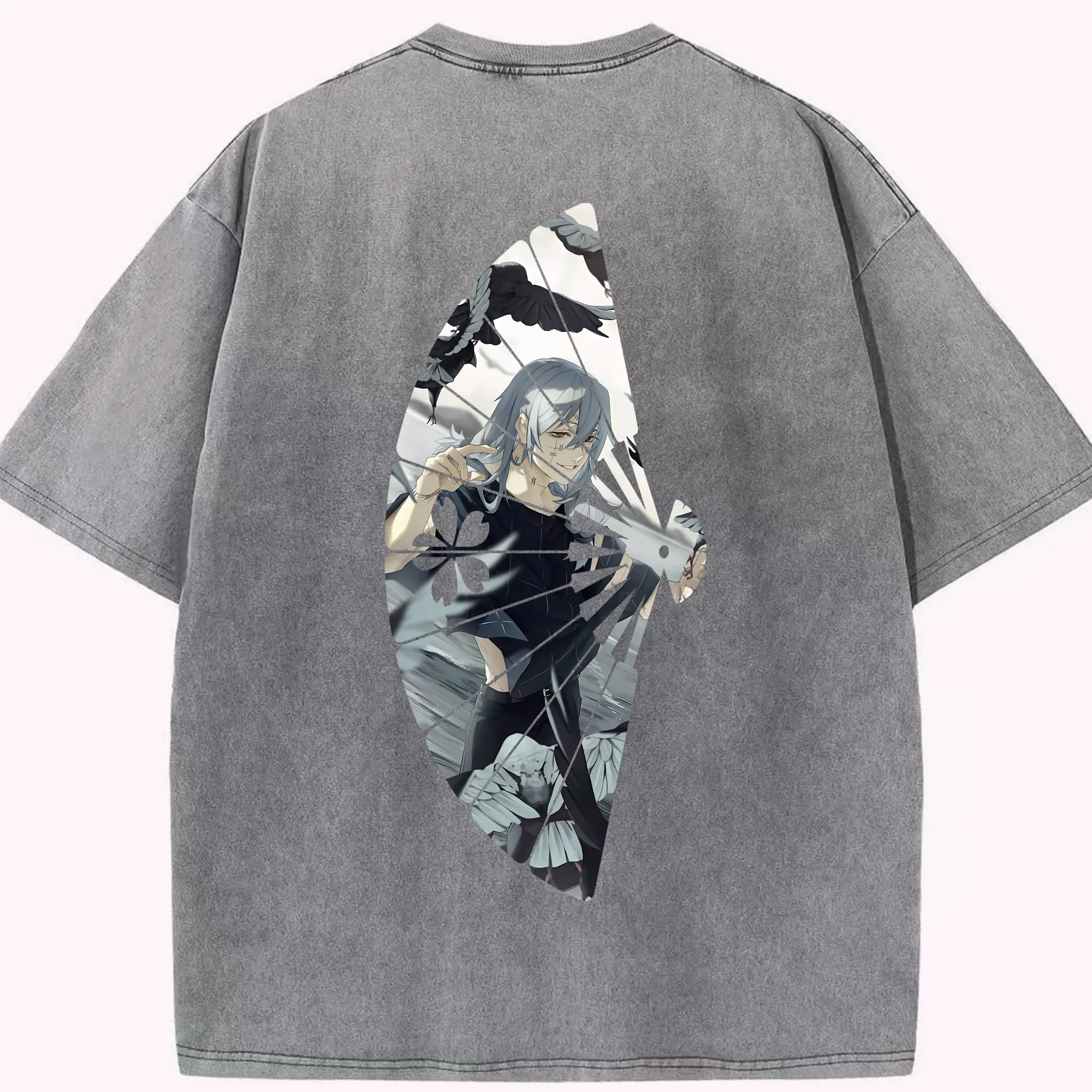 ブルーアーカイブ グッズ 空崎ヒナ - 綿100% ヴィンテージ風 半袖Tシャツ ・ 背面プリント ・ 柔らか肌触り ・ 通気性 快適 ・ スポーツ カジュアル 外出用