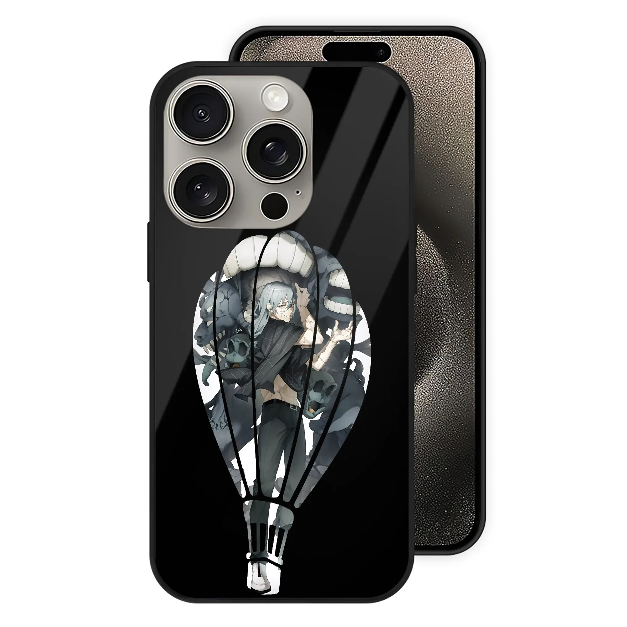 呪術廻戦 グッズ,真人 - IPhone15Pro対応 ・ スマホケース ・ 背面ガラス ・ TPU+強化ガラス ・ 耐衝撃 ・ 黄変防止 ・ ワイヤレス充電対応 ・ 3D立体ボタン