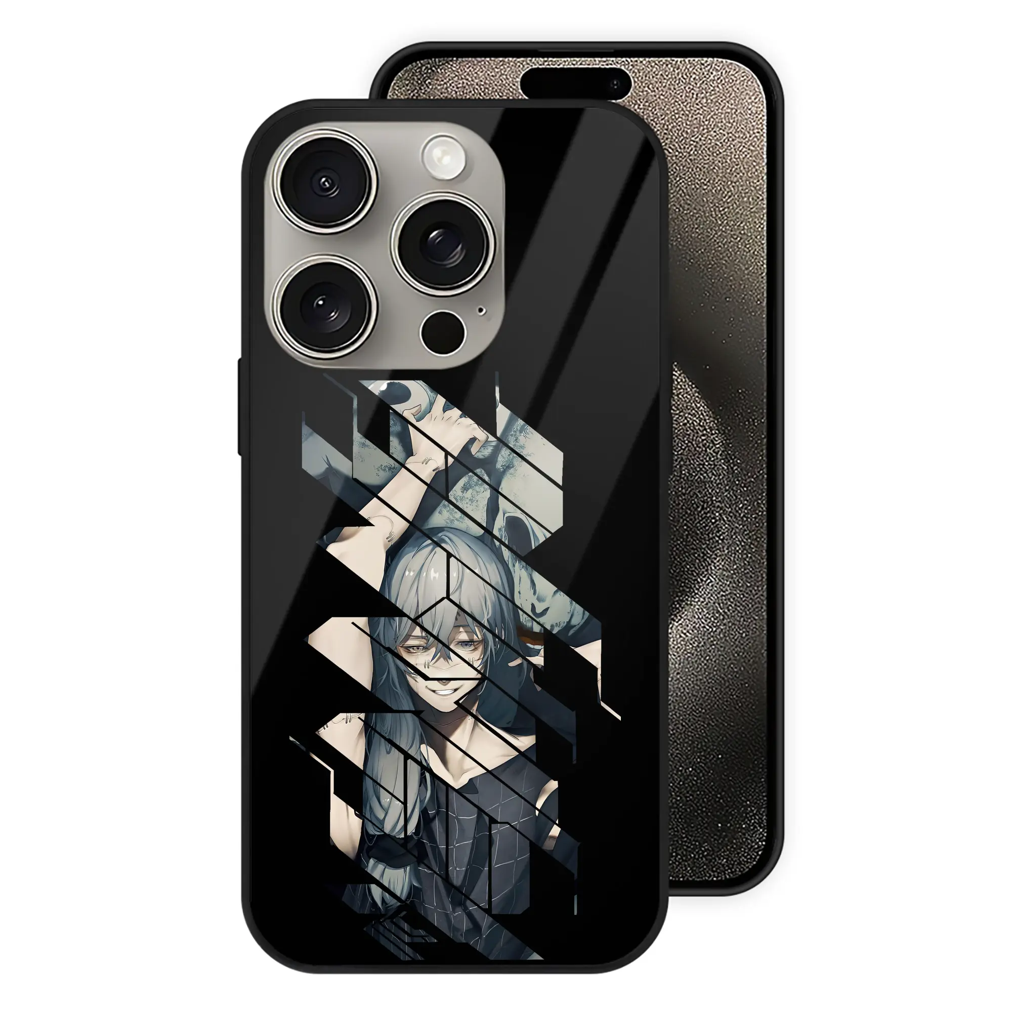 呪術廻戦 グッズ,真人 - IPhone15Pro対応 ・ スマホケース ・ 背面ガラス ・ TPU+強化ガラス ・ 耐衝撃 ・ 黄変防止 ・ ワイヤレス充電対応 ・ 3D立体ボタン