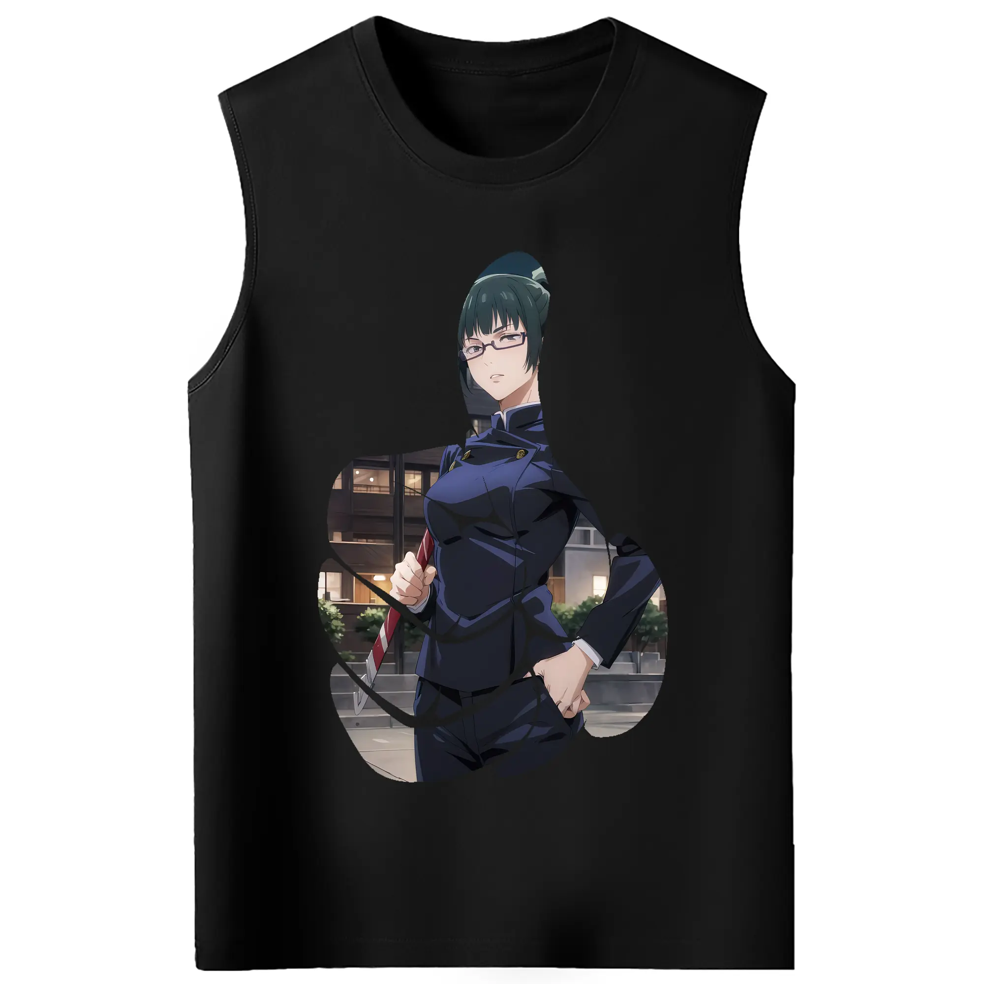 呪術廻戦 グッズ,禪院 真希 - コットン100% タンクトップ ・ フロントプリント ・ タイトフィット ・ 快適 通気性 ・ スポーツ カジュアル 散歩用