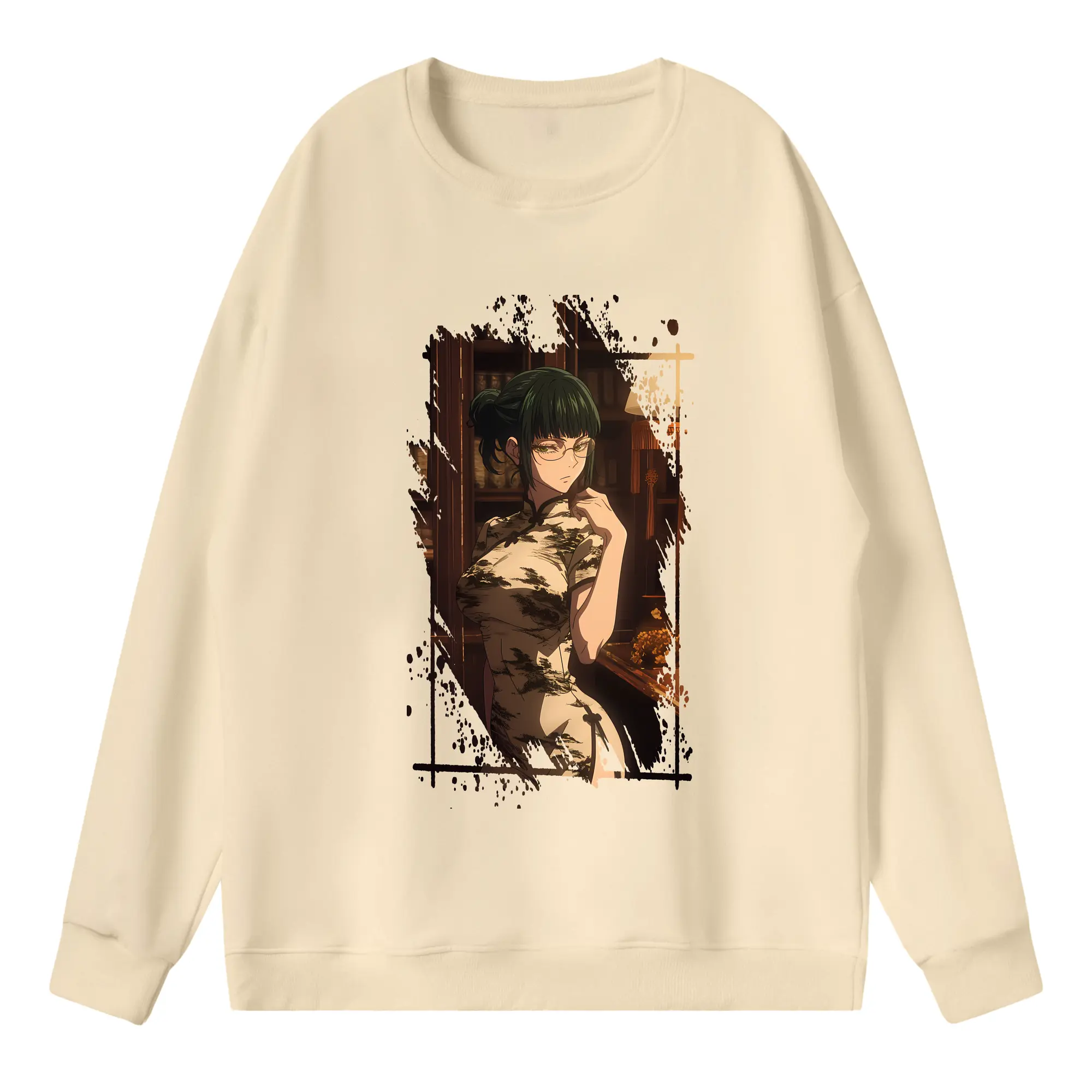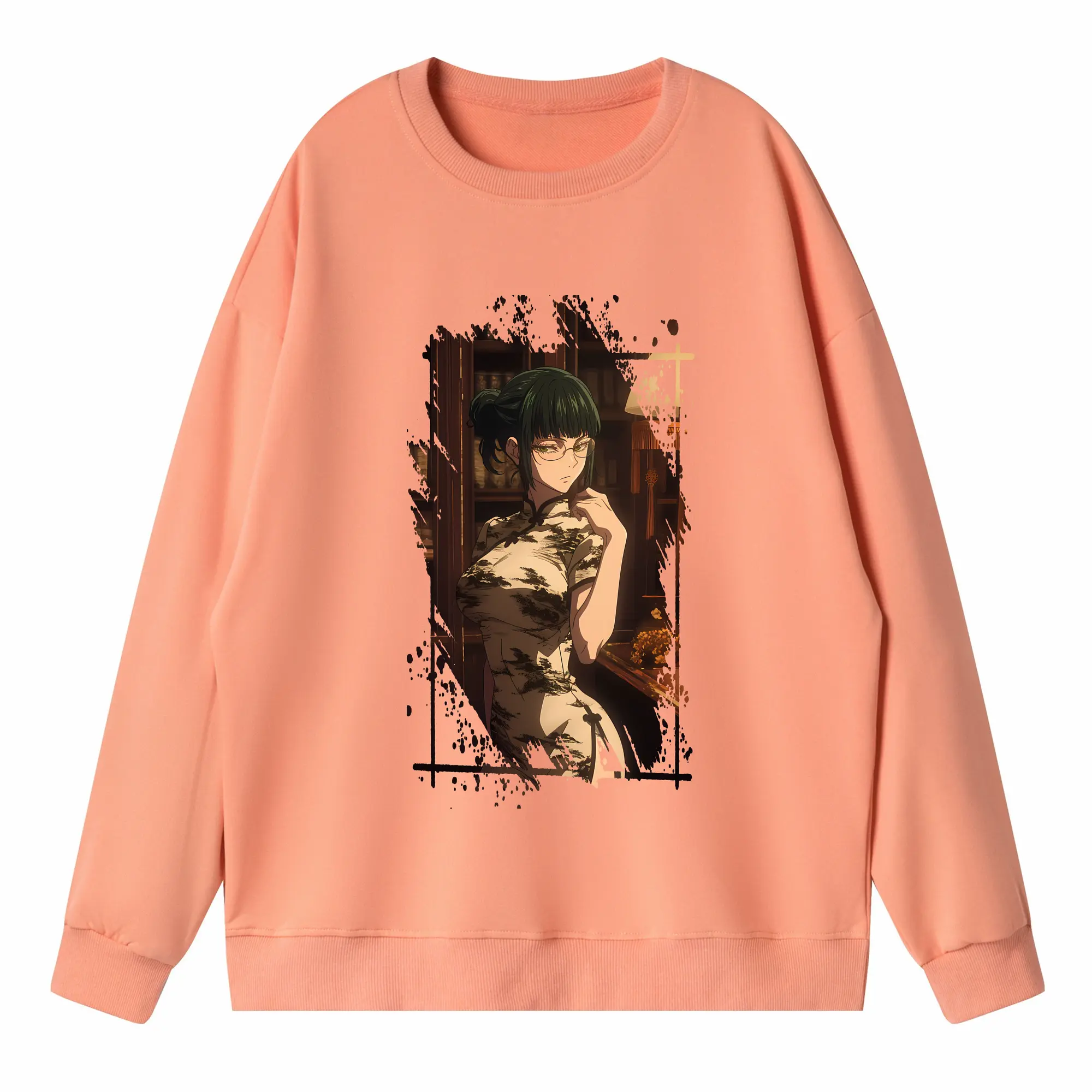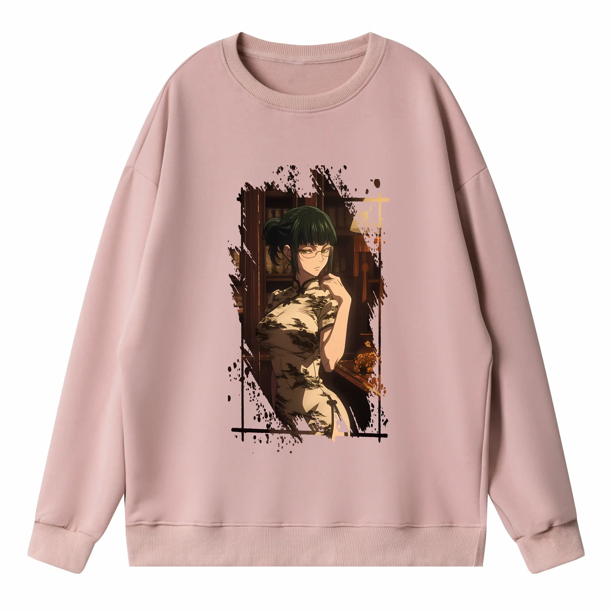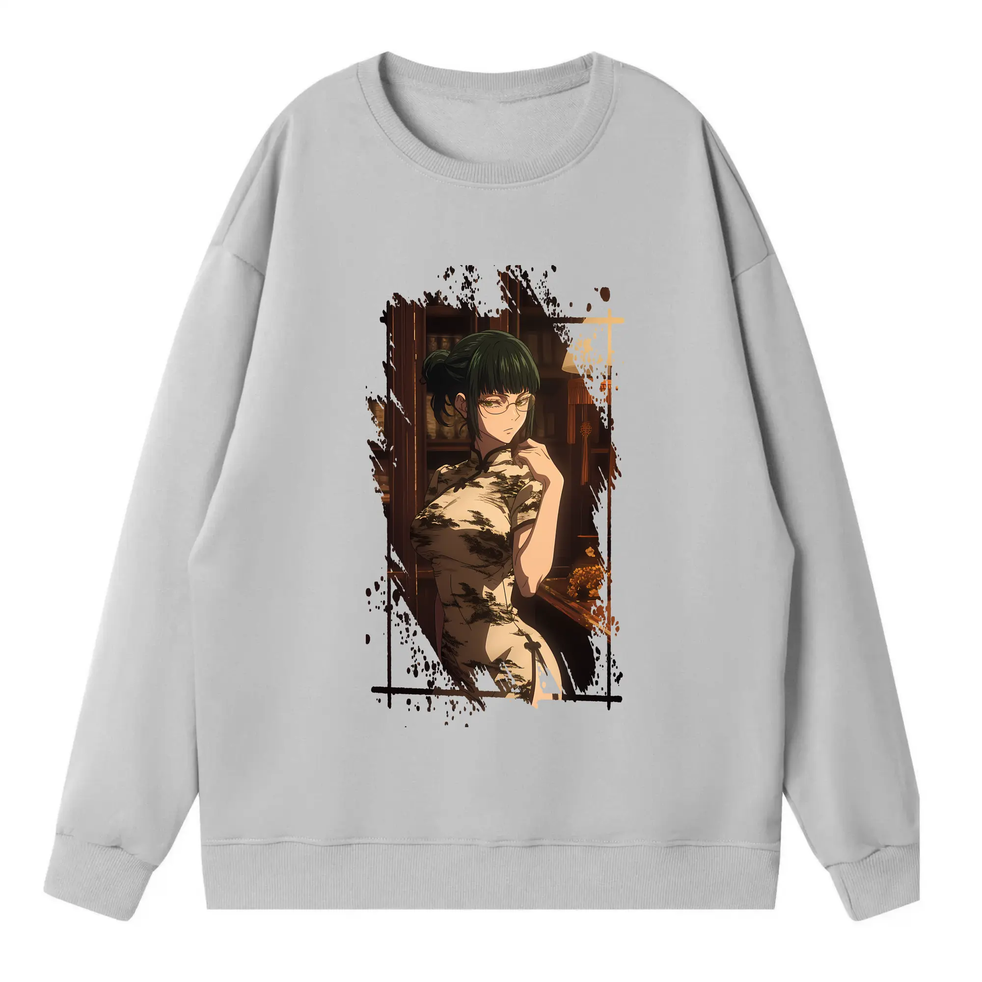 呪術廻戦 グッズ,禪院 真希 - 高品質 クルーネック スウェット ・ コットン59% ポリエステル41% ・ ユニセックス 長袖 トレーナー ・ カジュアル デイリー スポーツ 散歩用