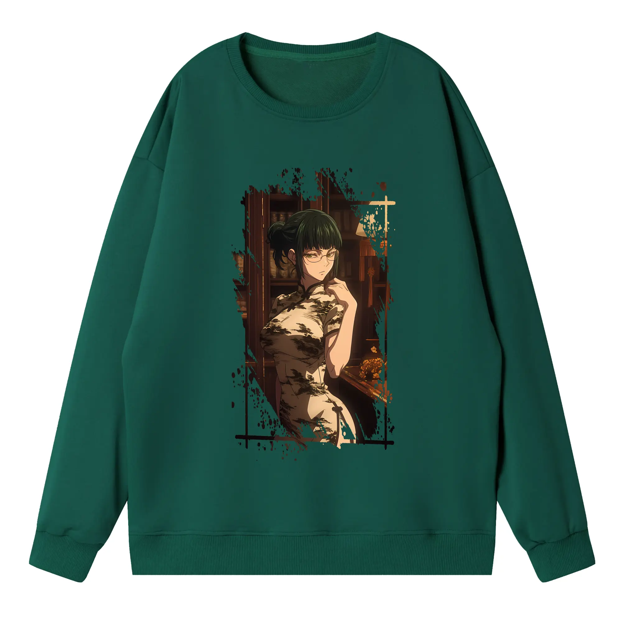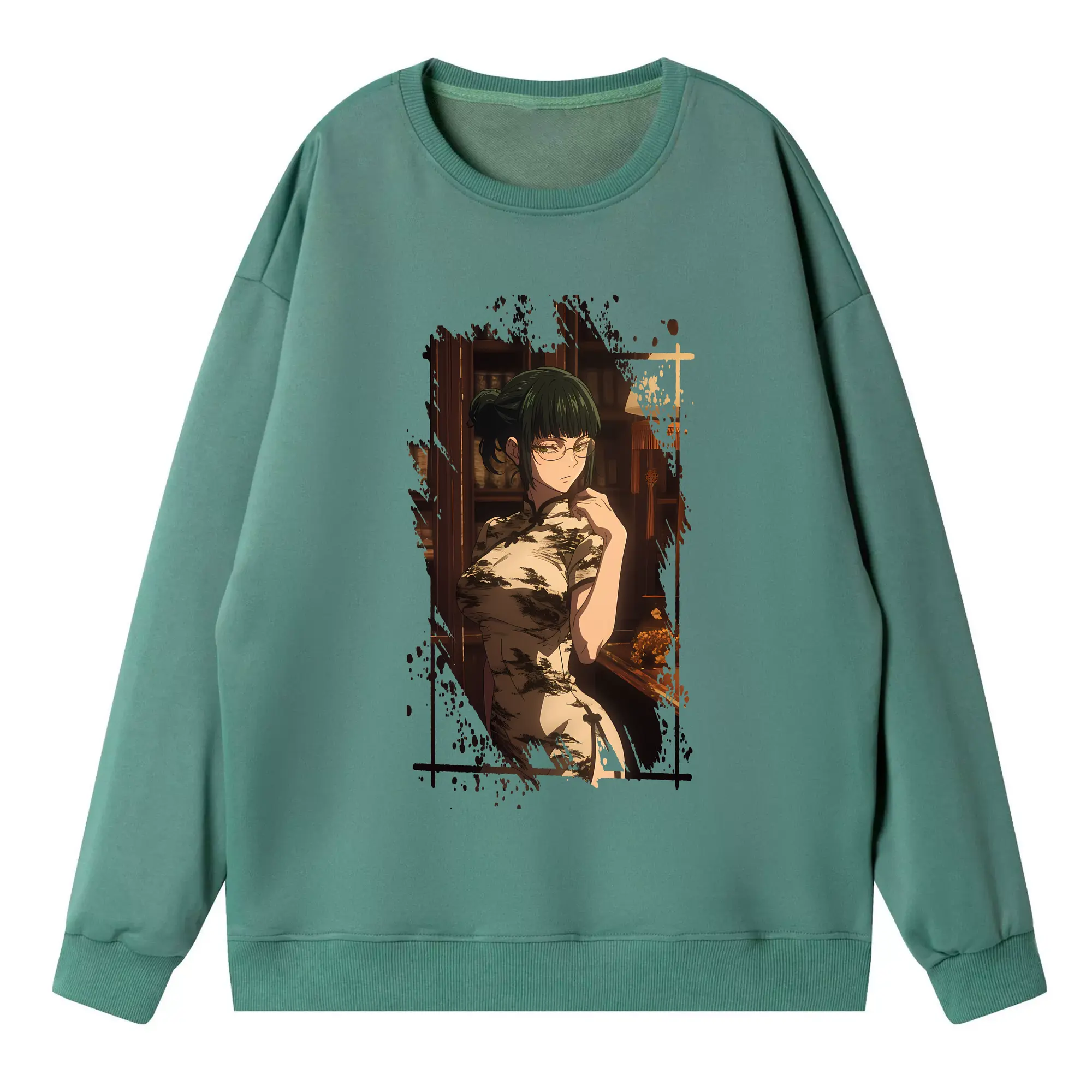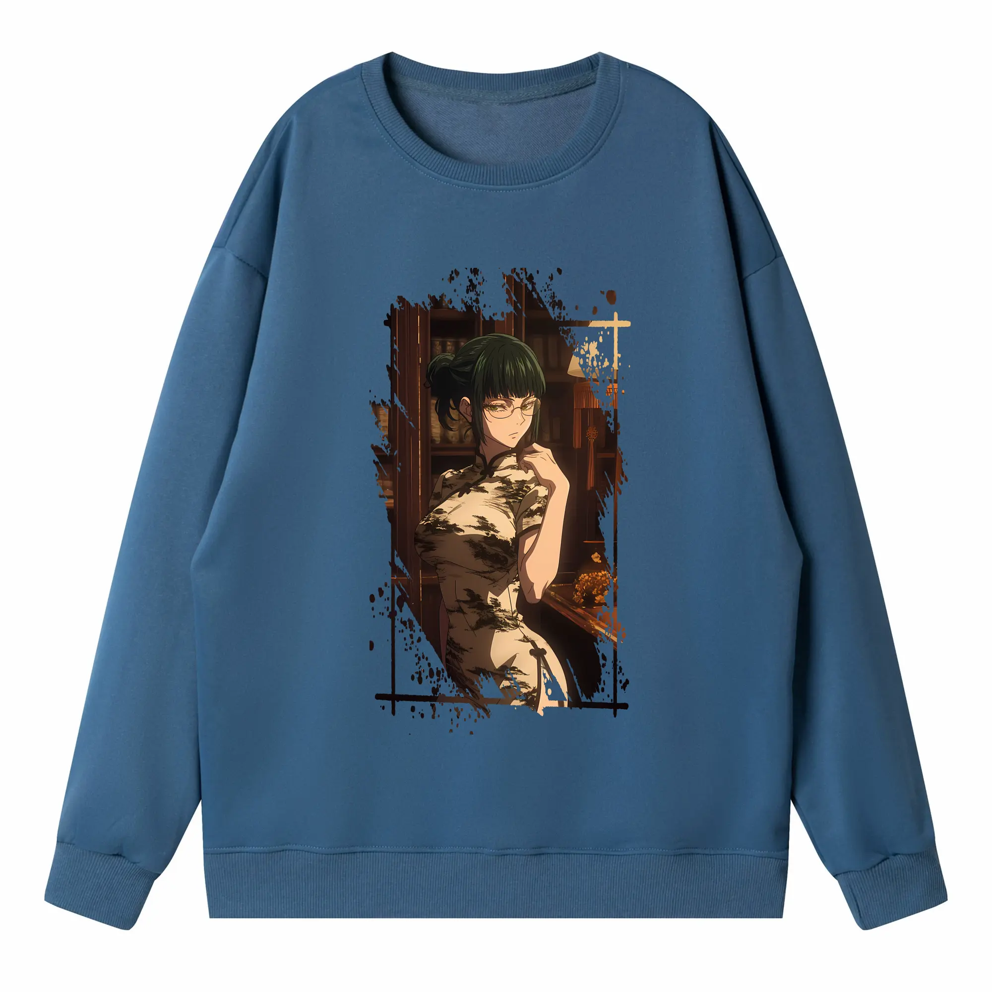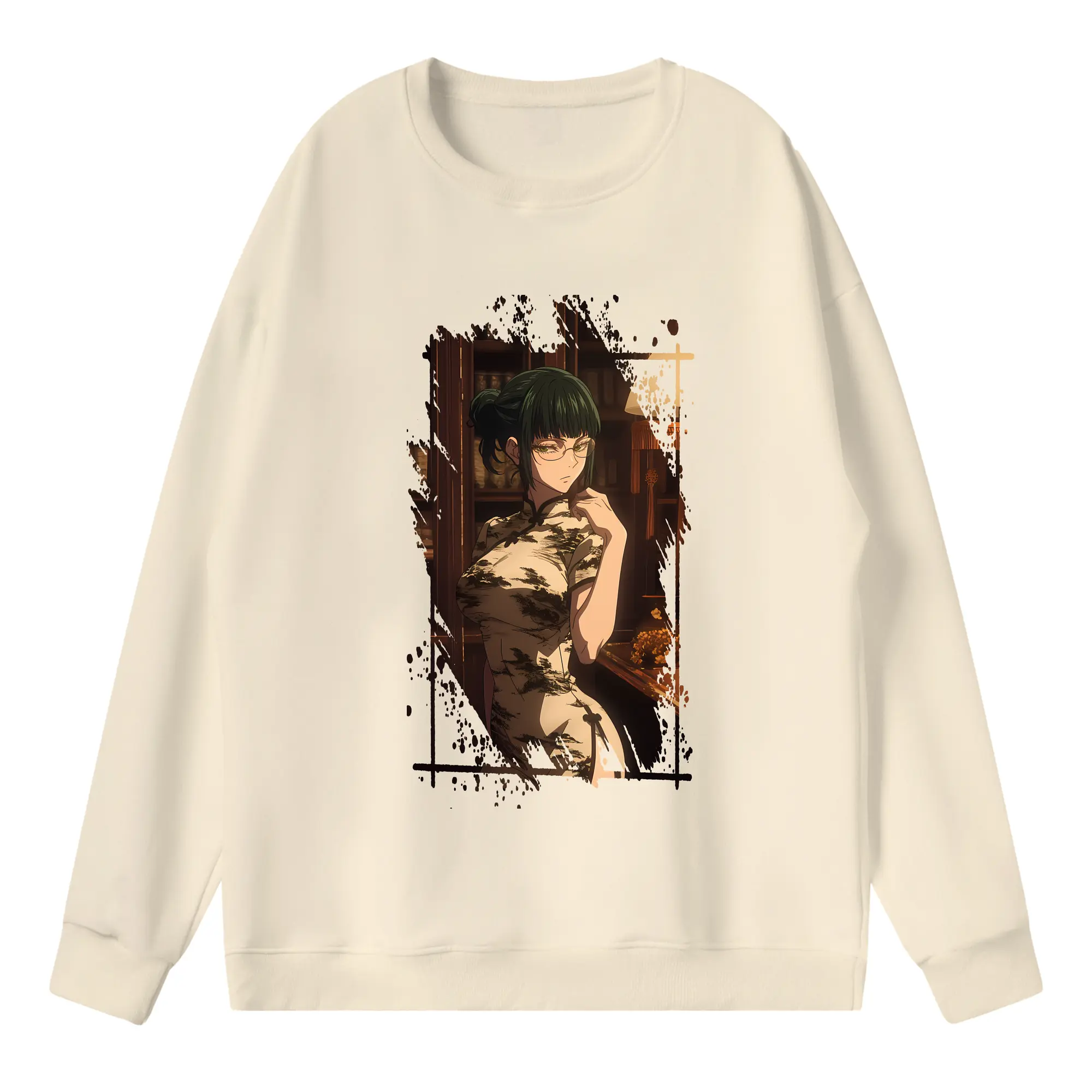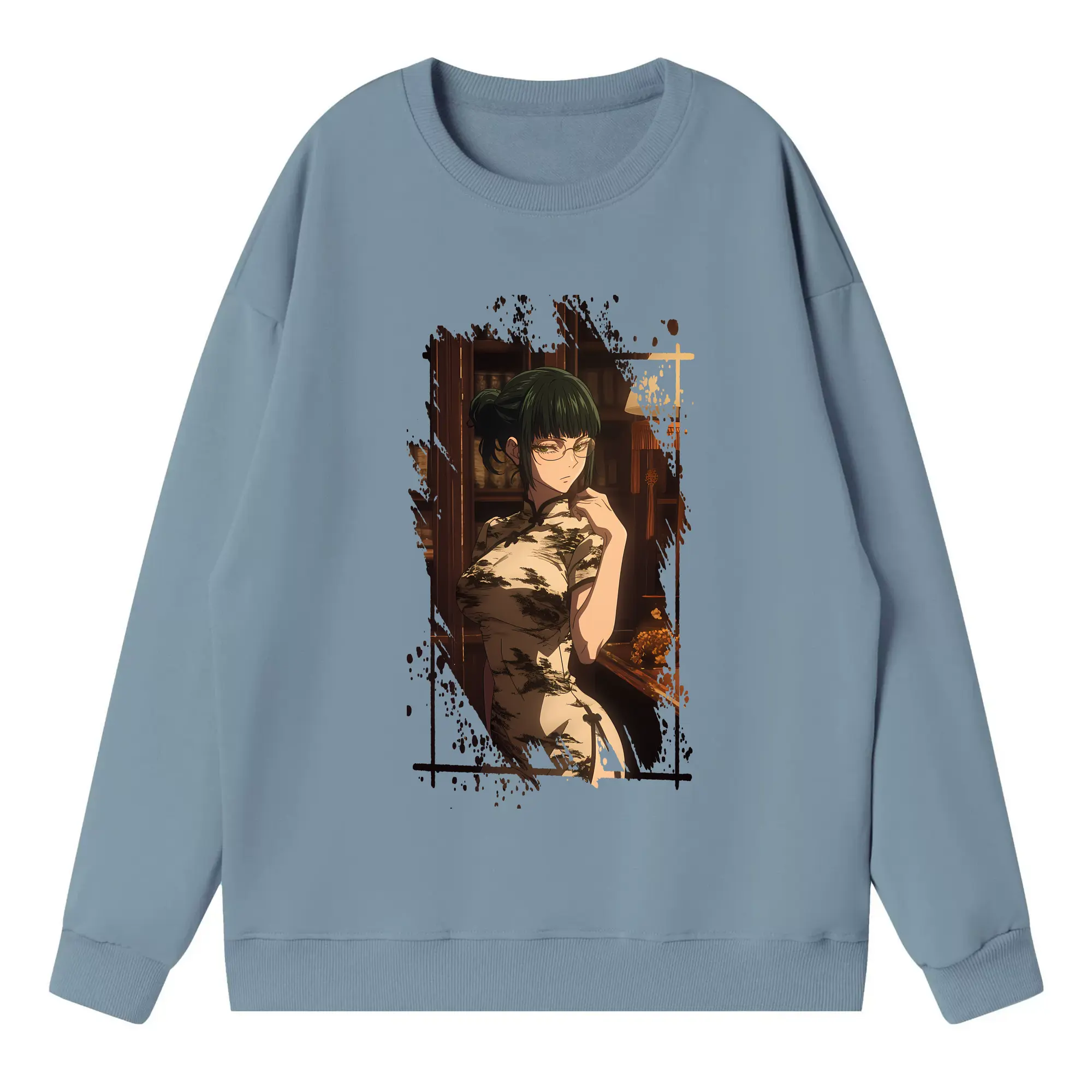 呪術廻戦 グッズ,禪院 真希 - 高品質 クルーネック スウェット ・ コットン59% ポリエステル41% ・ ユニセックス 長袖 トレーナー ・ カジュアル デイリー スポーツ 散歩用