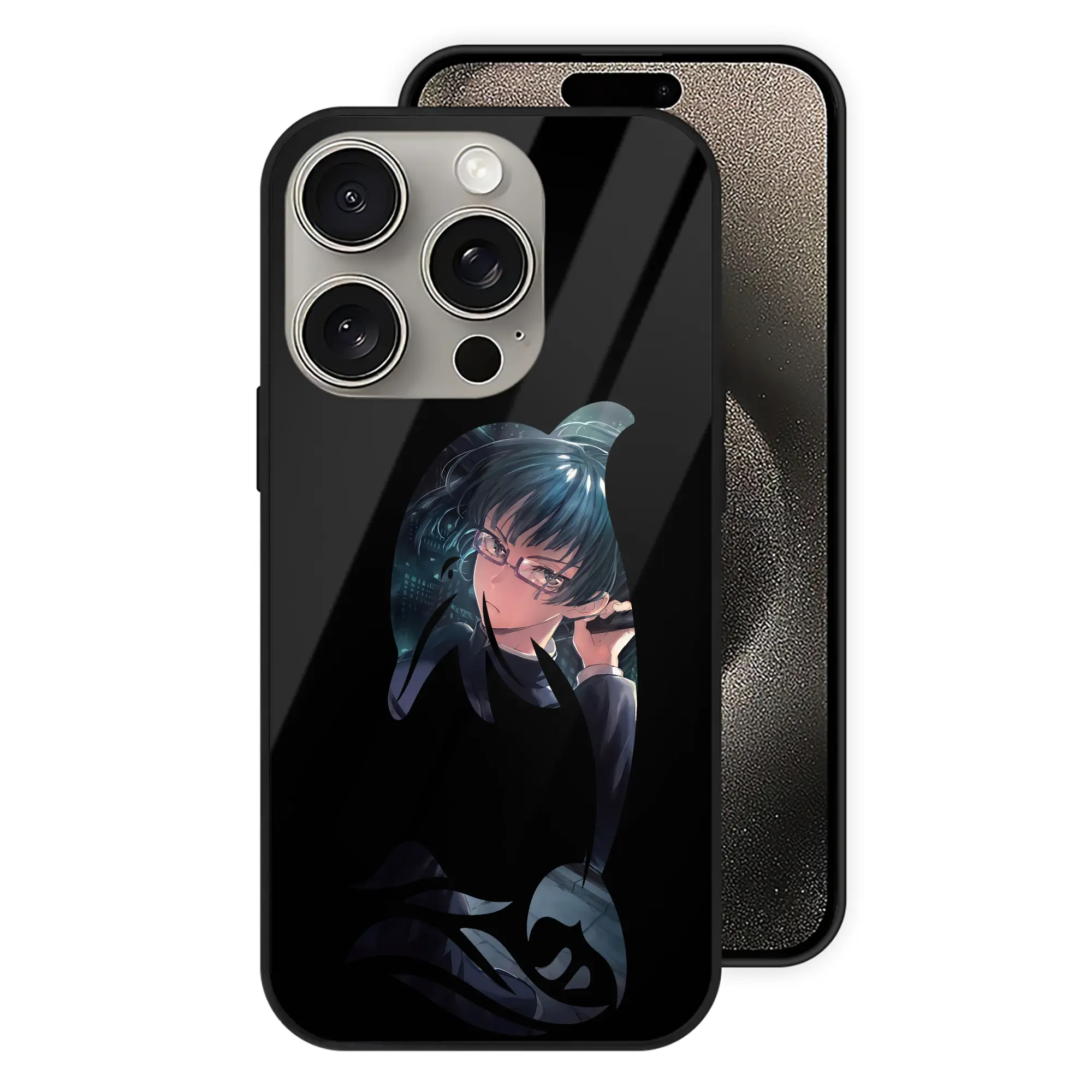 呪術廻戦 グッズ,禪院 真希 - IPhone15Pro対応 ・ スマホケース ・ 背面ガラス ・ TPU+強化ガラス ・ 耐衝撃 ・ 黄変防止 ・ ワイヤレス充電対応 ・ 3D立体ボタン