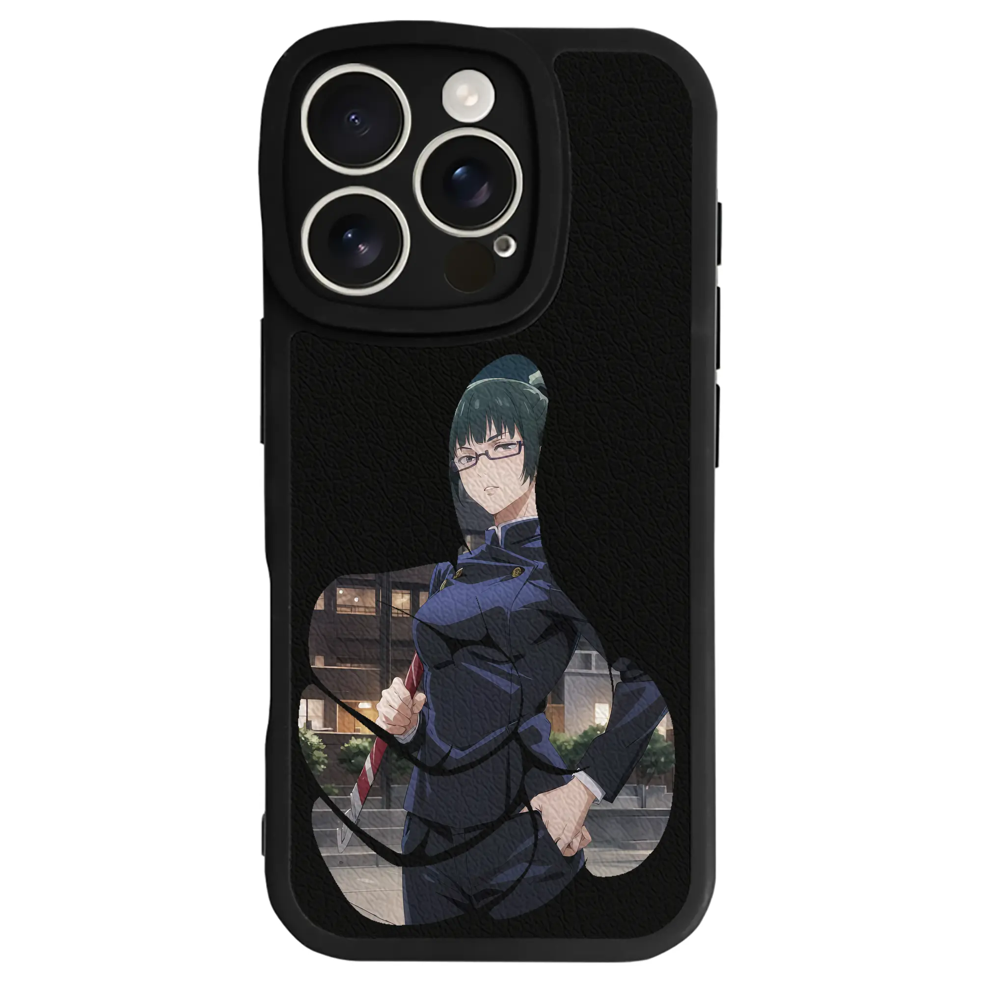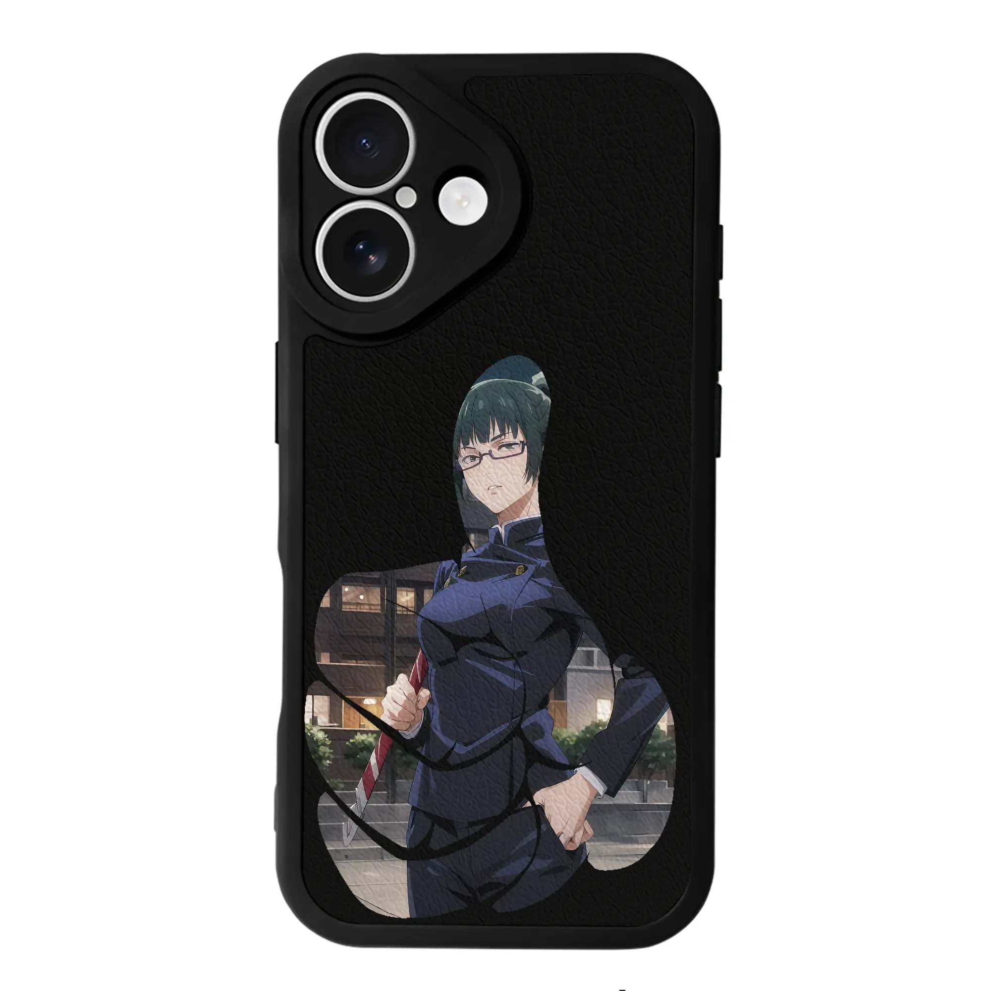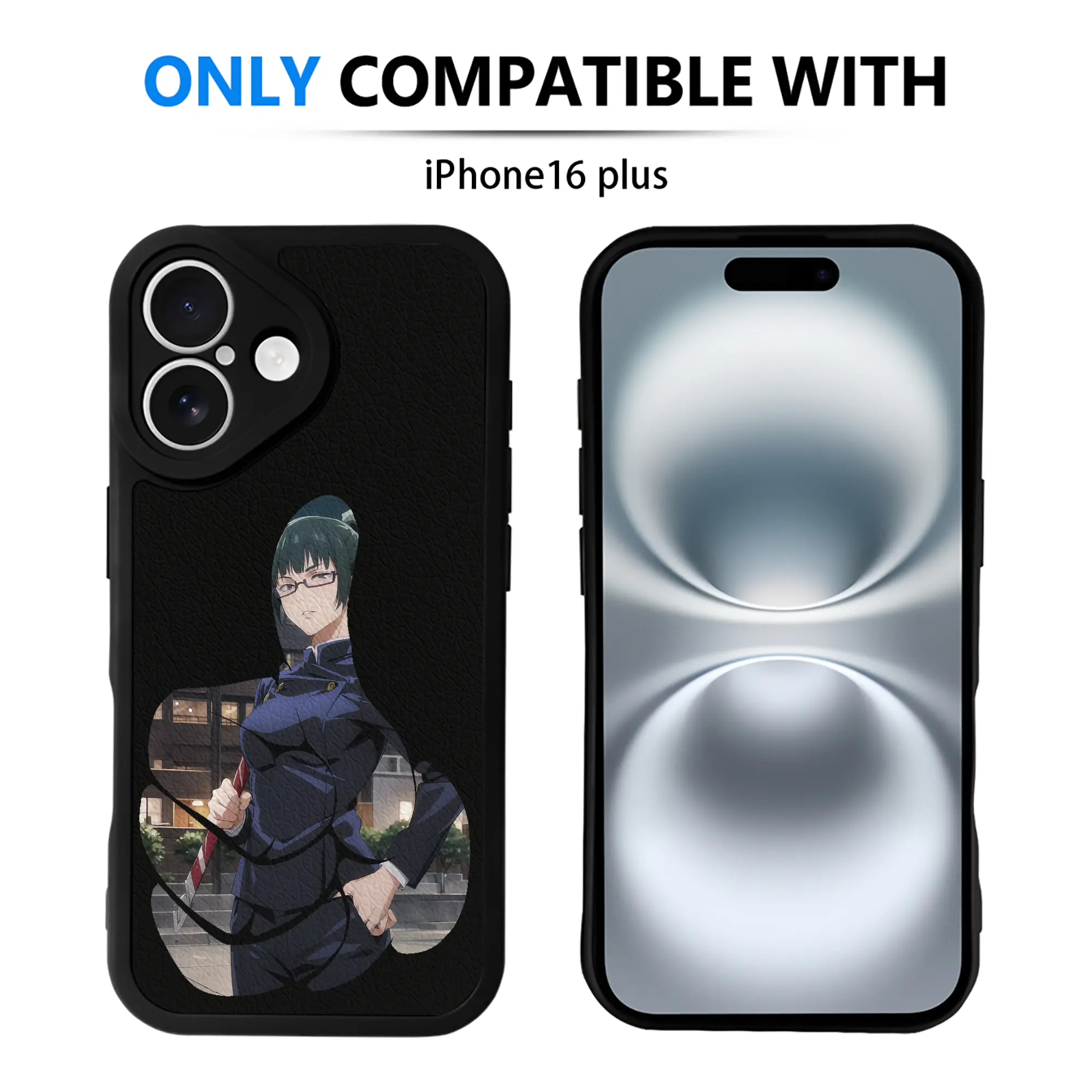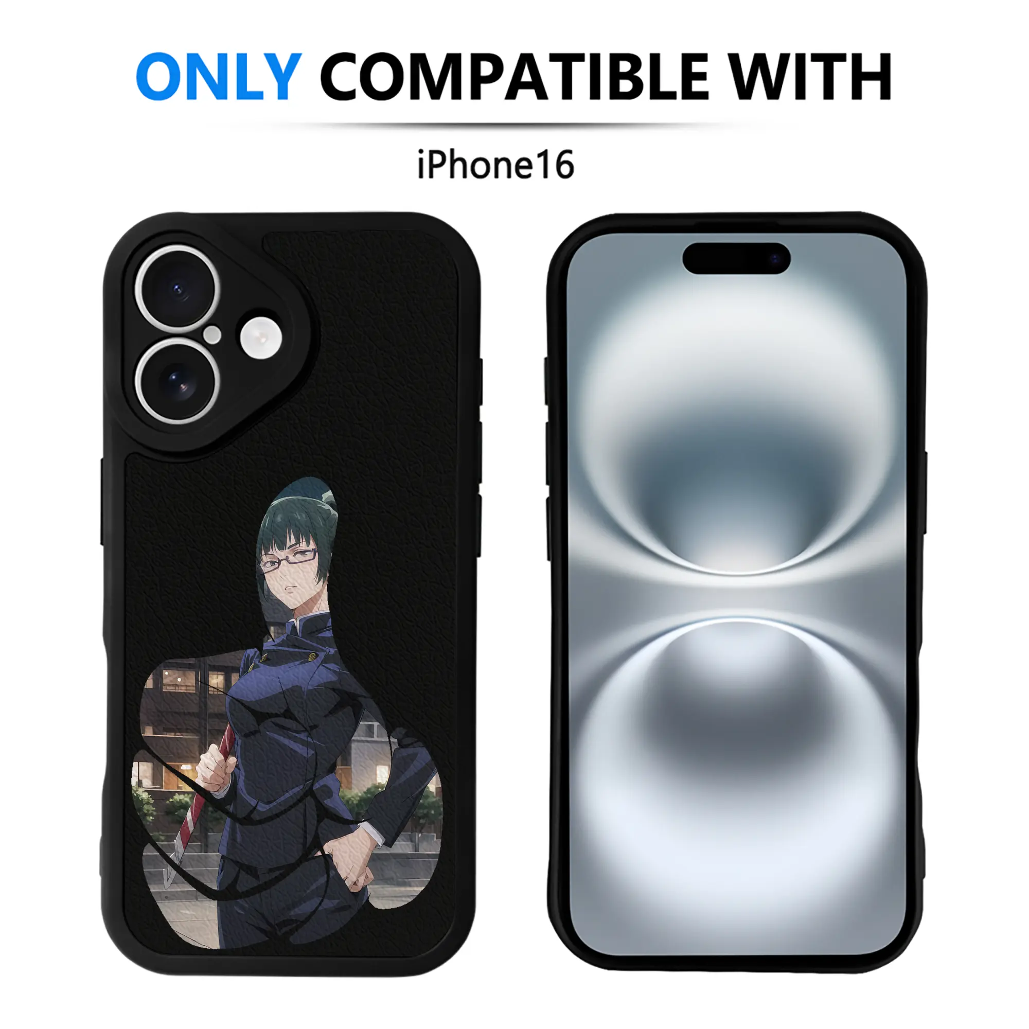 呪術廻戦 グッズ,禪院 真希 - IPhone 16シリーズ対応 ・ シリコンスマホケース ・ レザー調 ・ 高精度フィット ・ 耐衝撃 ・ ワイヤレス充電対応 ・ 精密カット