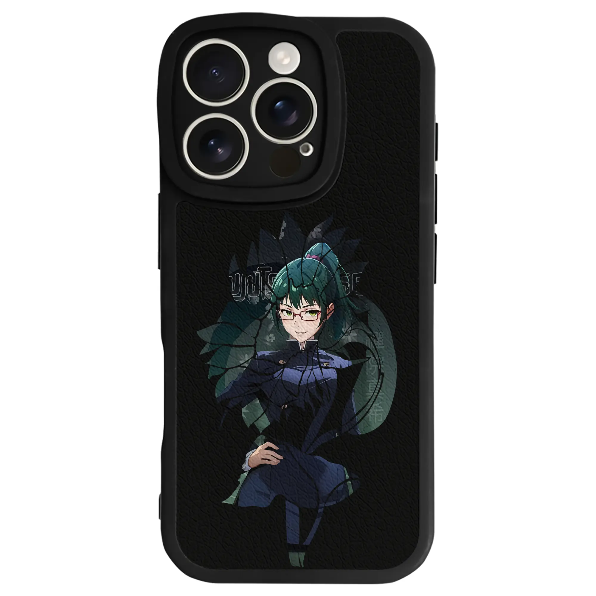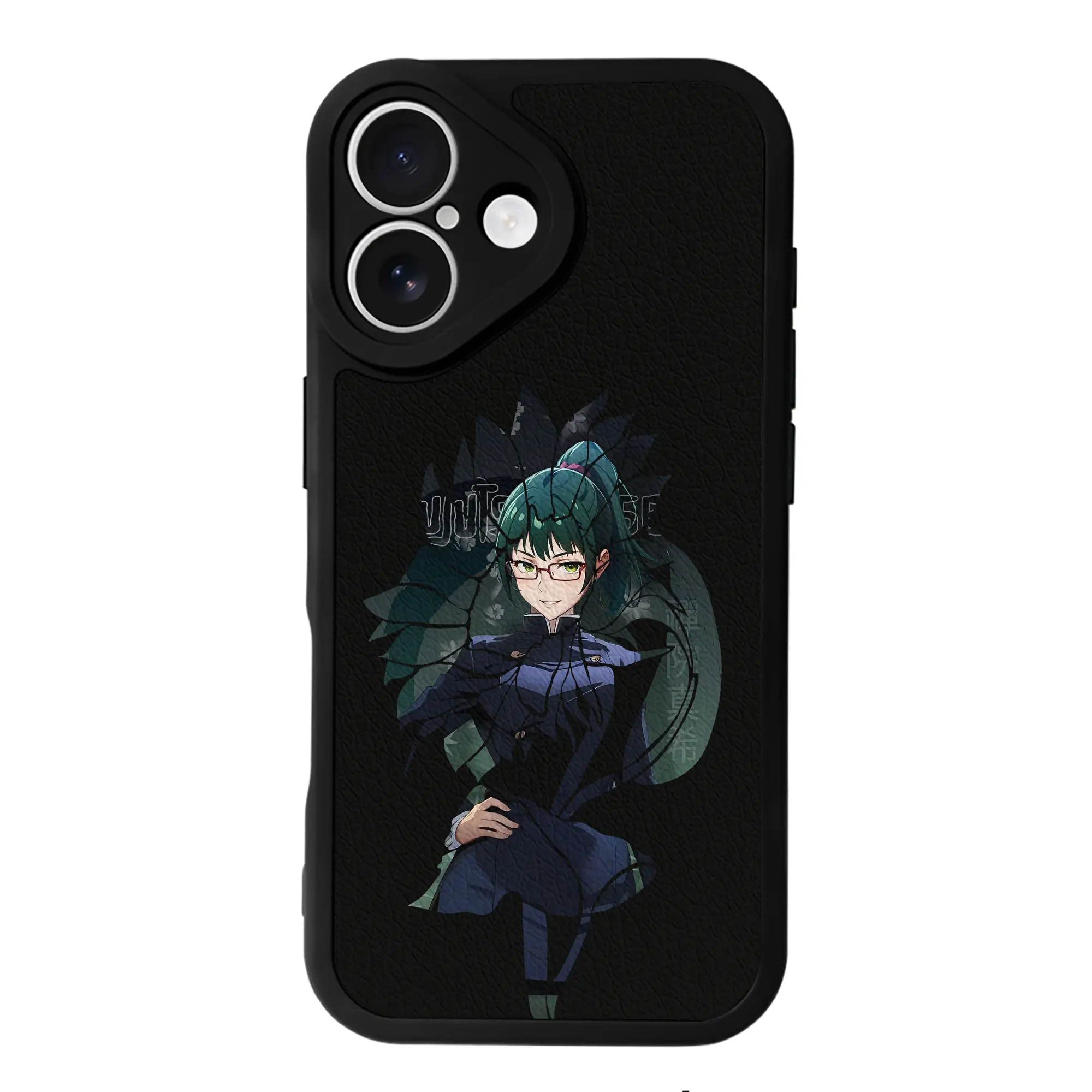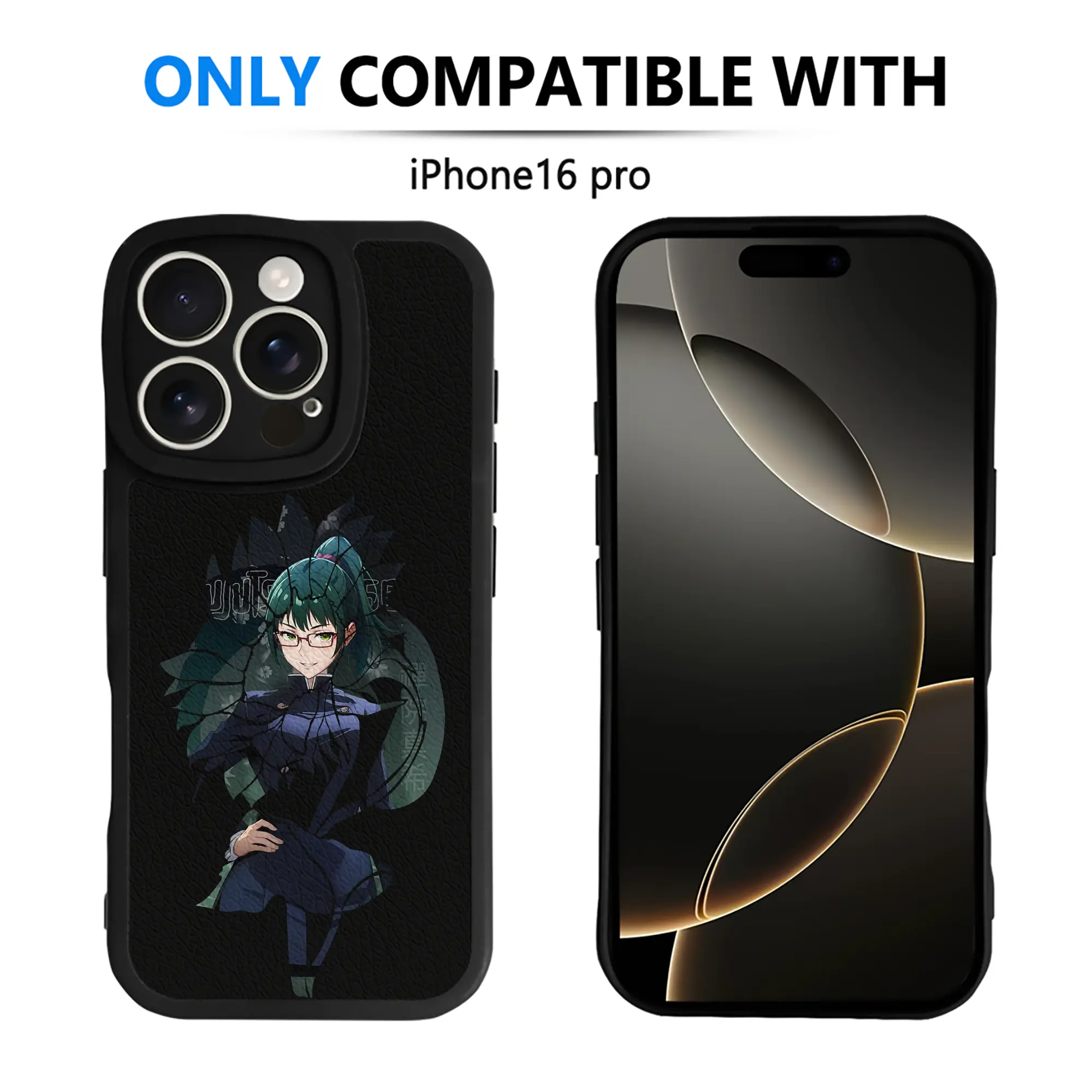 呪術廻戦 グッズ,禪院 真希 - IPhone 16シリーズ対応 ・ シリコンスマホケース ・ レザー調 ・ 高精度フィット ・ 耐衝撃 ・ ワイヤレス充電対応 ・ 精密カット