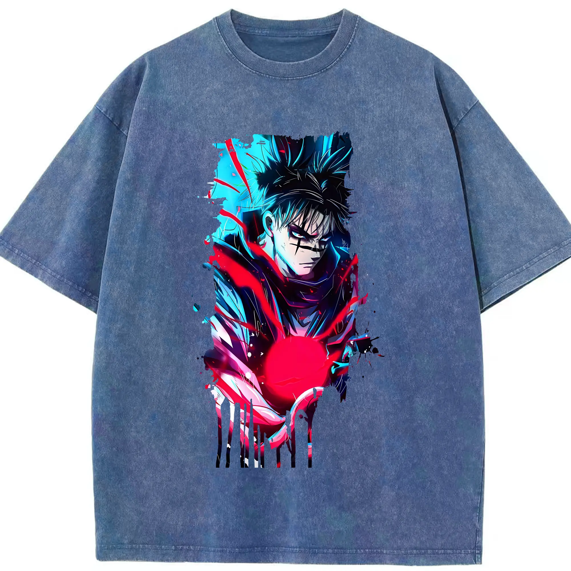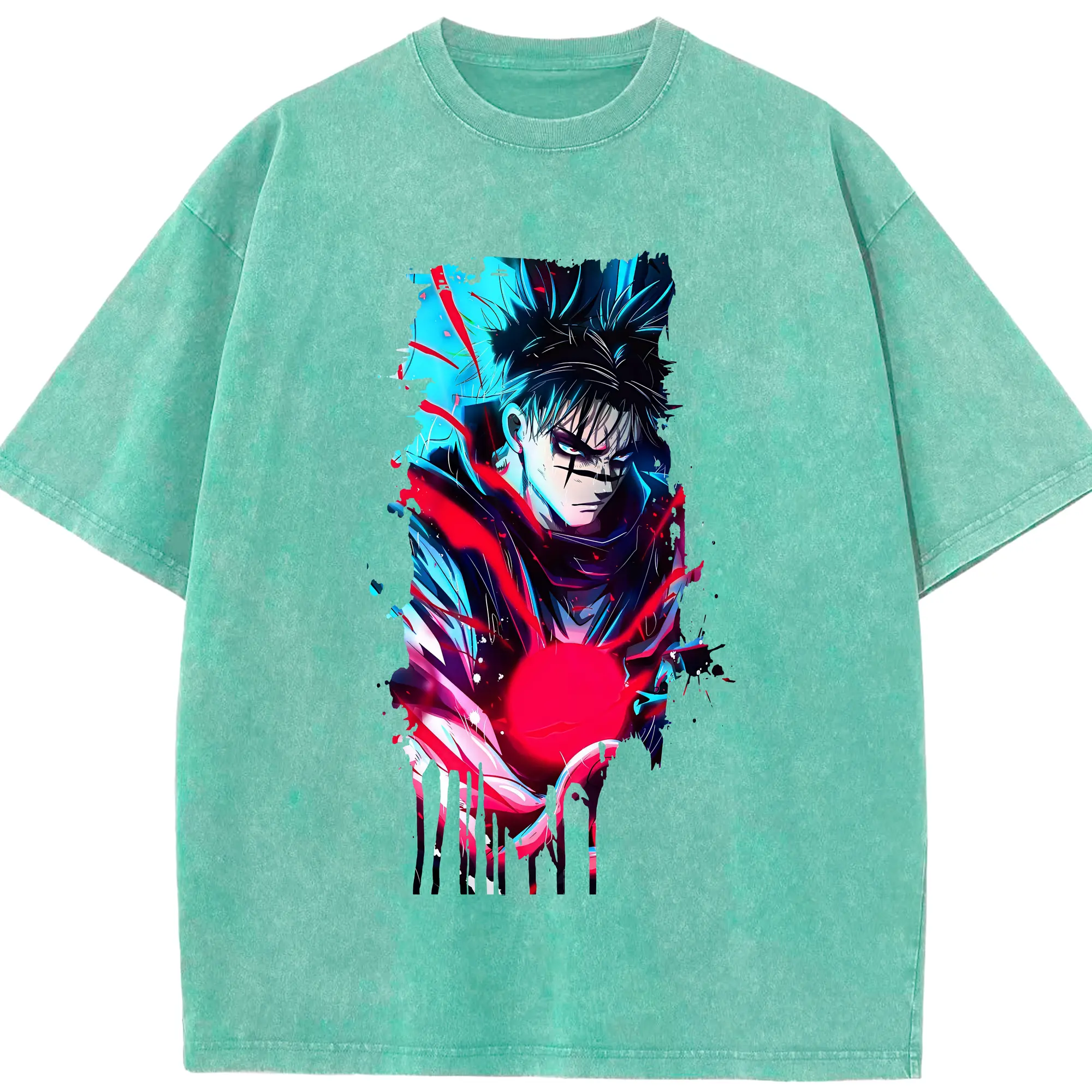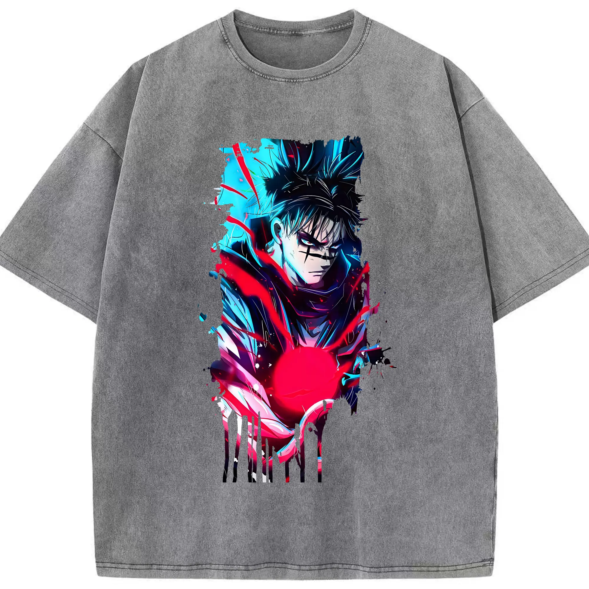 呪術廻戦 グッズ,両面宿儺 - 綿100% ヴィンテージ風 半袖Tシャツ ・ フロントプリント ・ 柔らか肌触り ・ 通気性 快適 ・ スポーツ カジュアル 外出用