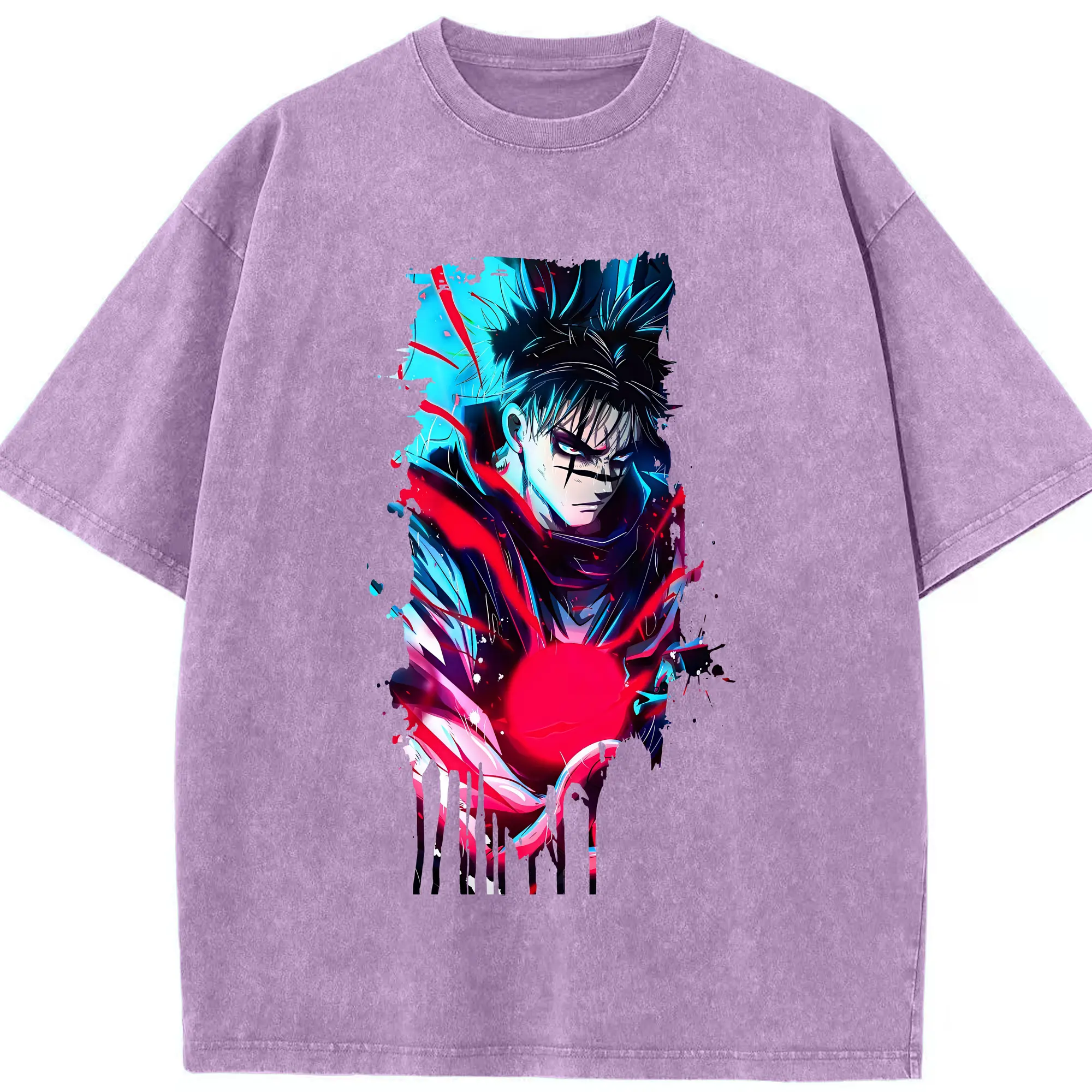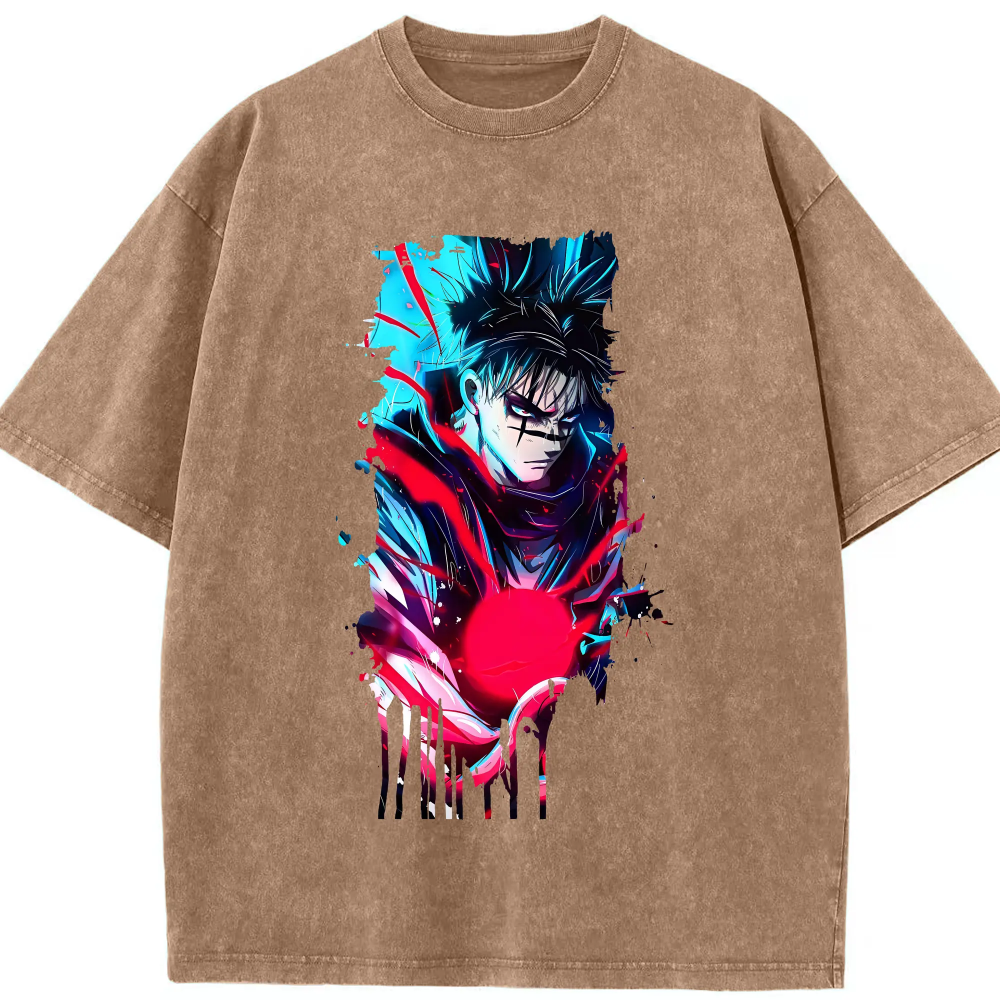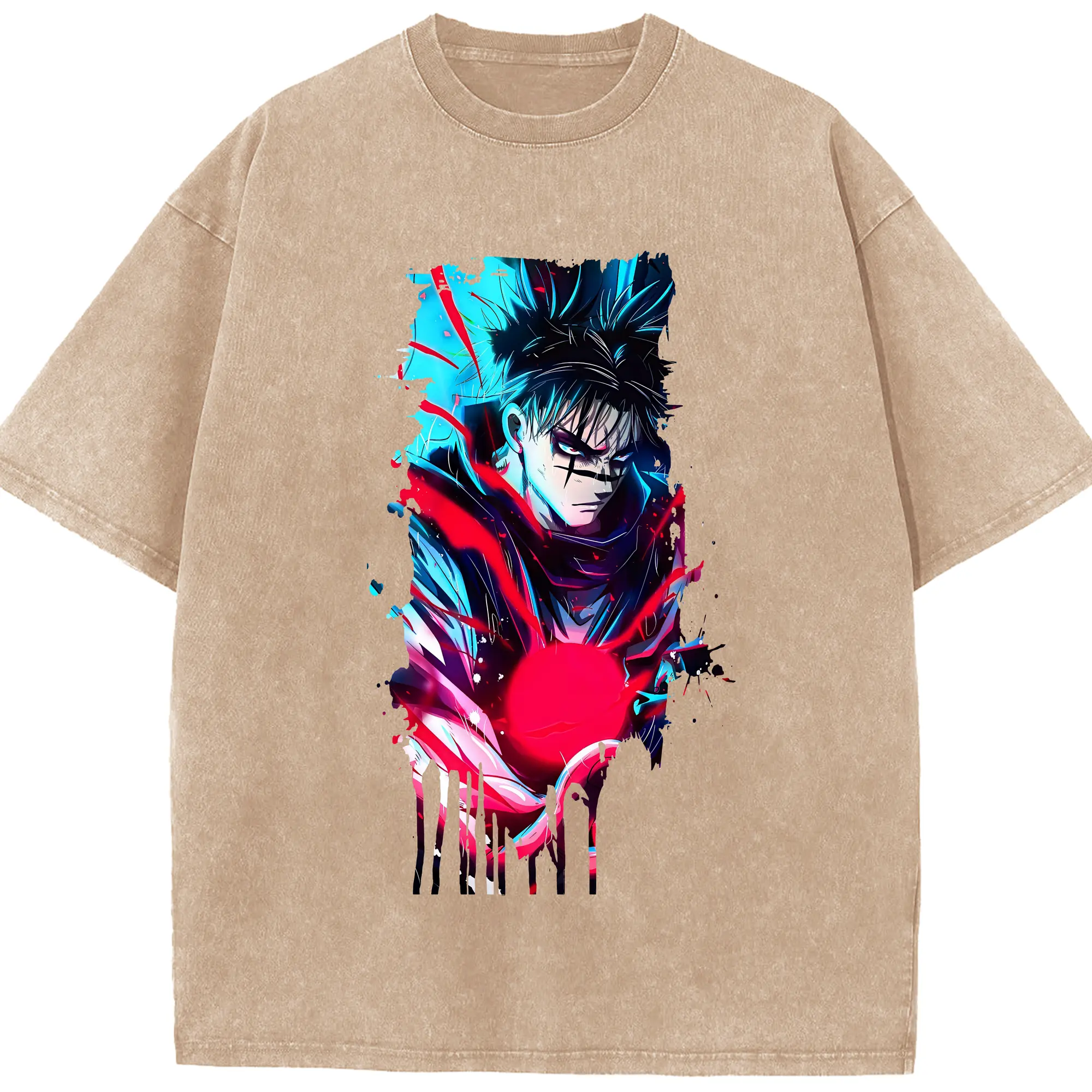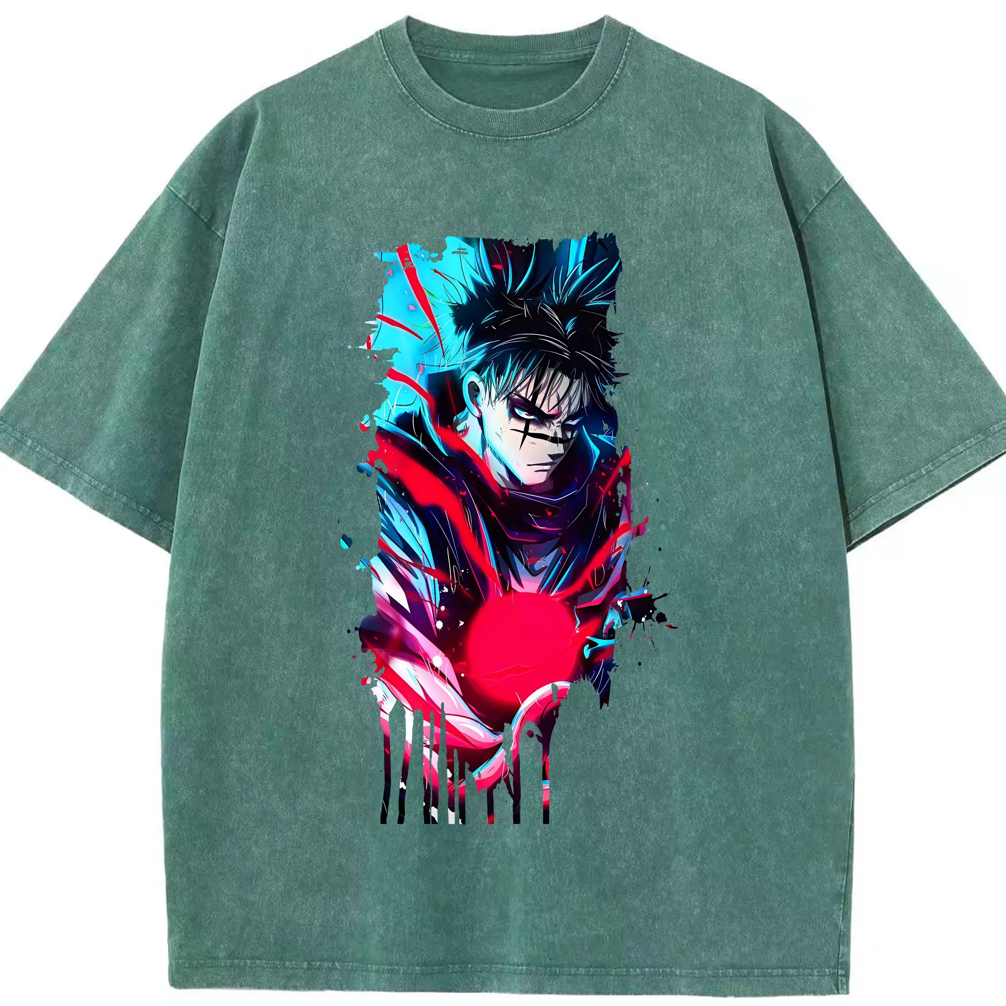 呪術廻戦 グッズ,両面宿儺 - 綿100% ヴィンテージ風 半袖Tシャツ ・ フロントプリント ・ 柔らか肌触り ・ 通気性 快適 ・ スポーツ カジュアル 外出用