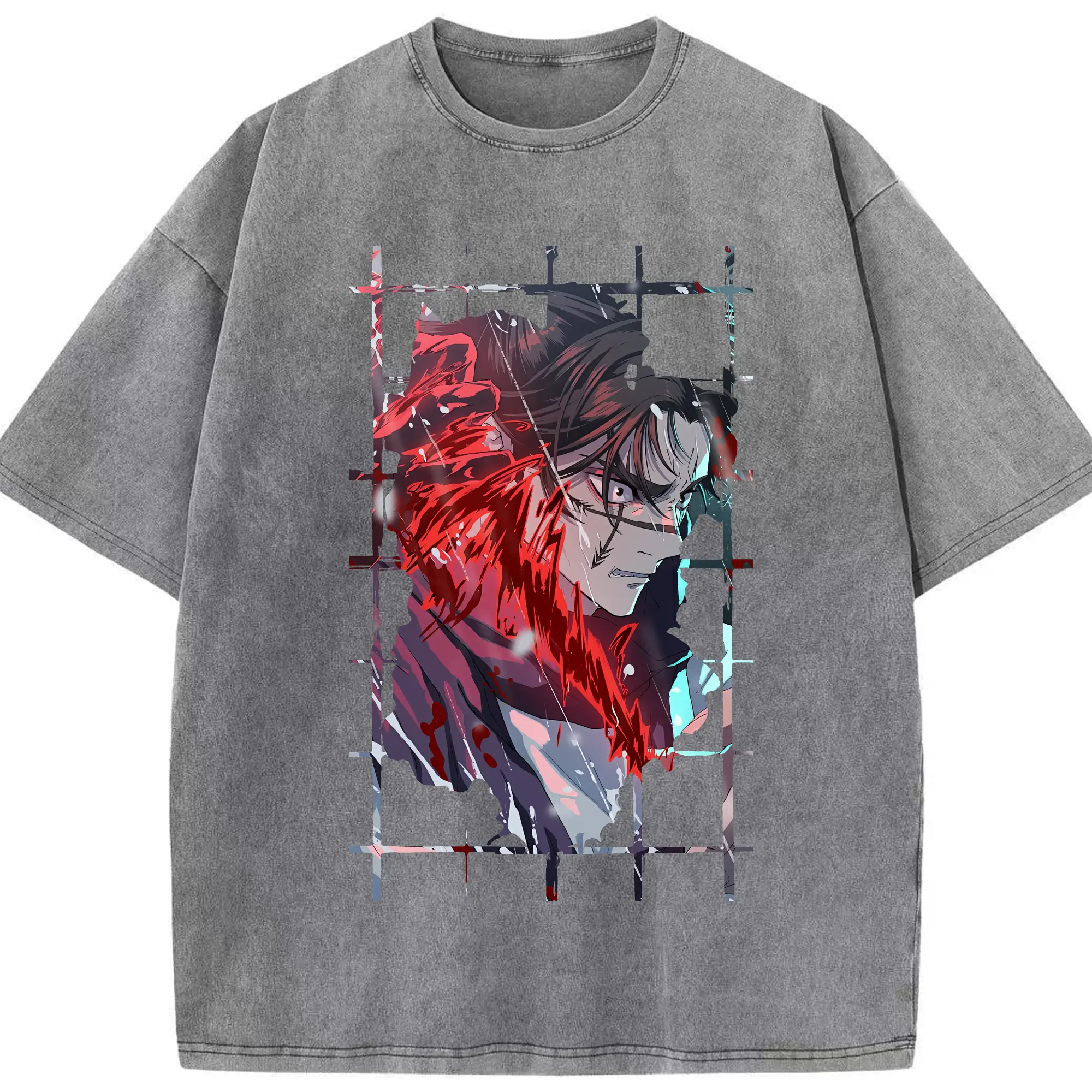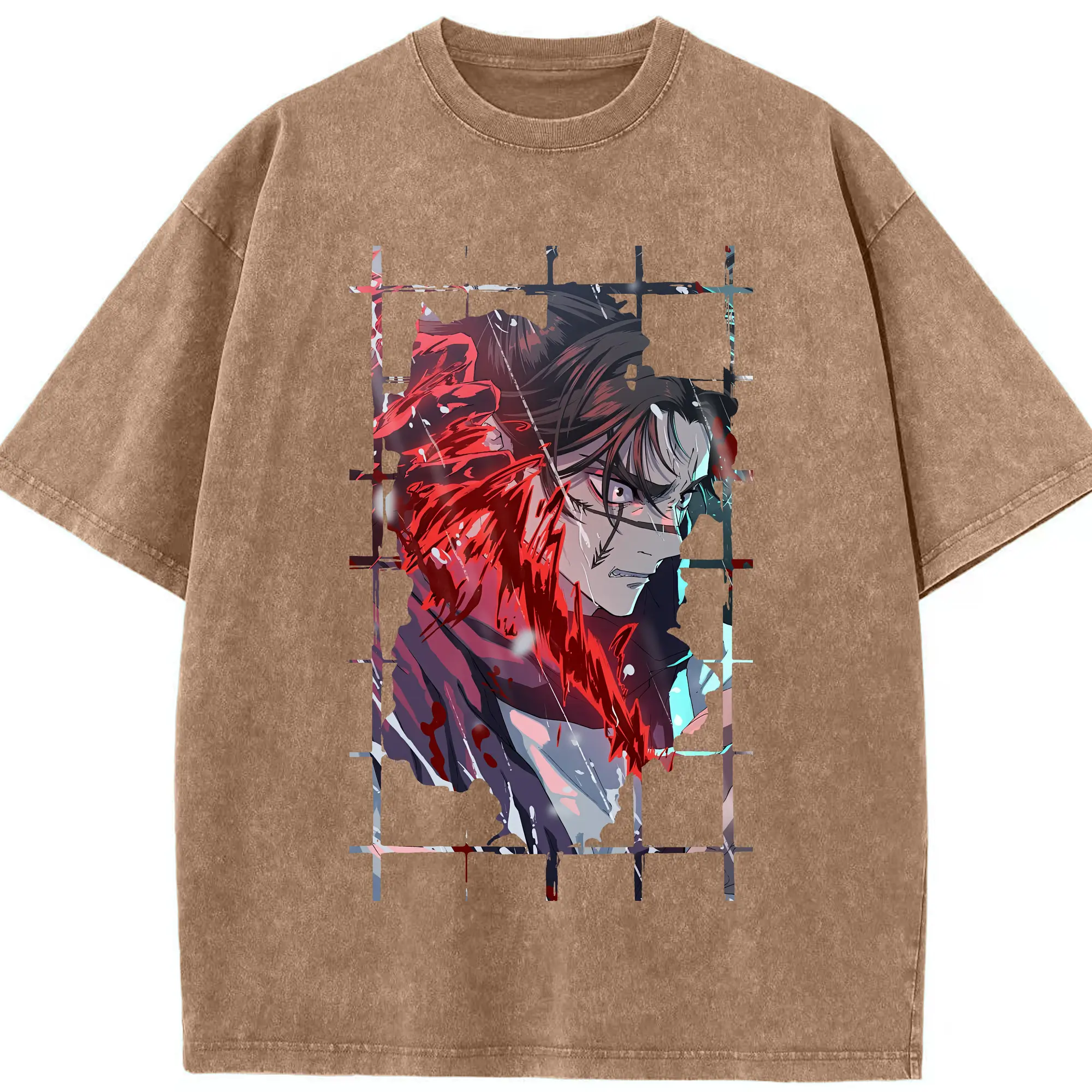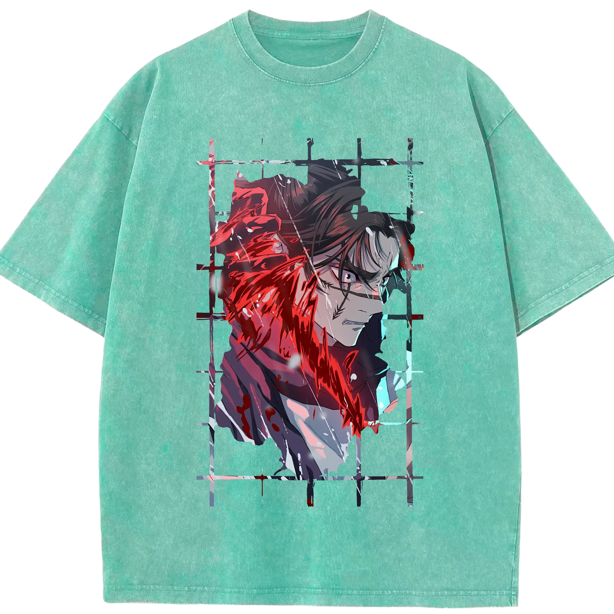 鬼滅の刃 グッズ,不死川 実弥 - 綿100% ヴィンテージ風 半袖Tシャツ ・ フロントプリント ・ 柔らか肌触り ・ 通気性 快適 ・ スポーツ カジュアル 外出用