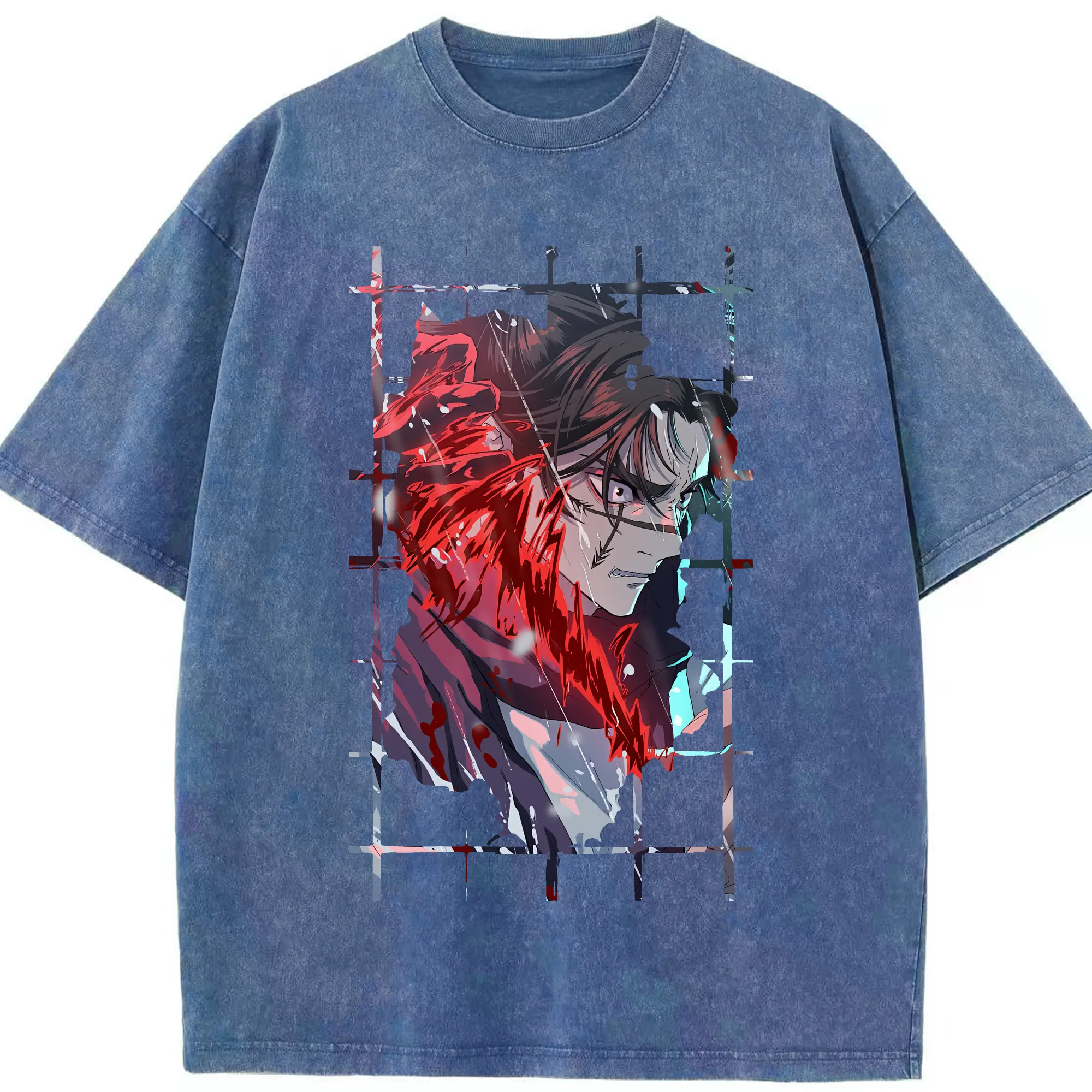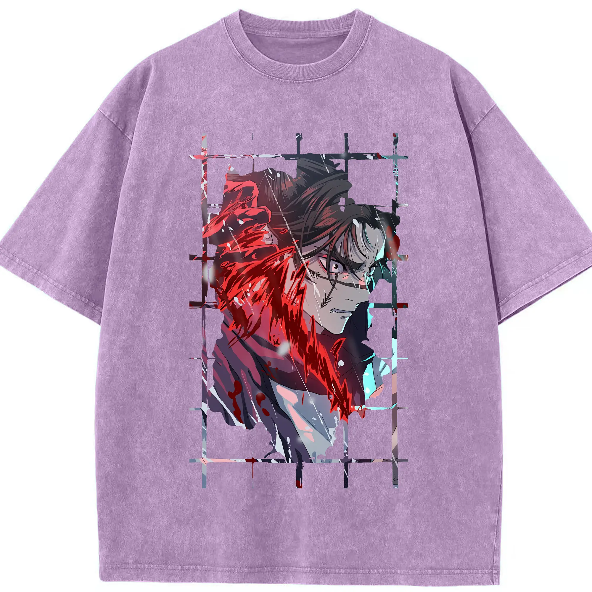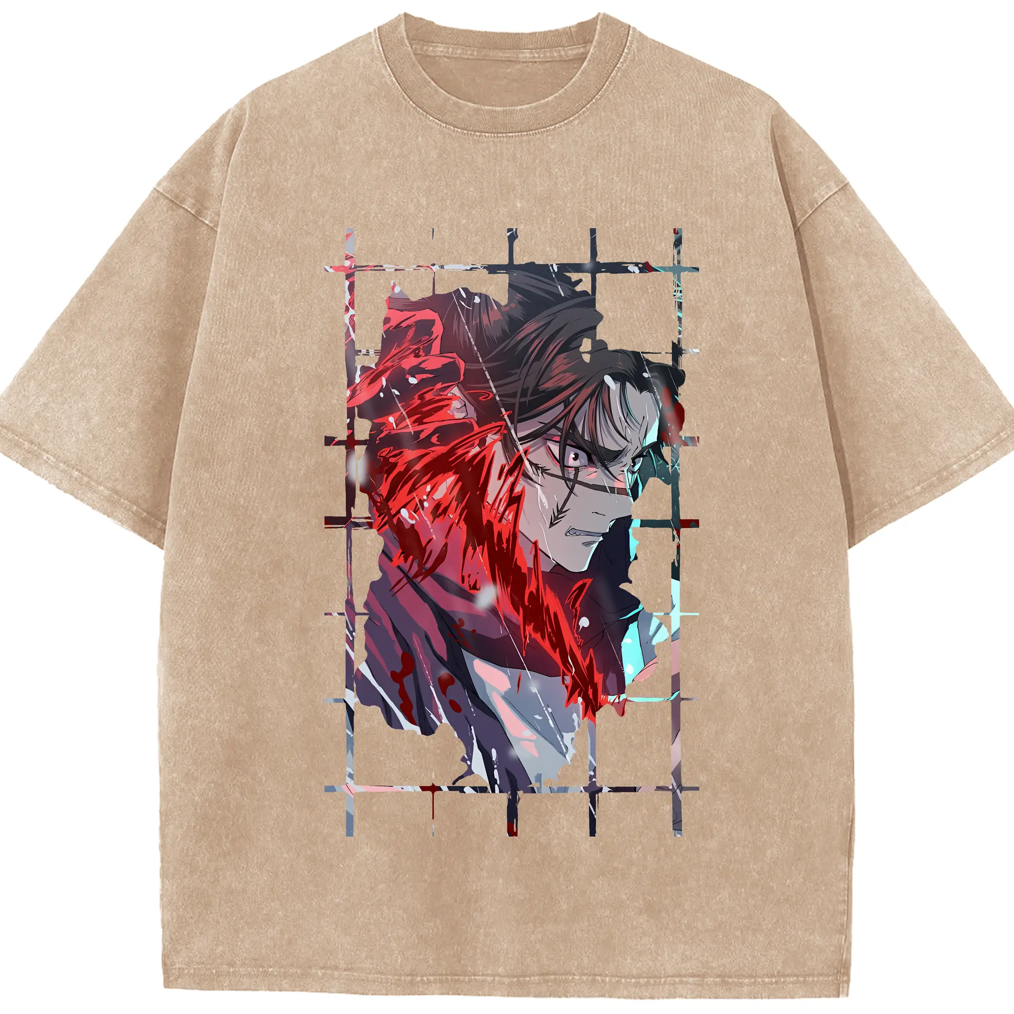 鬼滅の刃 グッズ,不死川 実弥 - 綿100% ヴィンテージ風 半袖Tシャツ ・ フロントプリント ・ 柔らか肌触り ・ 通気性 快適 ・ スポーツ カジュアル 外出用