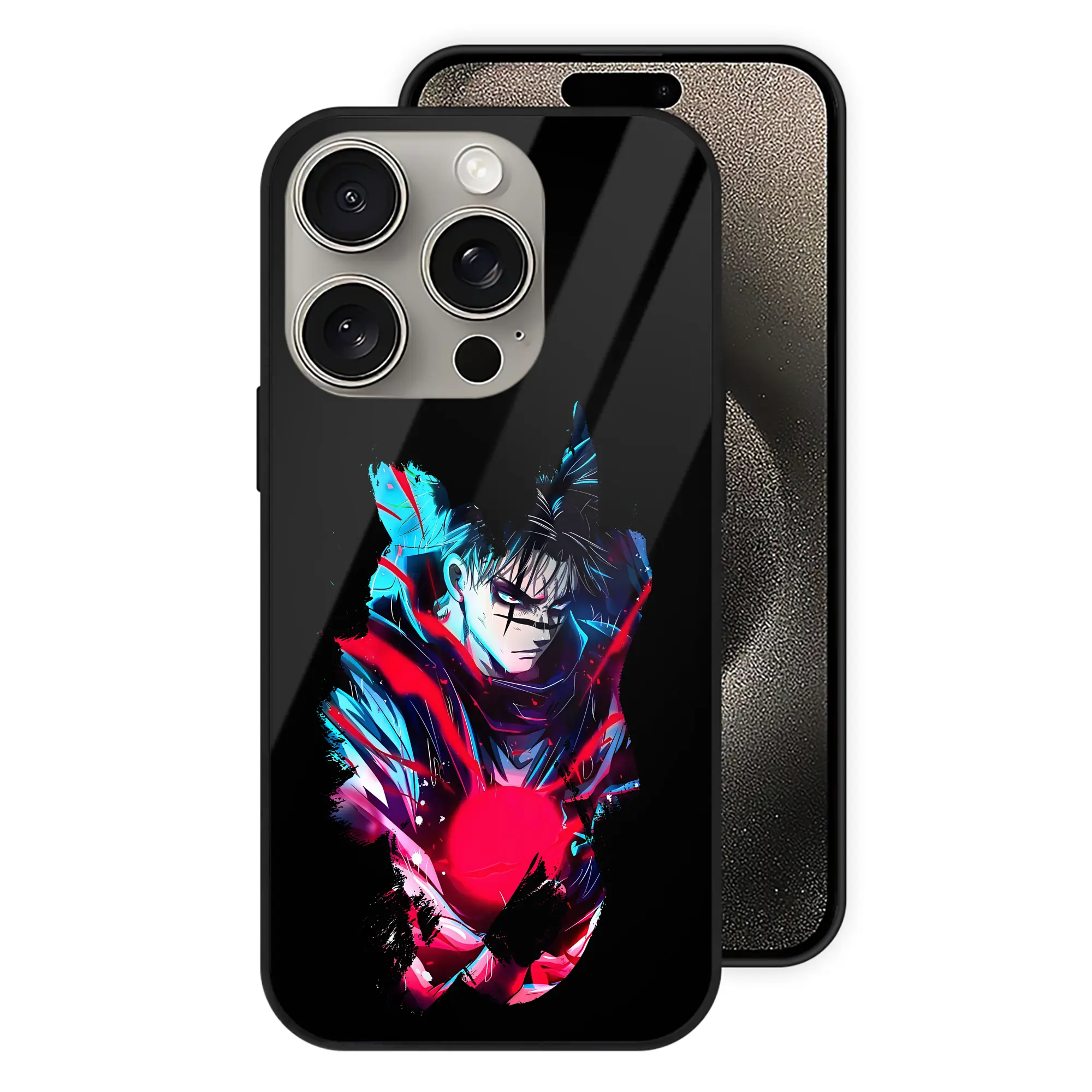 呪術廻戦 グッズ,脹相 - IPhone15Pro対応 ・ スマホケース ・ 背面ガラス ・ TPU+強化ガラス ・ 耐衝撃 ・ 黄変防止 ・ ワイヤレス充電対応 ・ 3D立体ボタン