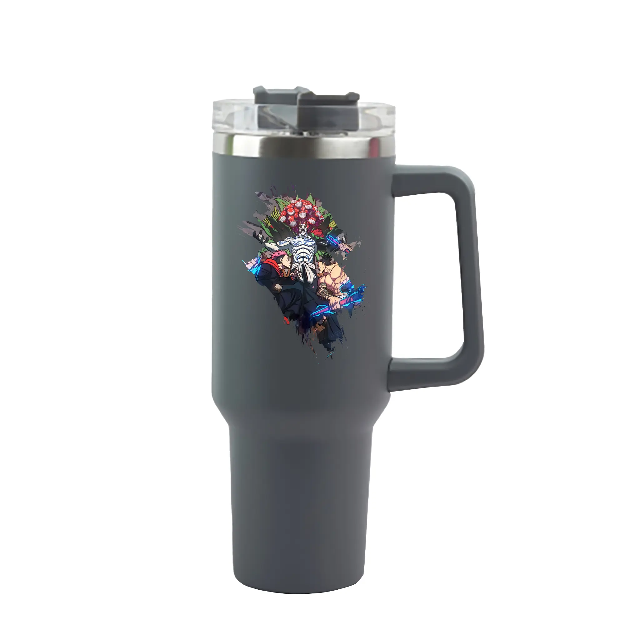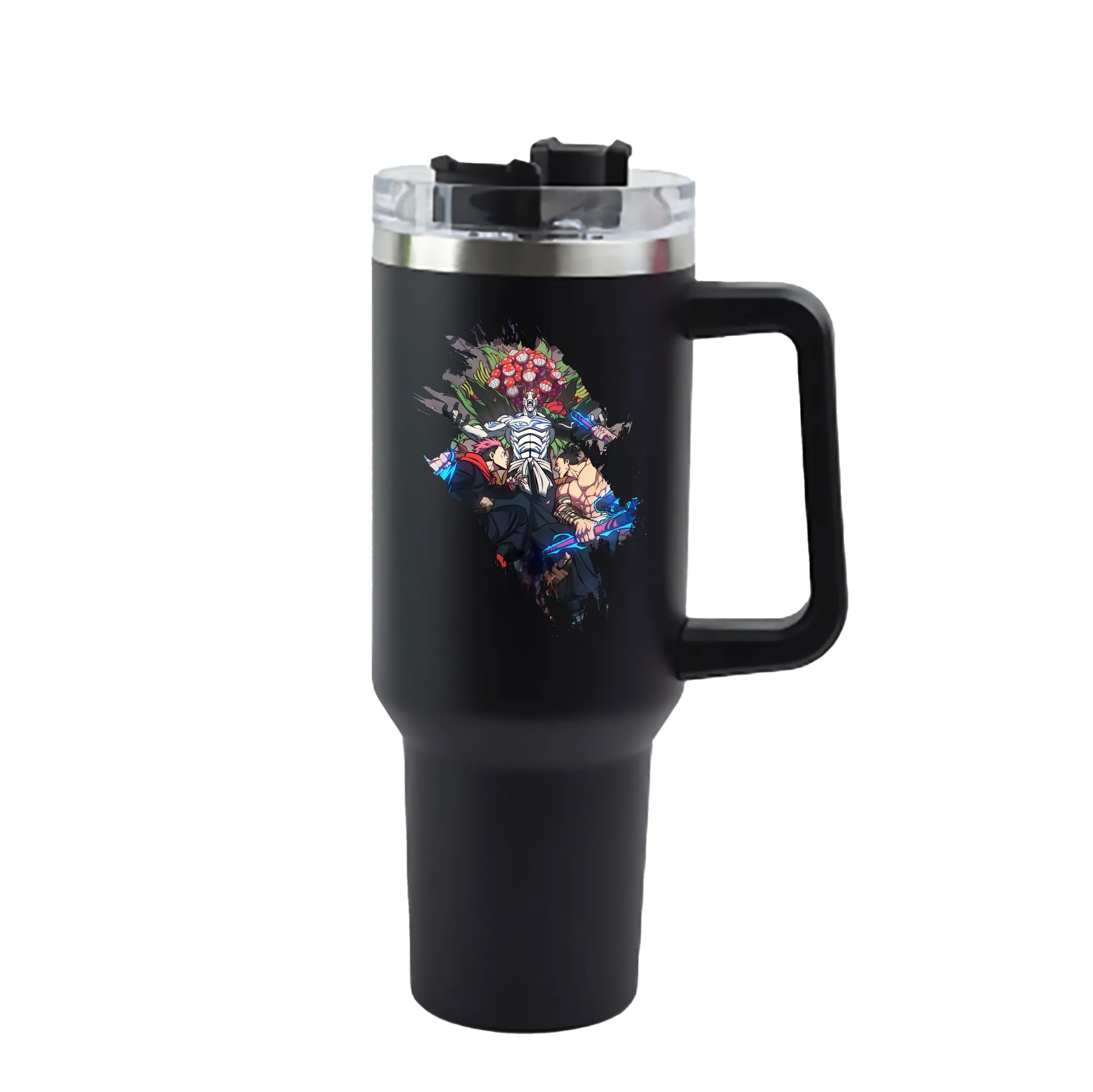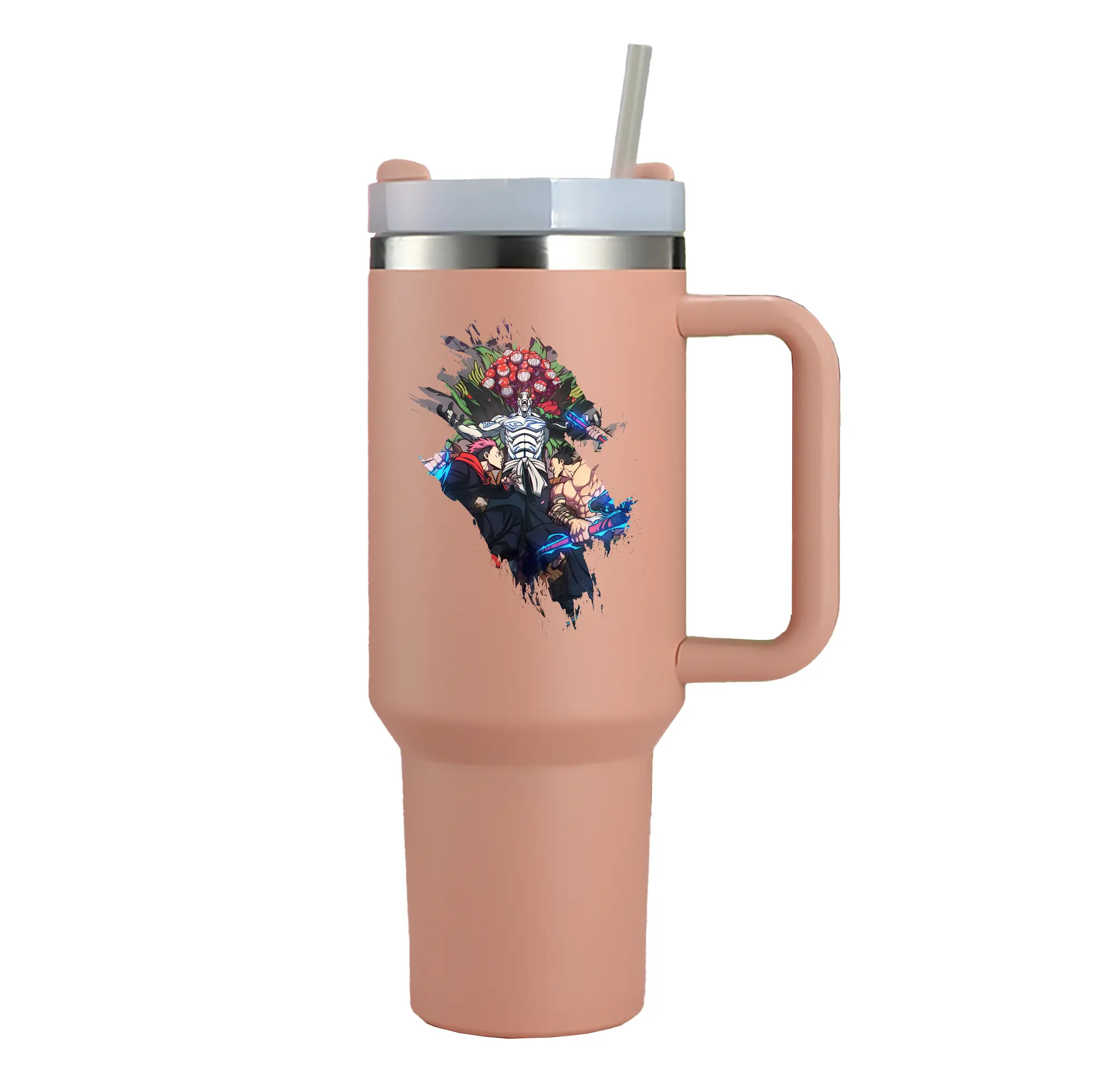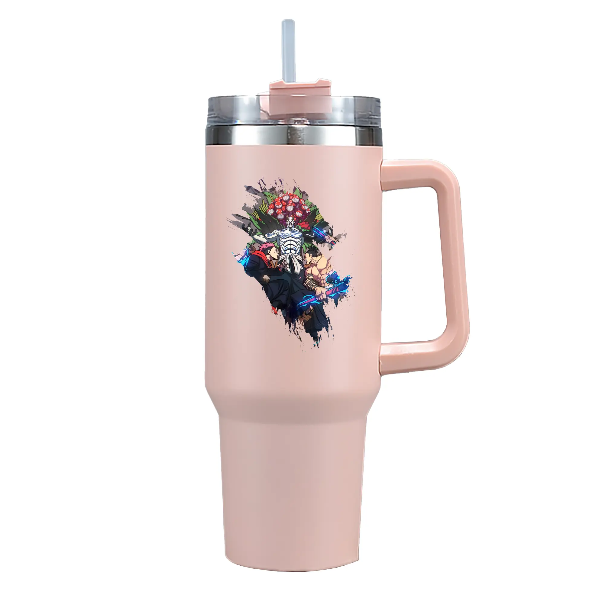 呪術廻戦 グッズ,花御 - 1200mL 車用タンブラー ・ クリスタルステッカー ・ 304ステンレス 内側 ・ 201ステンレス 外側 ・ 保温 保冷 ・ ハンドル&ストロー付き ・ 通勤 ドライブ アウトドア用