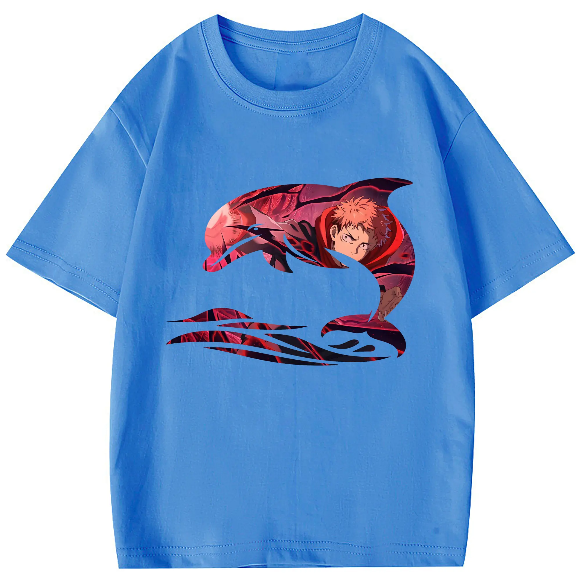 呪術廻戦 グッズ,虎杖 悠仁 - 綿100% 半袖Tシャツ ・ フロントプリント ・ 快適 通気性 ・ 日常使い 散歩 スポーツ用