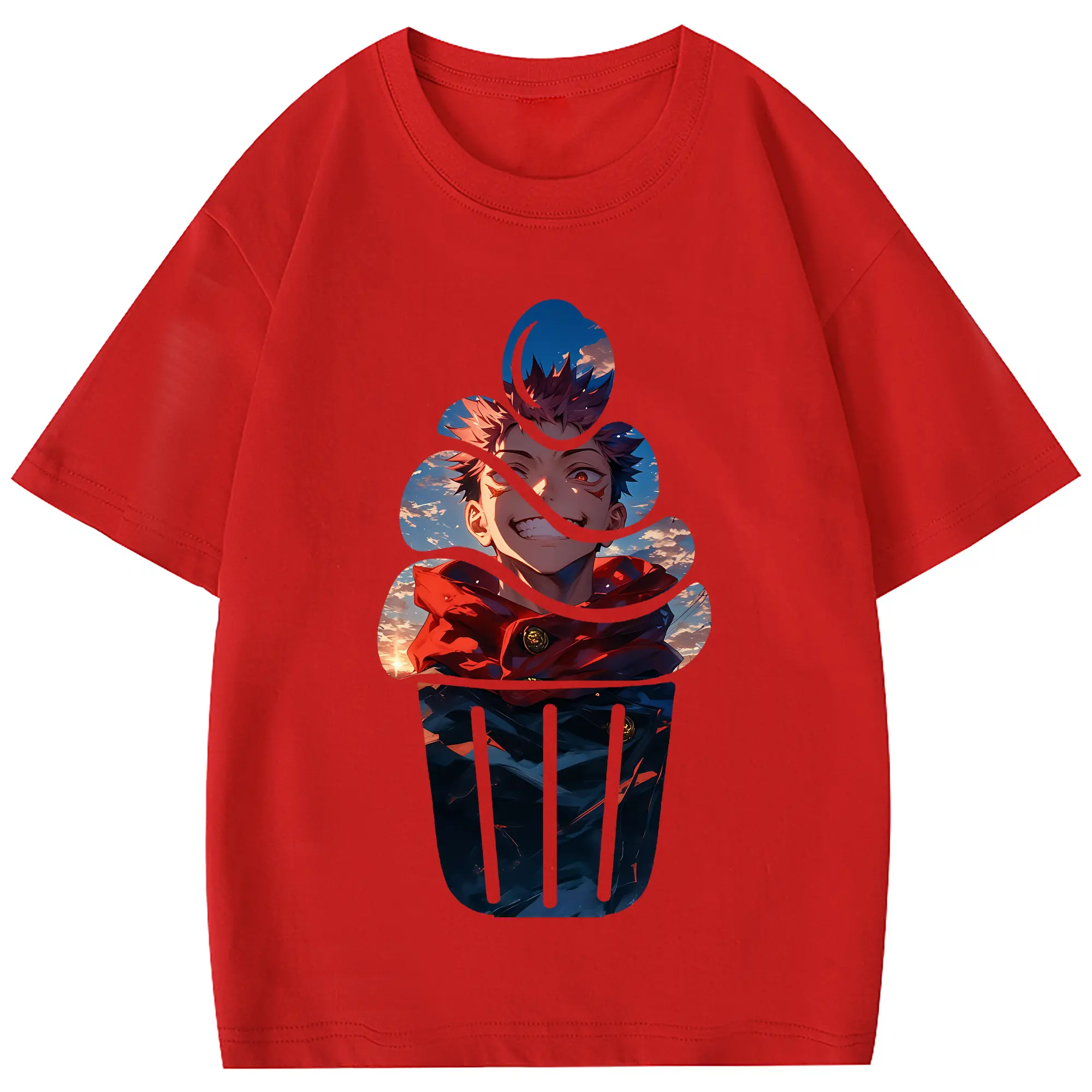 呪術廻戦 グッズ,虎杖 悠仁 - 綿100% 半袖Tシャツ ・ フロントプリント ・ 快適 通気性 ・ 日常使い 散歩 スポーツ用