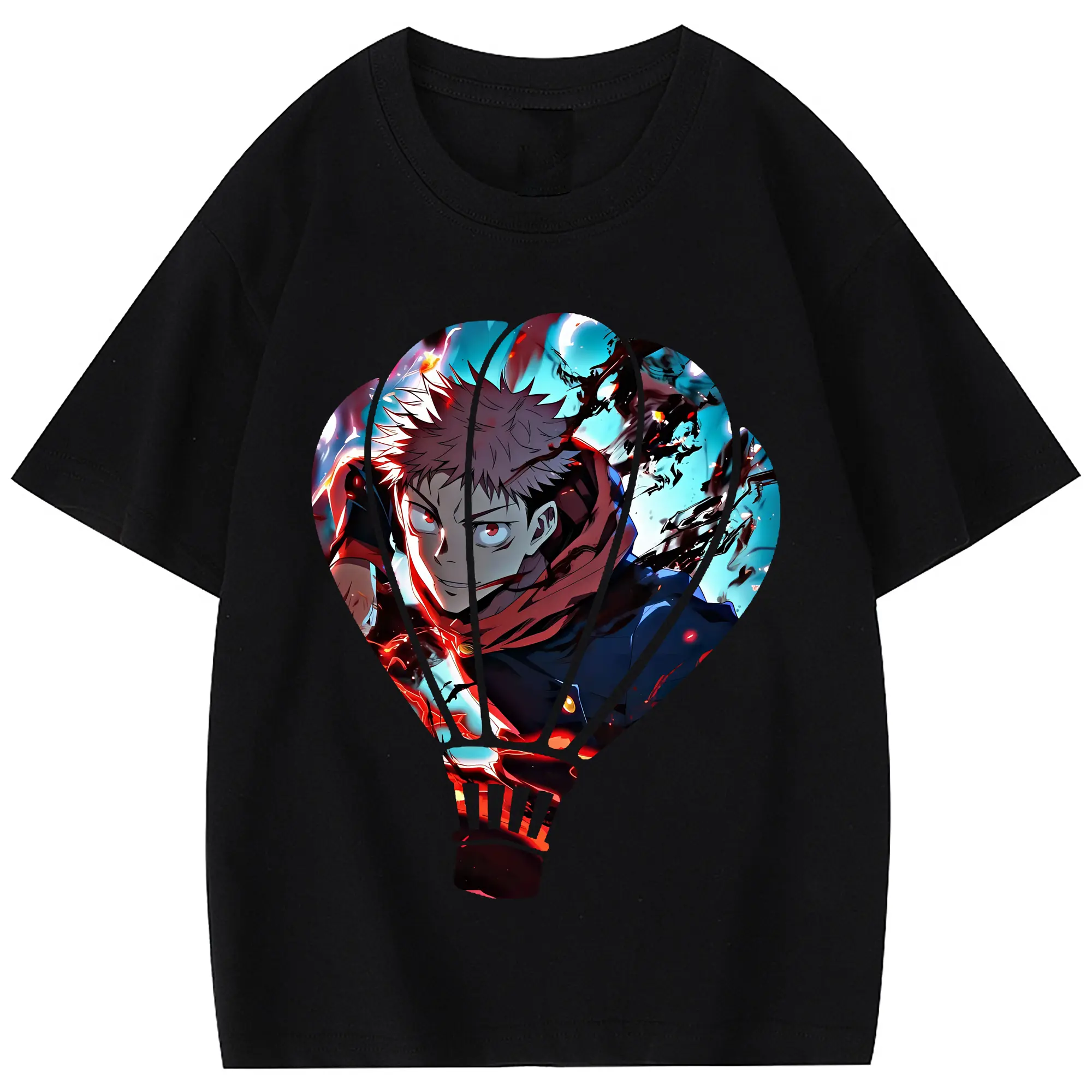 呪術廻戦 グッズ,虎杖 悠仁 - 綿100% 半袖Tシャツ ・ フロントプリント ・ 快適 通気性 ・ 日常使い 散歩 スポーツ用