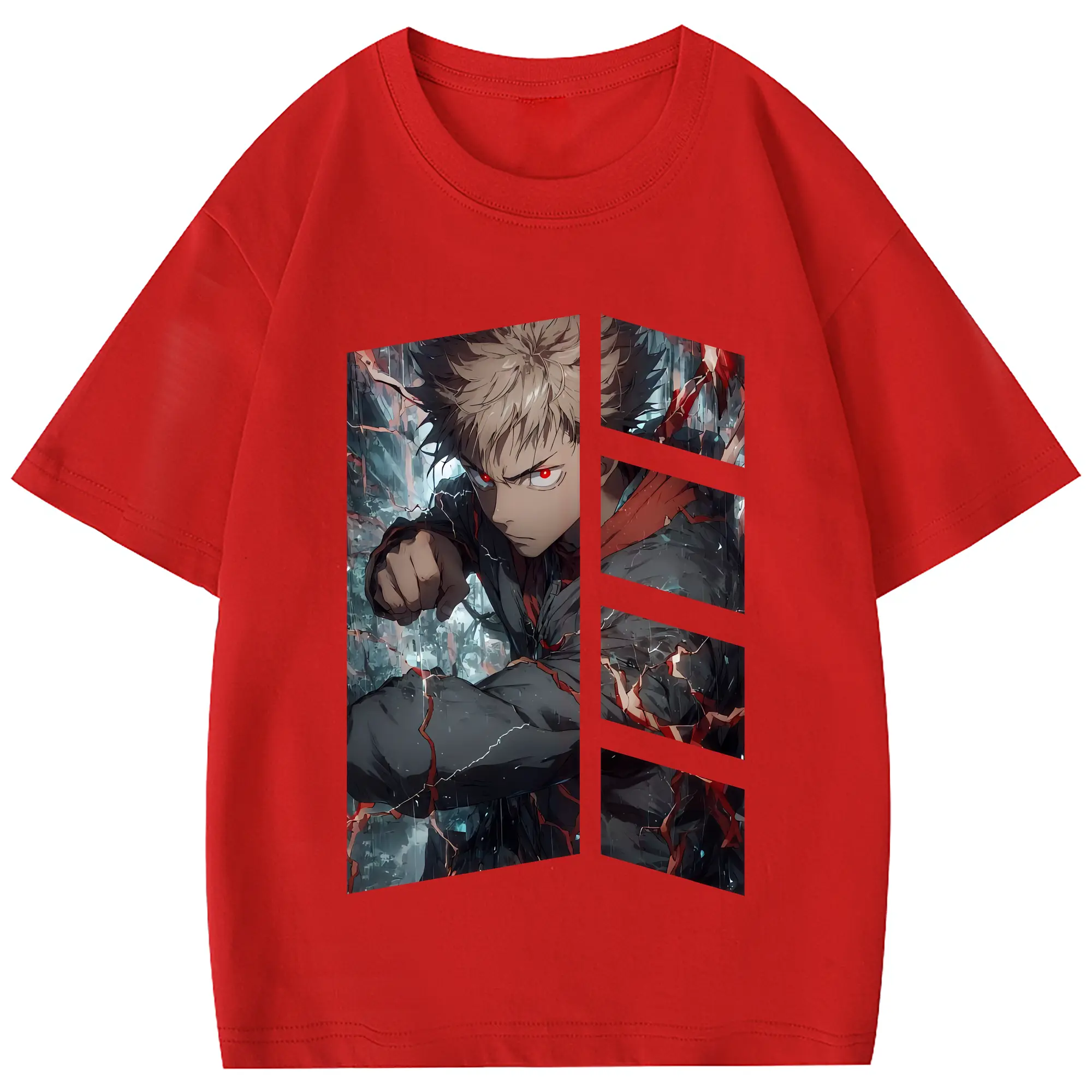 呪術廻戦 グッズ,虎杖 悠仁 - 綿100% 半袖Tシャツ ・ フロントプリント ・ 快適 通気性 ・ 日常使い 散歩 スポーツ用