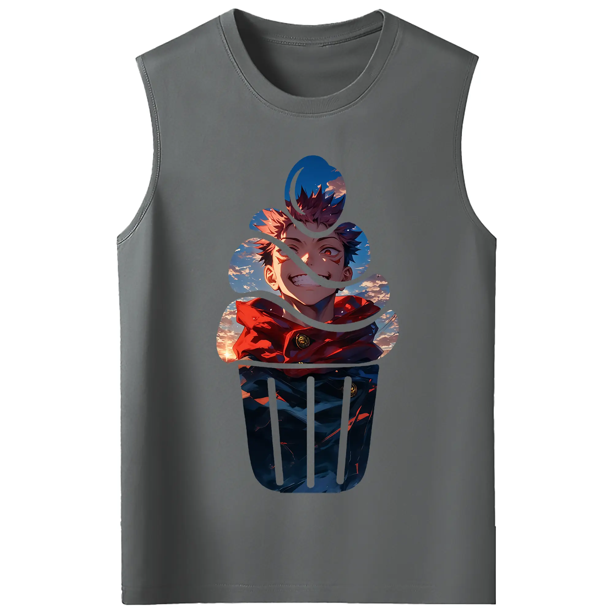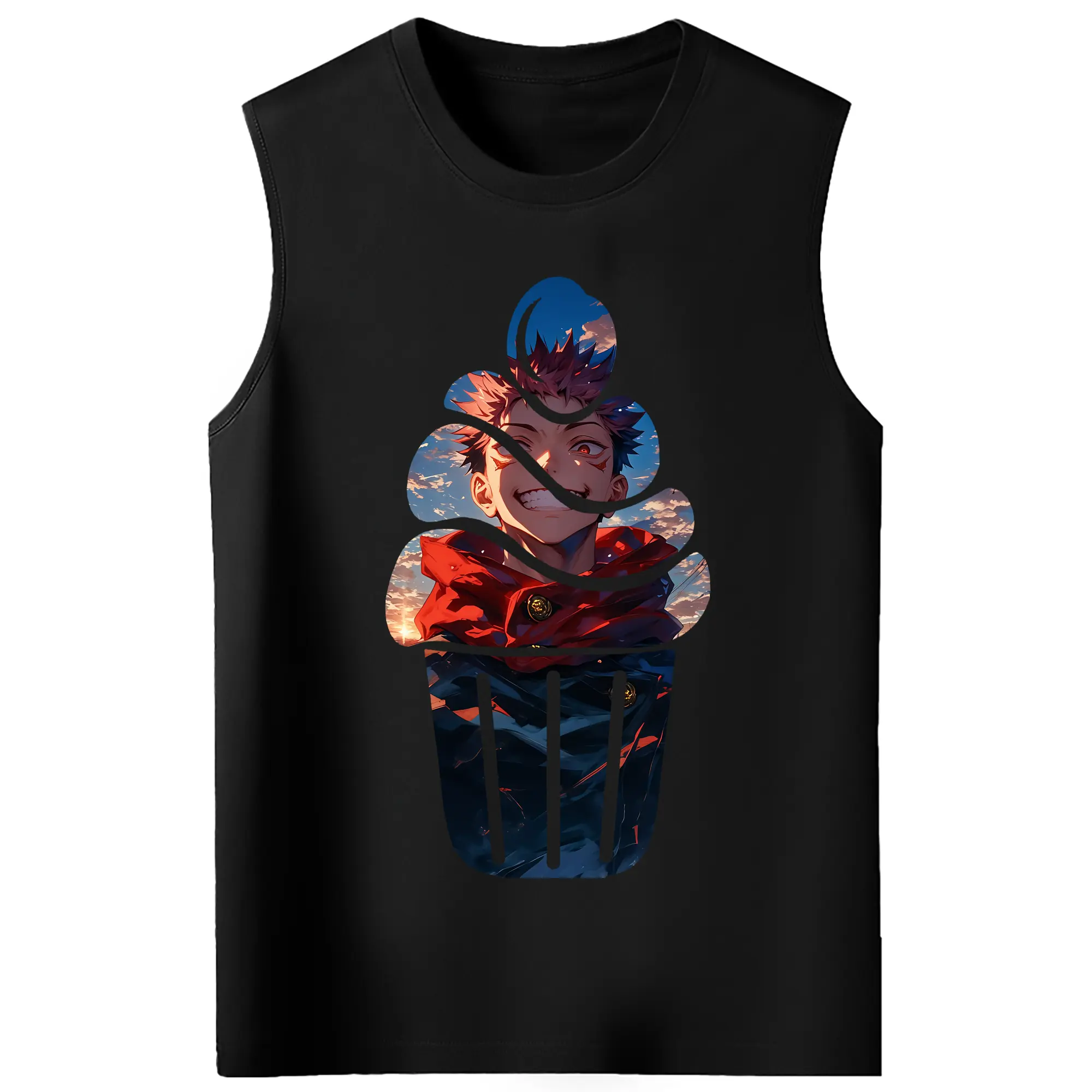呪術廻戦 グッズ,虎杖 悠仁 - コットン100% タンクトップ ・ フロントプリント ・ タイトフィット ・ 快適 通気性 ・ スポーツ カジュアル 散歩用