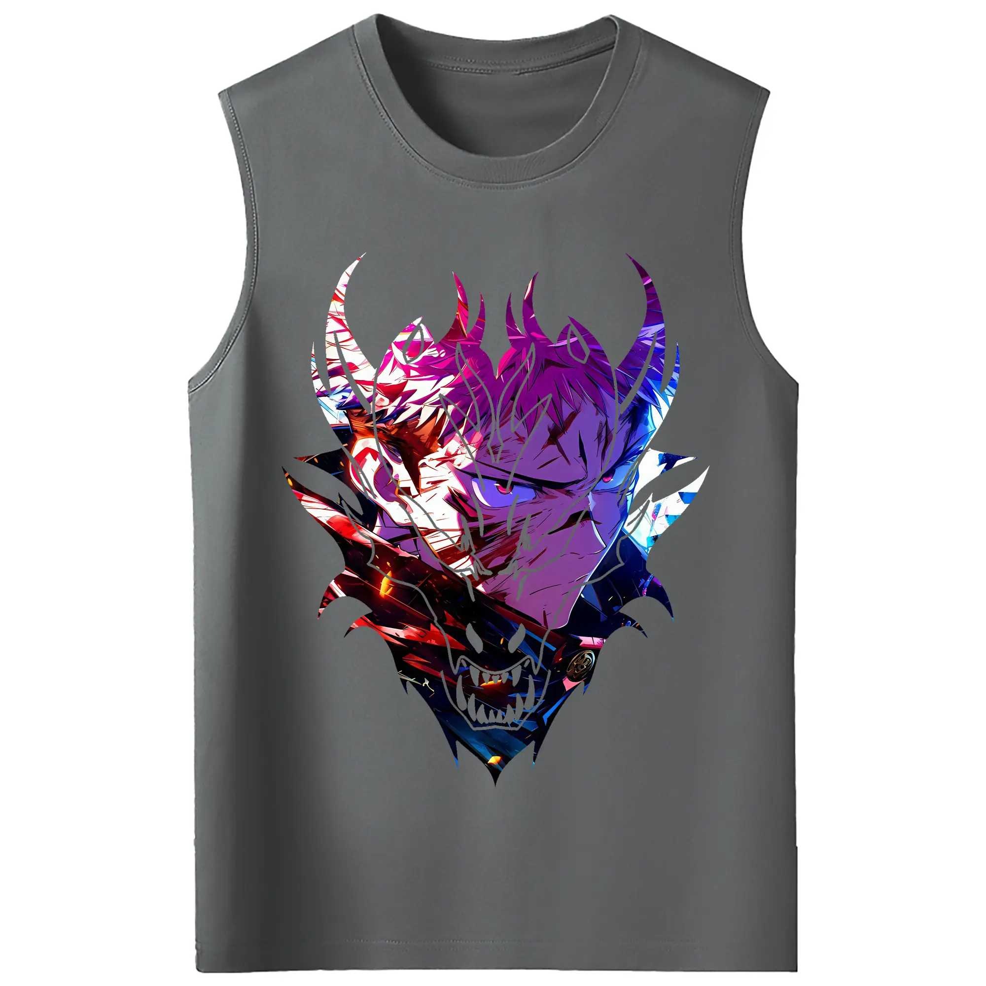 呪術廻戦 グッズ,虎杖 悠仁 - コットン100% タンクトップ ・ フロントプリント ・ タイトフィット ・ 快適 通気性 ・ スポーツ カジュアル 散歩用