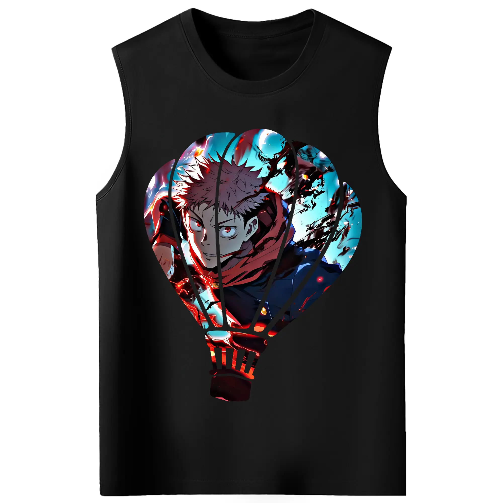 呪術廻戦 グッズ,虎杖 悠仁 - コットン100% タンクトップ ・ フロントプリント ・ タイトフィット ・ 快適 通気性 ・ スポーツ カジュアル 散歩用