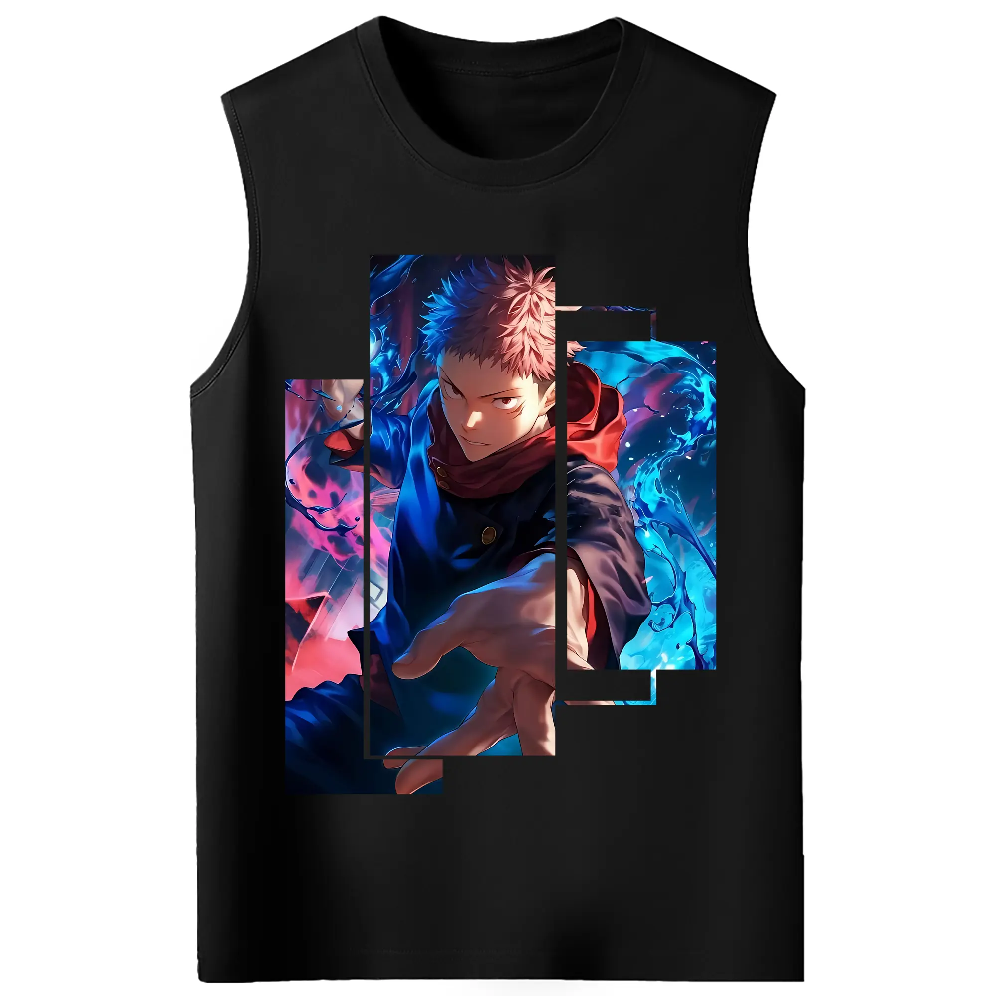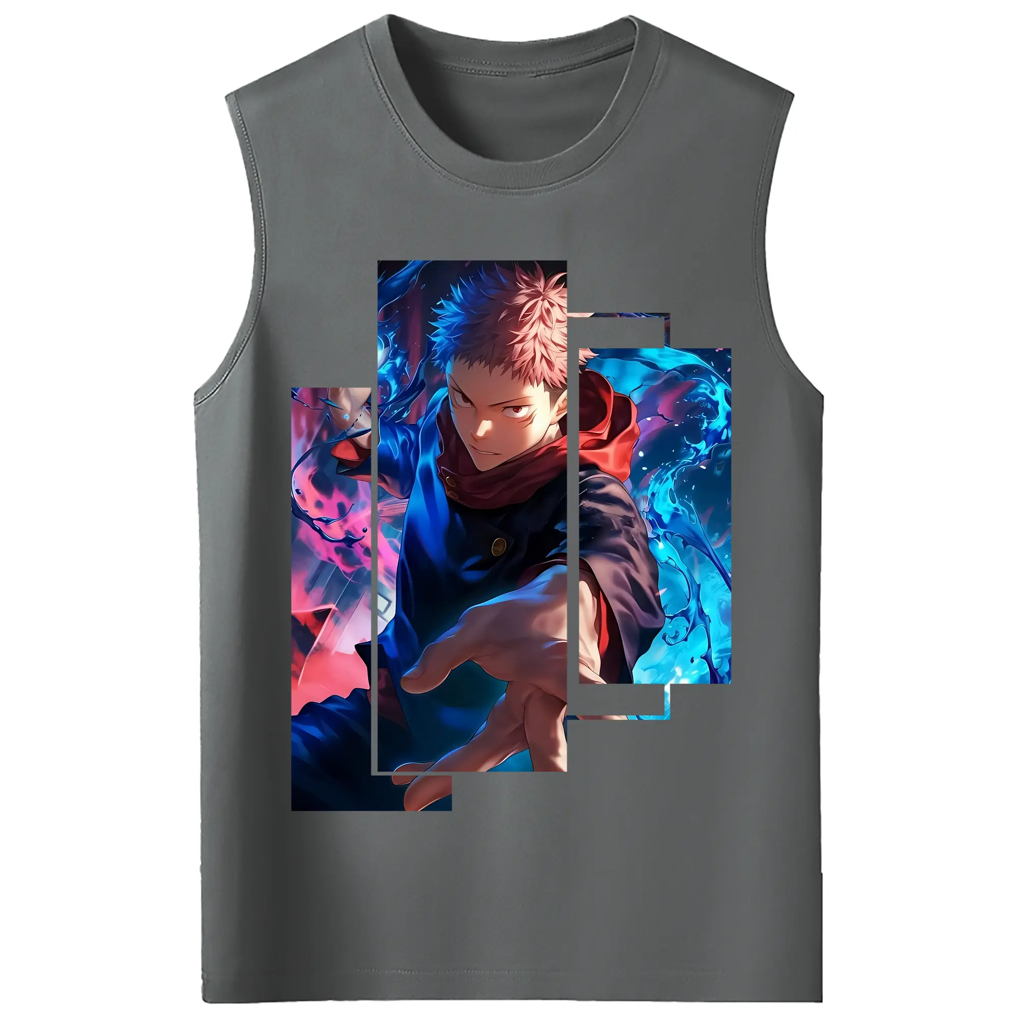呪術廻戦 グッズ,虎杖 悠仁 - コットン100% タンクトップ ・ フロントプリント ・ タイトフィット ・ 快適 通気性 ・ スポーツ カジュアル 散歩用
