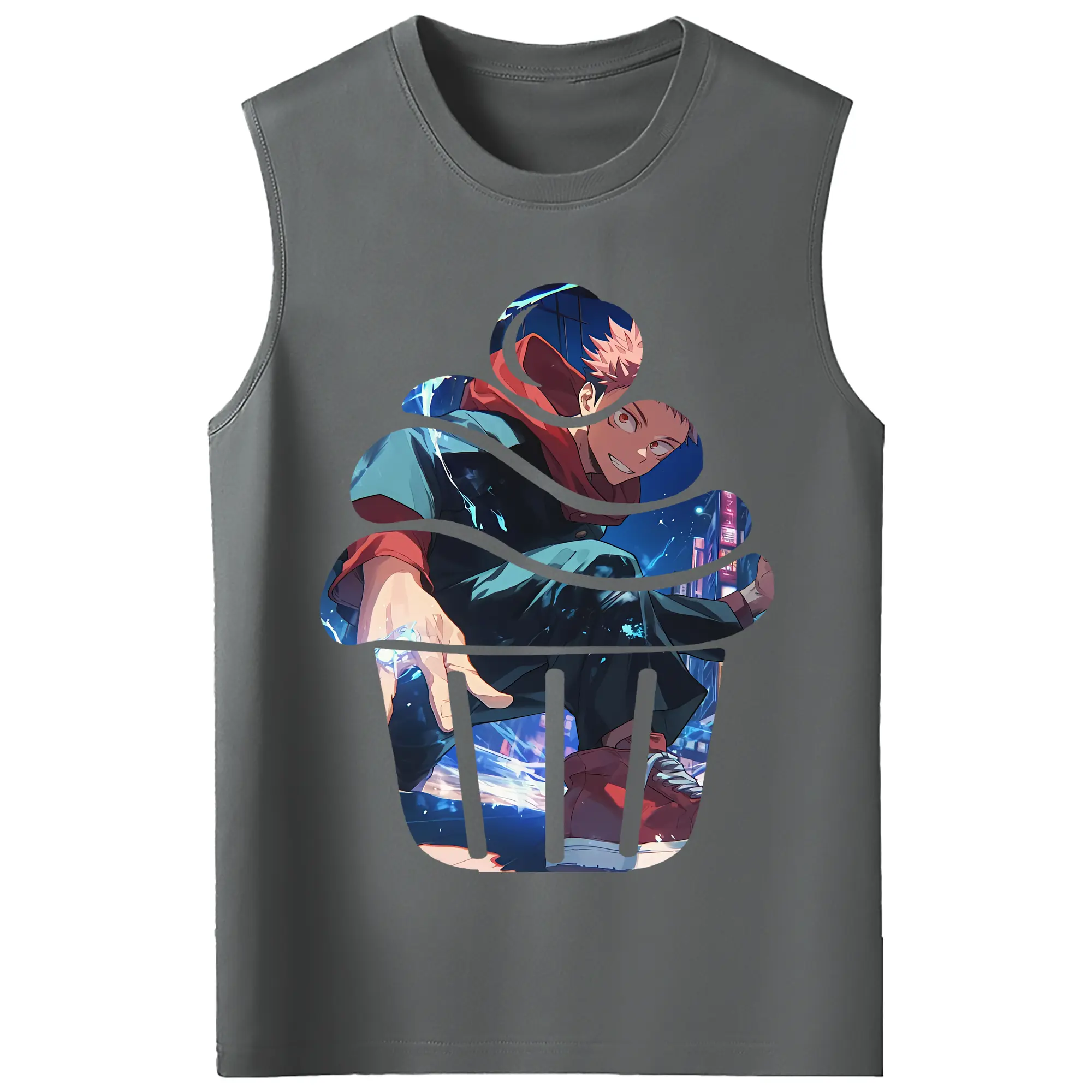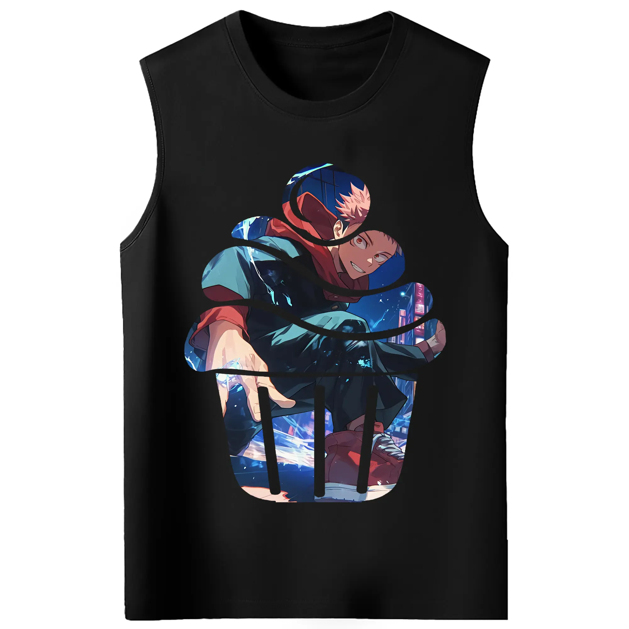 呪術廻戦 グッズ,虎杖 悠仁 - コットン100% タンクトップ ・ フロントプリント ・ タイトフィット ・ 快適 通気性 ・ スポーツ カジュアル 散歩用