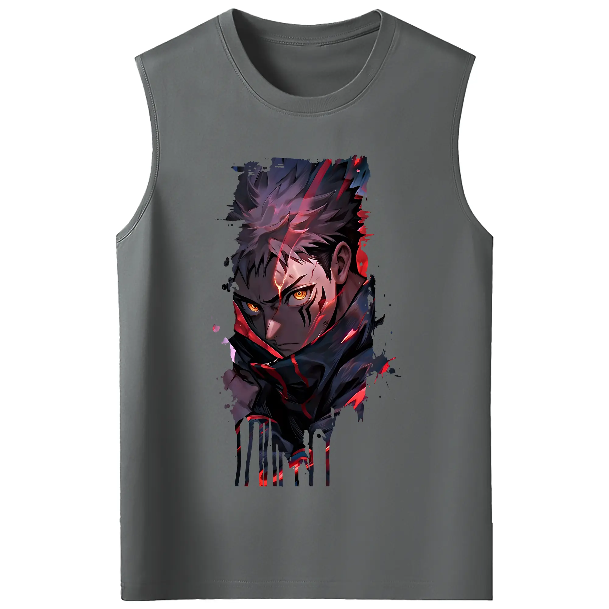 呪術廻戦 グッズ,虎杖 悠仁 - コットン100% タンクトップ ・ フロントプリント ・ タイトフィット ・ 快適 通気性 ・ スポーツ カジュアル 散歩用