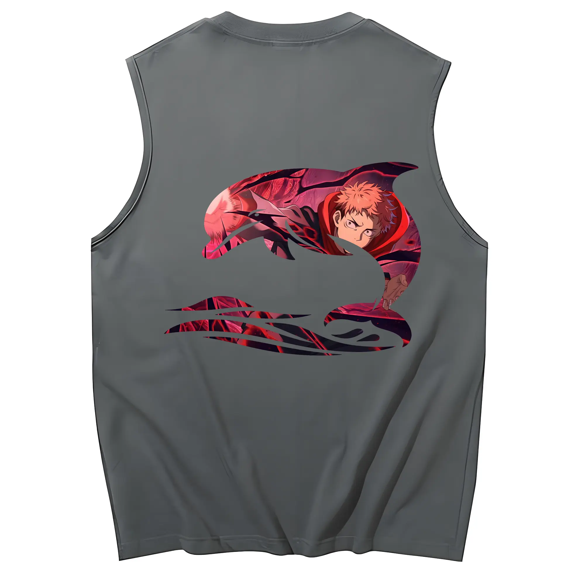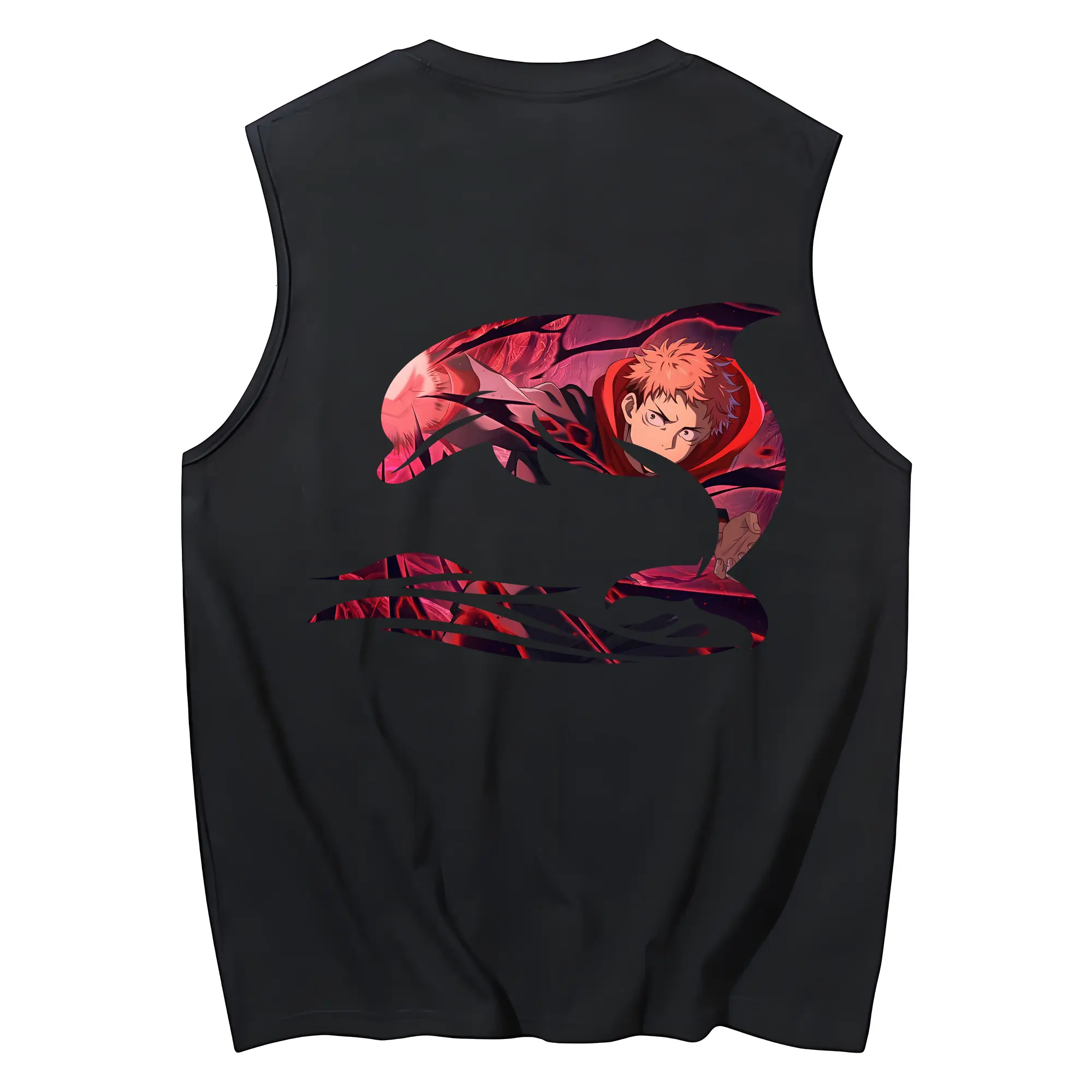 呪術廻戦 グッズ,虎杖 悠仁 - コットン100% タンクトップ ・ 背面プリント ・ タイトシルエット ・ 快適 通気性 ・ スポーツ カジュアル 散歩用