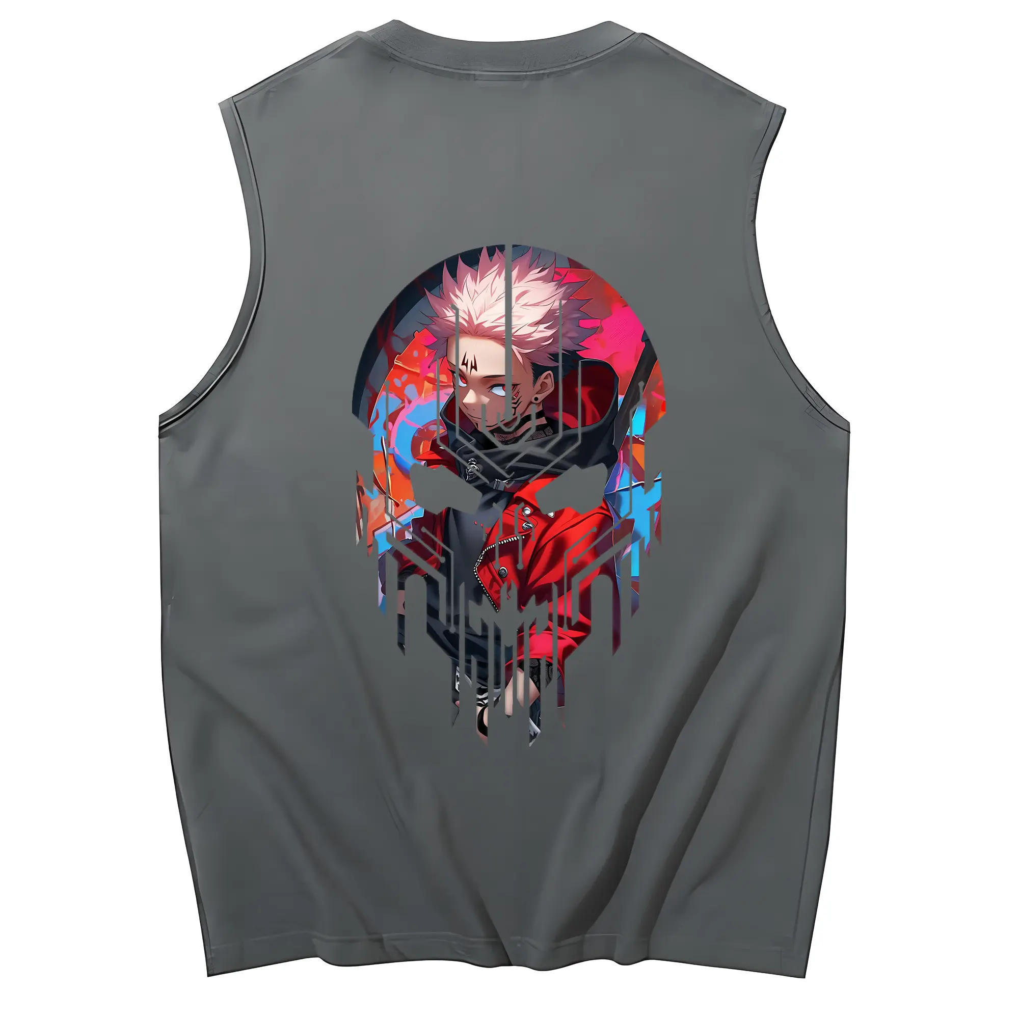 呪術廻戦 グッズ,虎杖 悠仁 - コットン100% タンクトップ ・ 背面プリント ・ タイトシルエット ・ 快適 通気性 ・ スポーツ カジュアル 散歩用