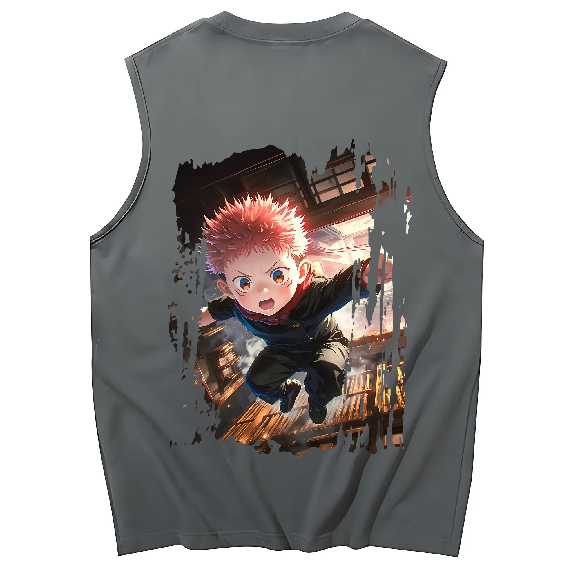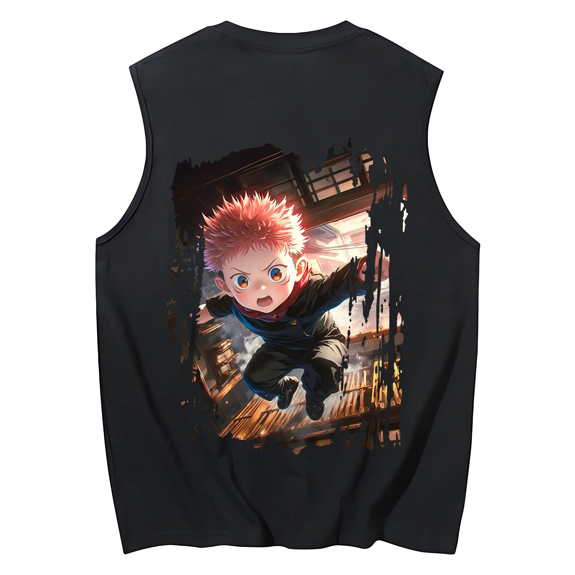 呪術廻戦 グッズ,虎杖 悠仁 - コットン100% タンクトップ ・ 背面プリント ・ タイトシルエット ・ 快適 通気性 ・ スポーツ カジュアル 散歩用