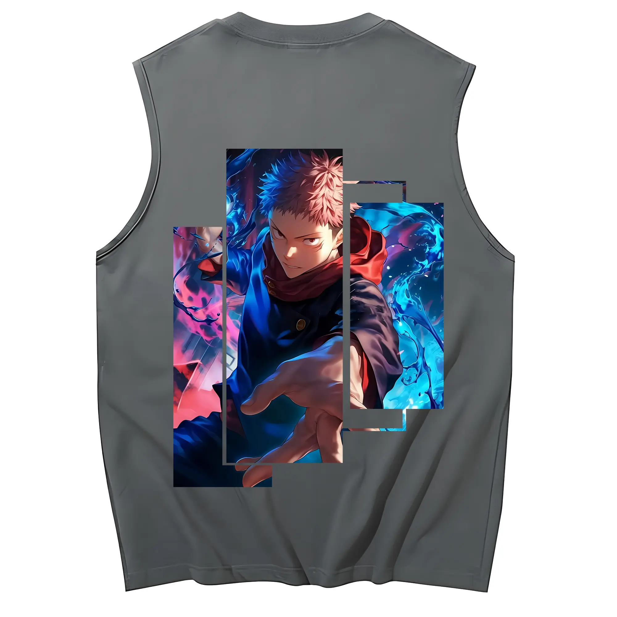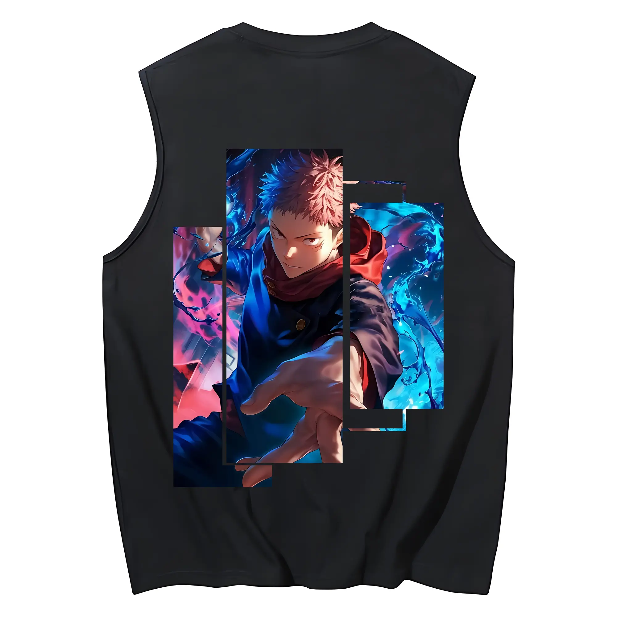 呪術廻戦 グッズ,虎杖 悠仁 - コットン100% タンクトップ ・ 背面プリント ・ タイトシルエット ・ 快適 通気性 ・ スポーツ カジュアル 散歩用