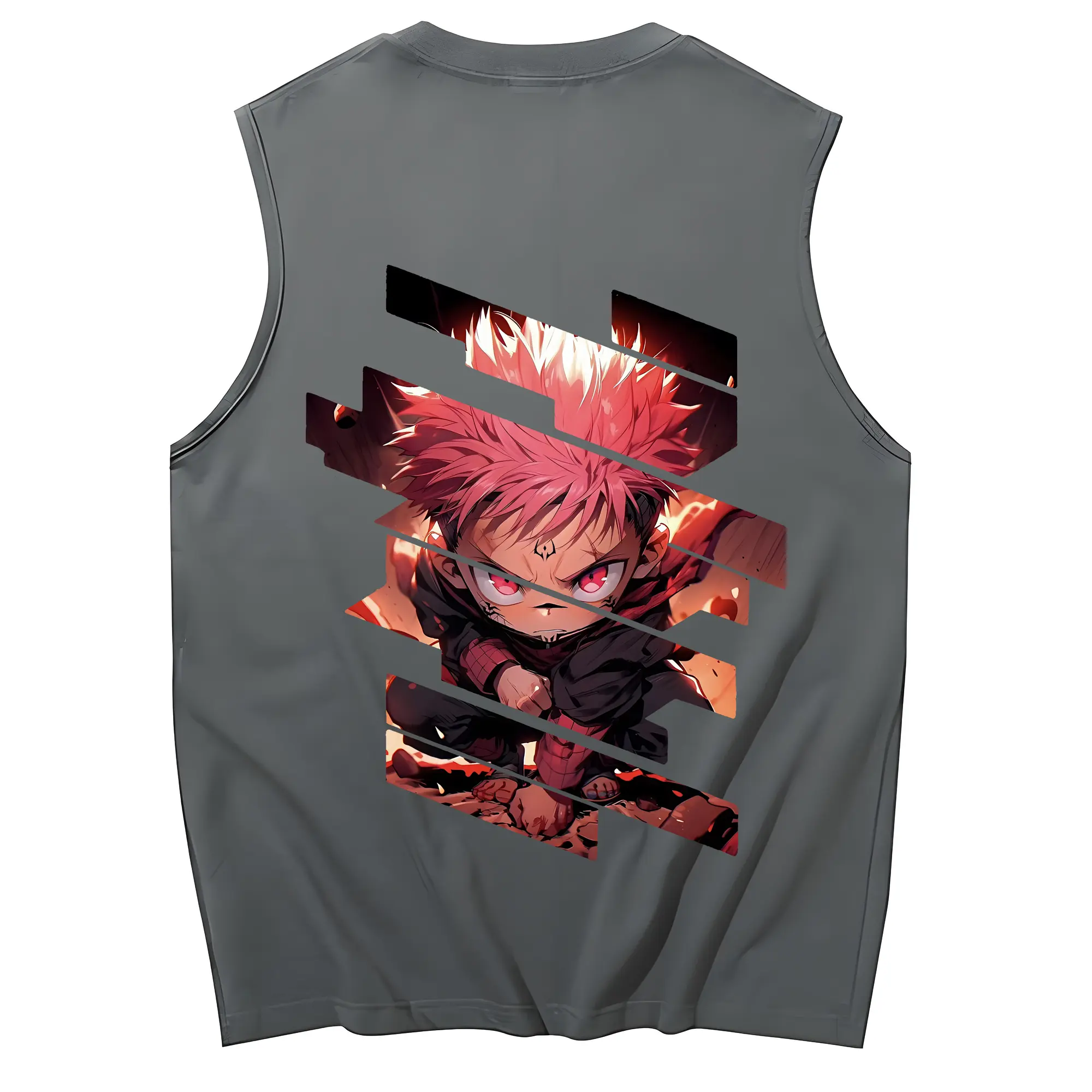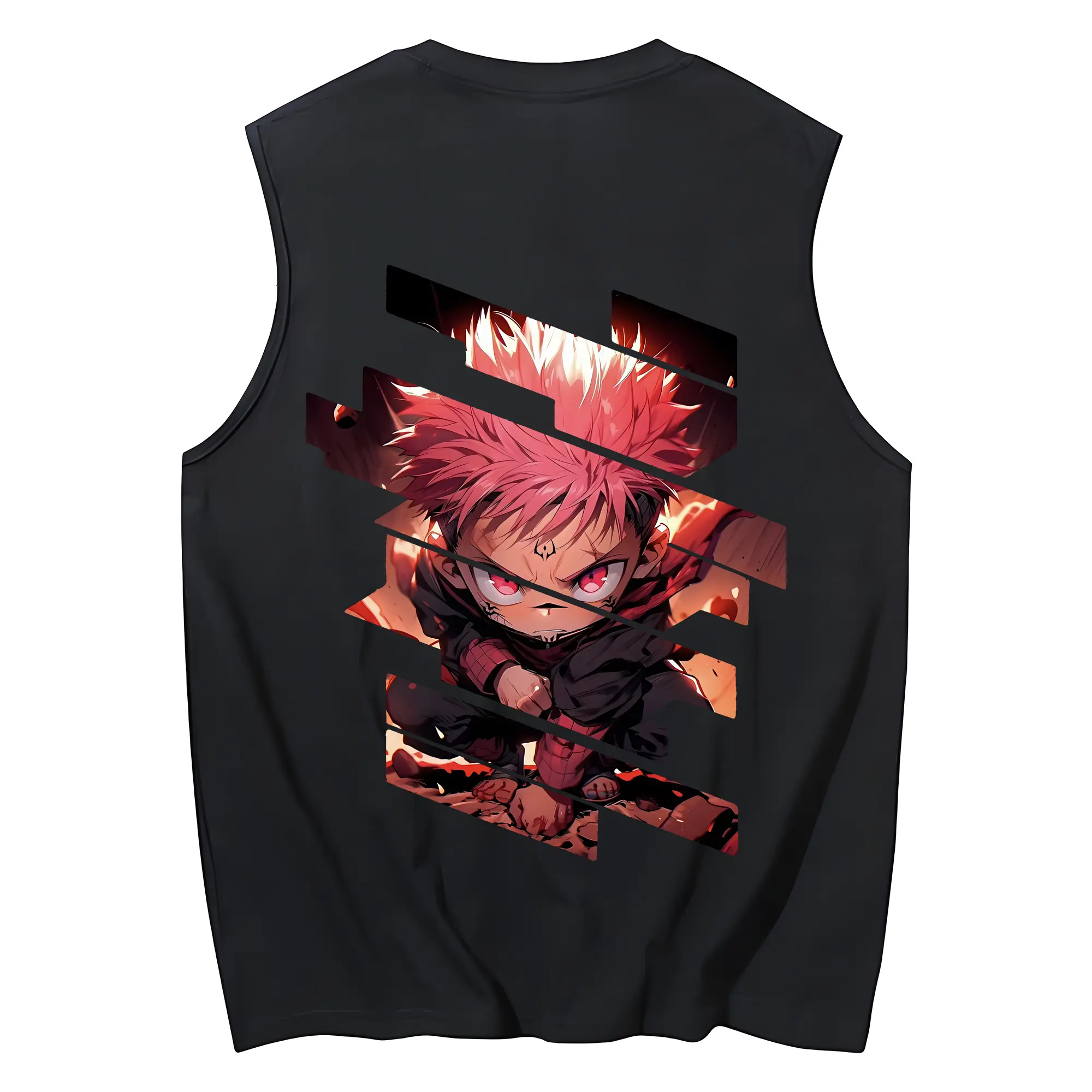 呪術廻戦 グッズ,虎杖 悠仁 - コットン100% タンクトップ ・ 背面プリント ・ タイトシルエット ・ 快適 通気性 ・ スポーツ カジュアル 散歩用