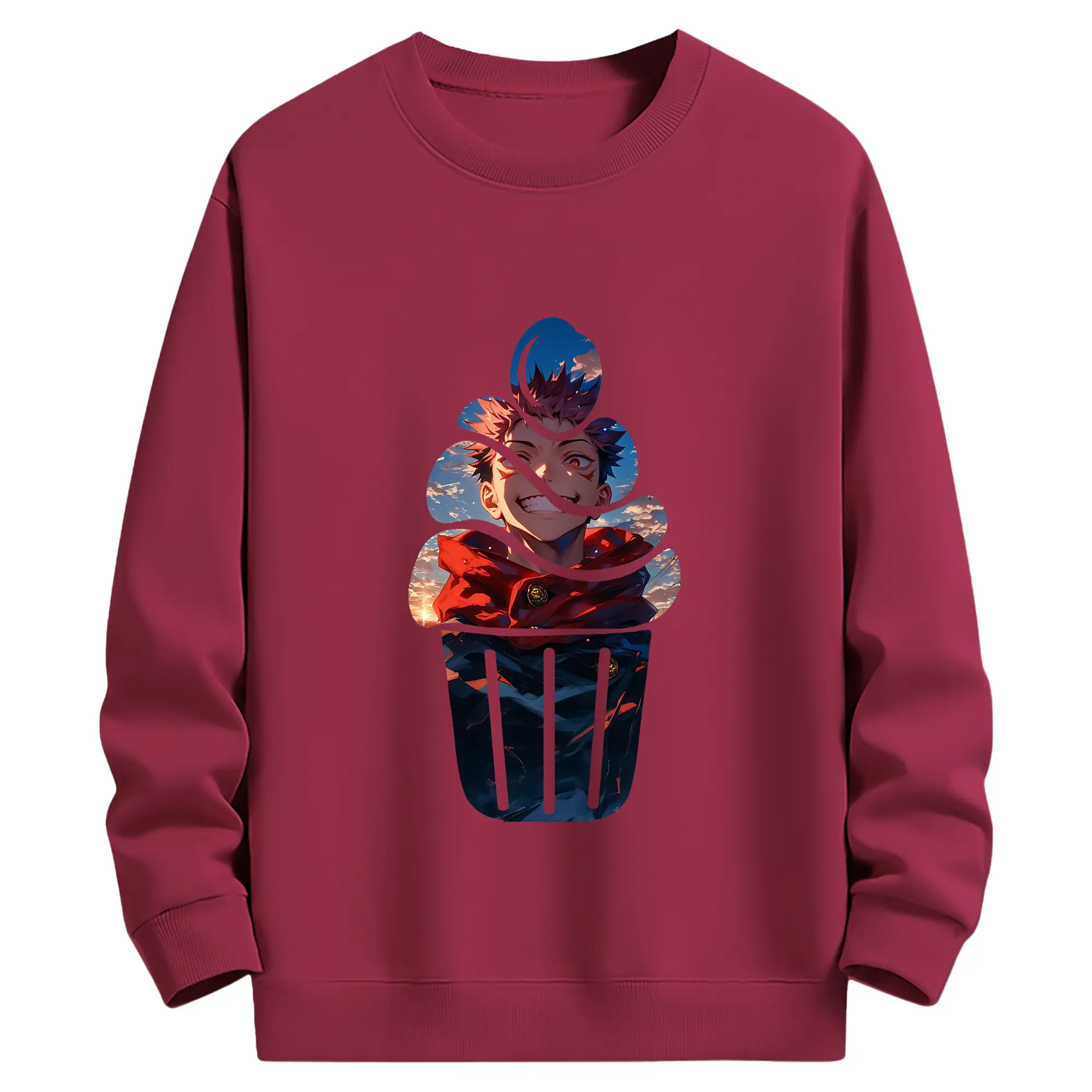 呪術廻戦 グッズ,虎杖 悠仁 - 薄手 クルーネック スウェット 裏毛260g · ポリエステル 春秋向け カジュアル 男女兼用 · トレーナー デイリー スポーツ 散歩に最適