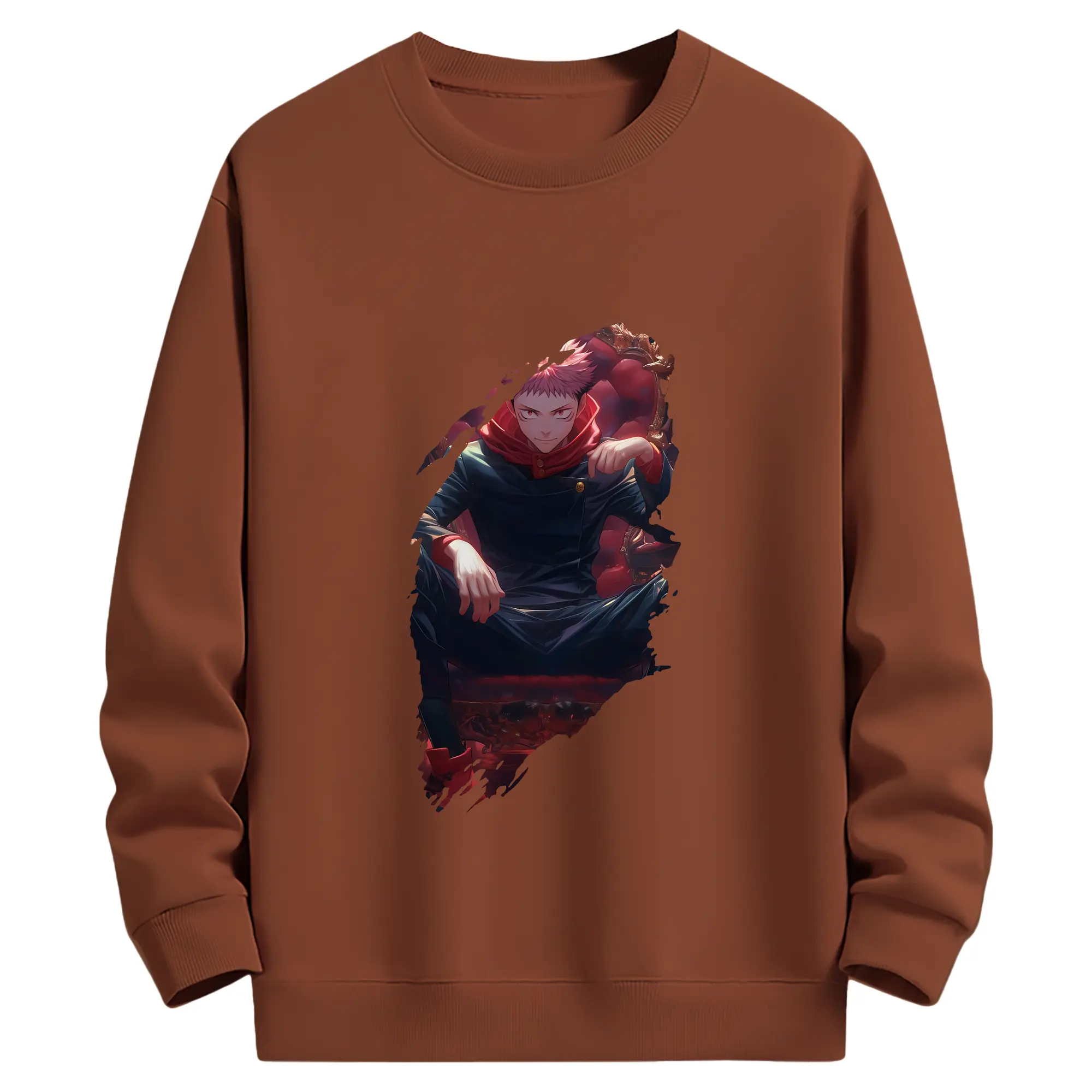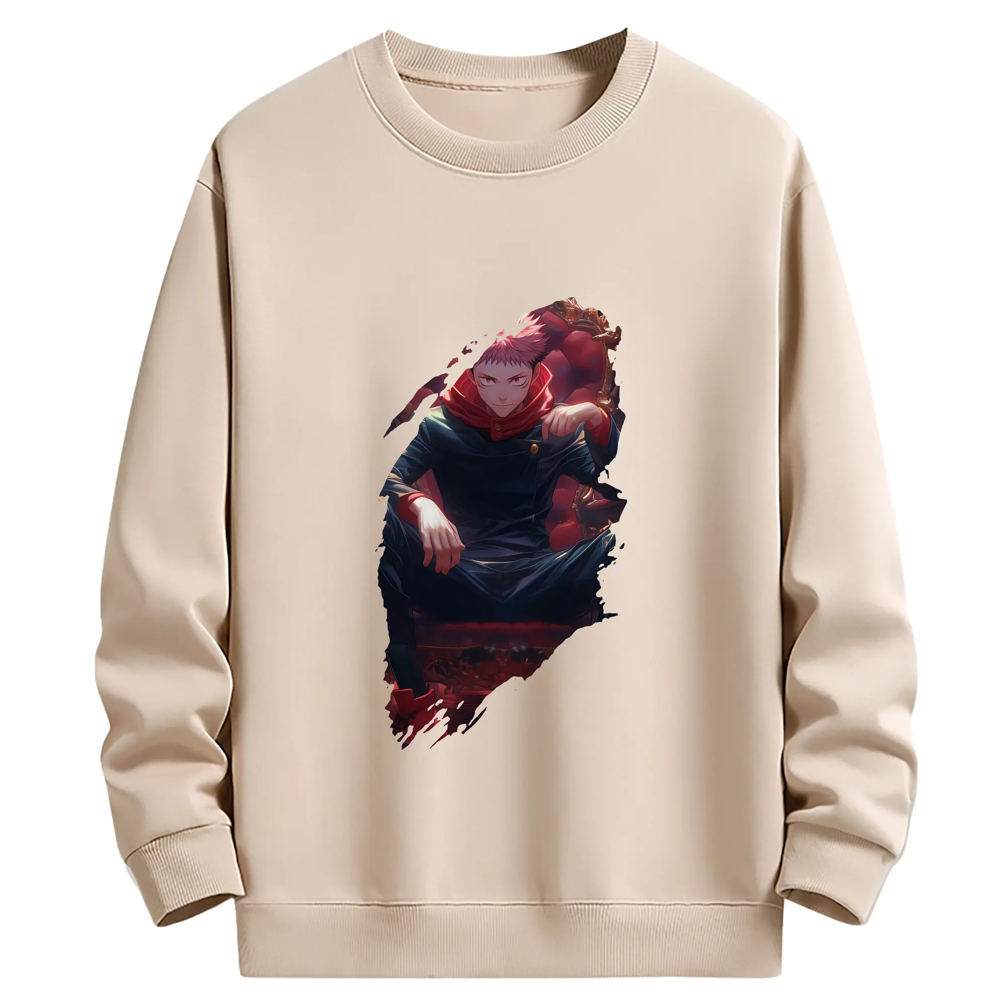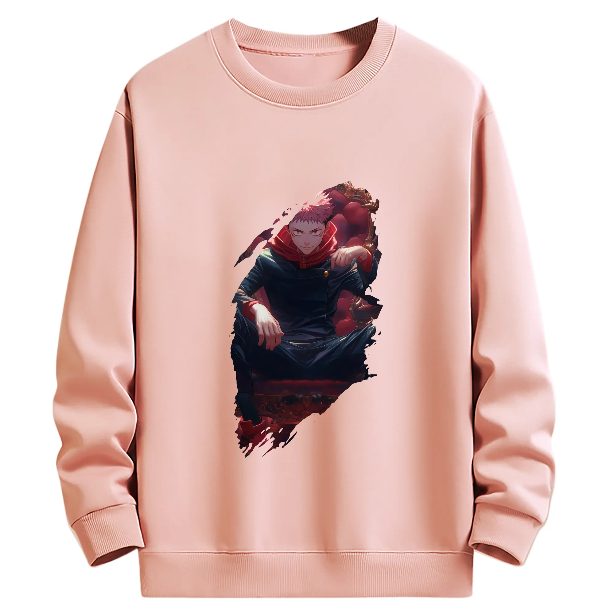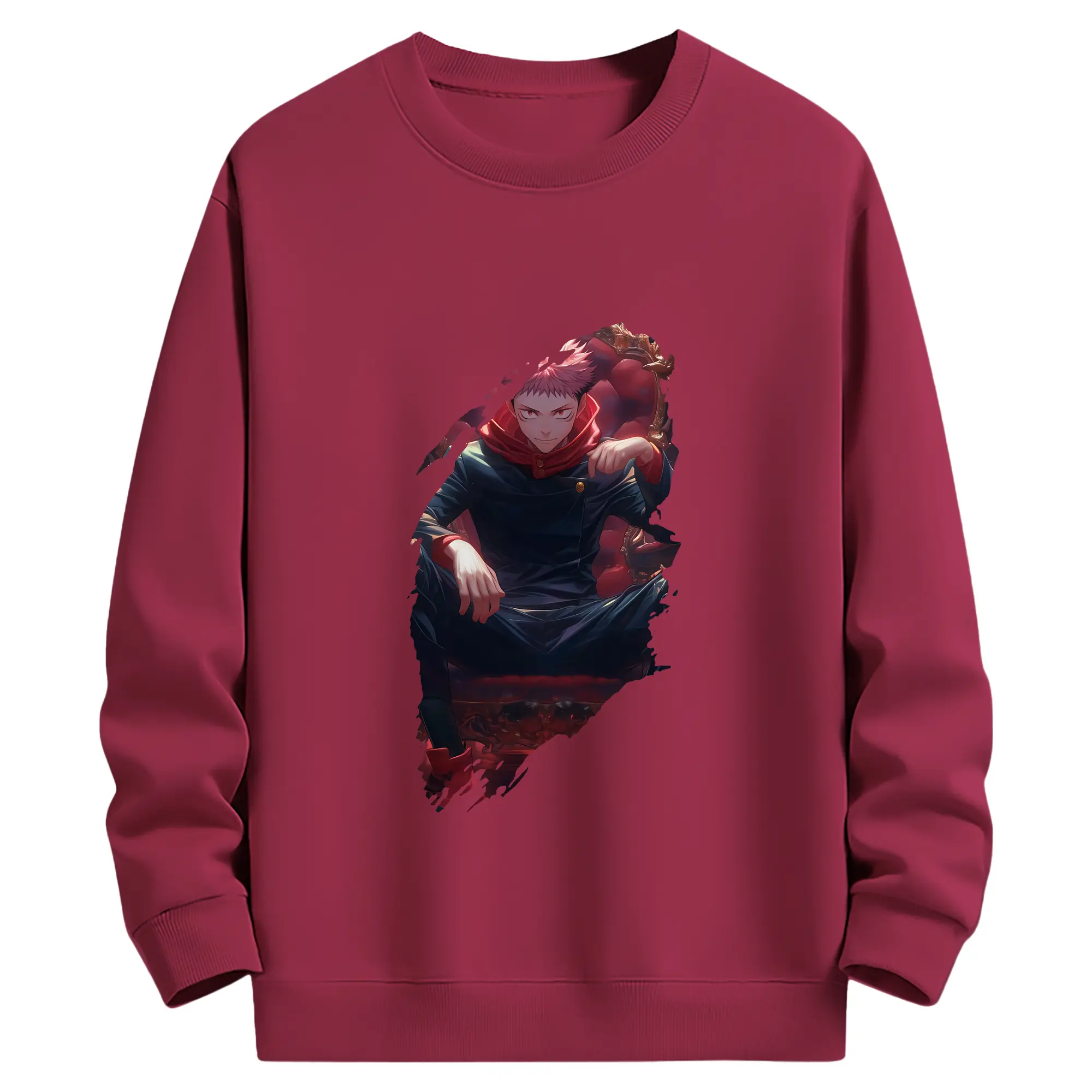 呪術廻戦 グッズ,虎杖 悠仁 - 薄手 クルーネック スウェット 裏毛260g · ポリエステル 春秋向け カジュアル 男女兼用 · トレーナー デイリー スポーツ 散歩に最適