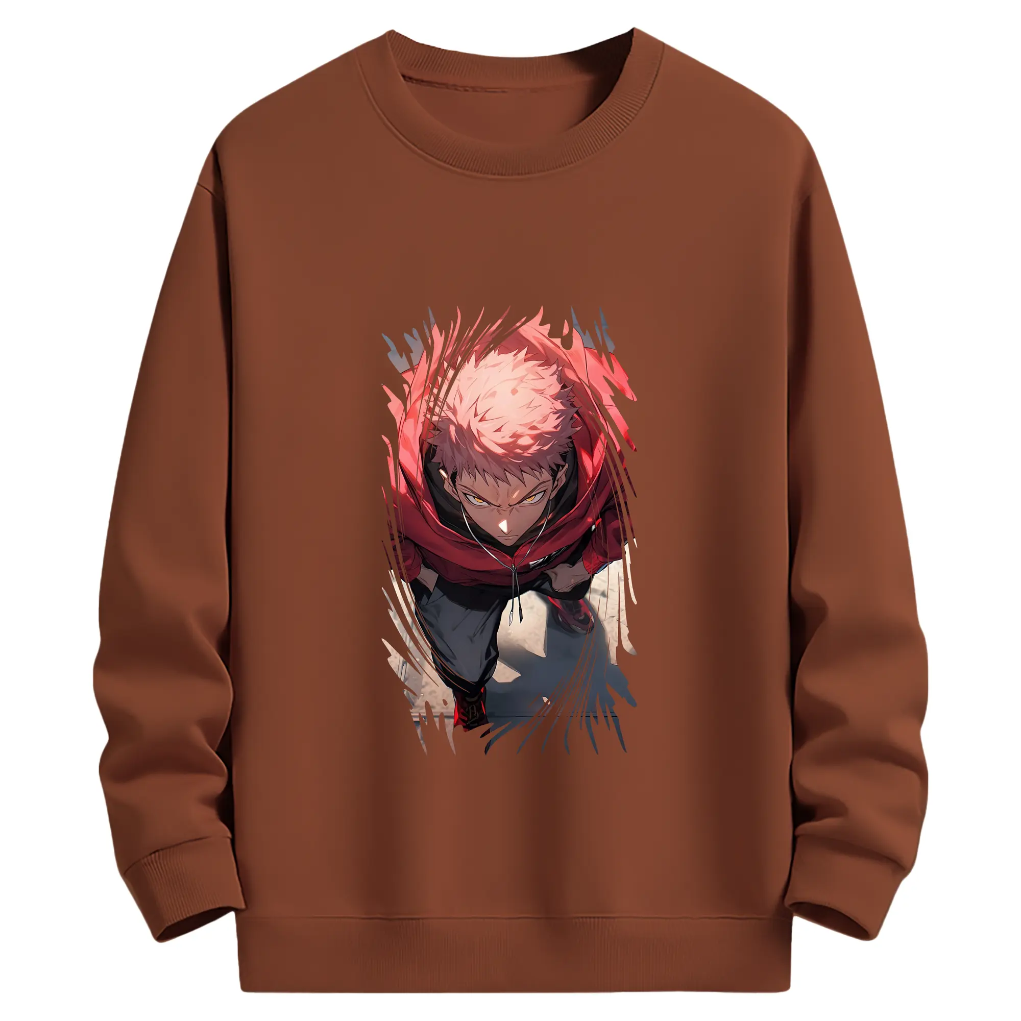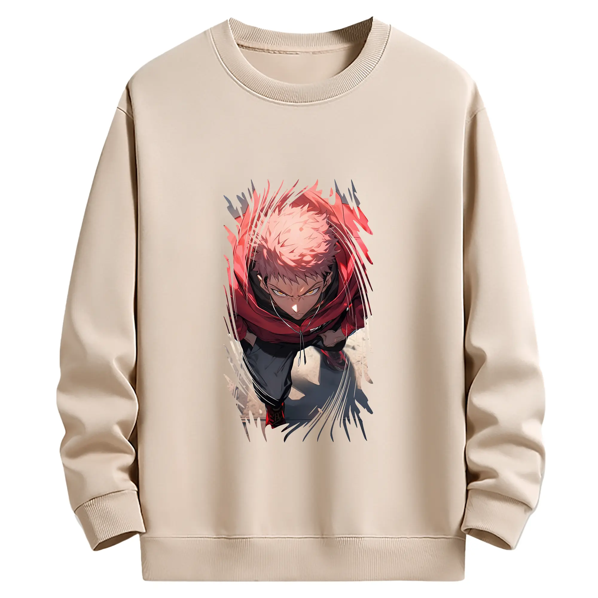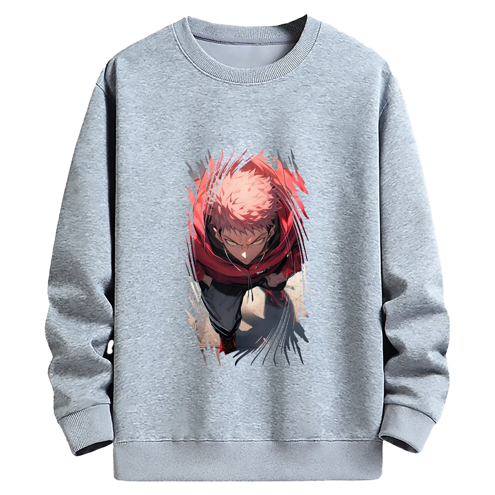 呪術廻戦 グッズ,虎杖 悠仁 - 薄手 クルーネック スウェット 裏毛260g · ポリエステル 春秋向け カジュアル 男女兼用 · トレーナー デイリー スポーツ 散歩に最適